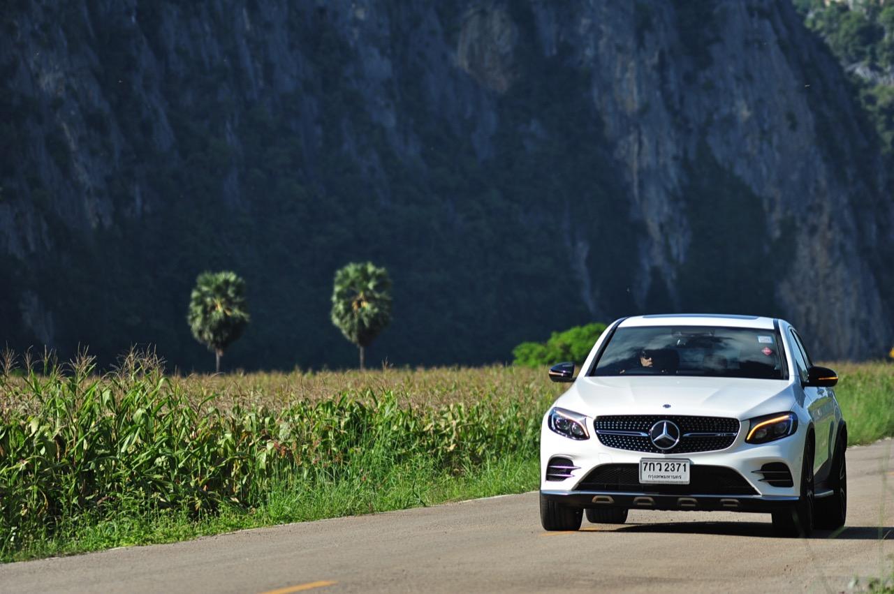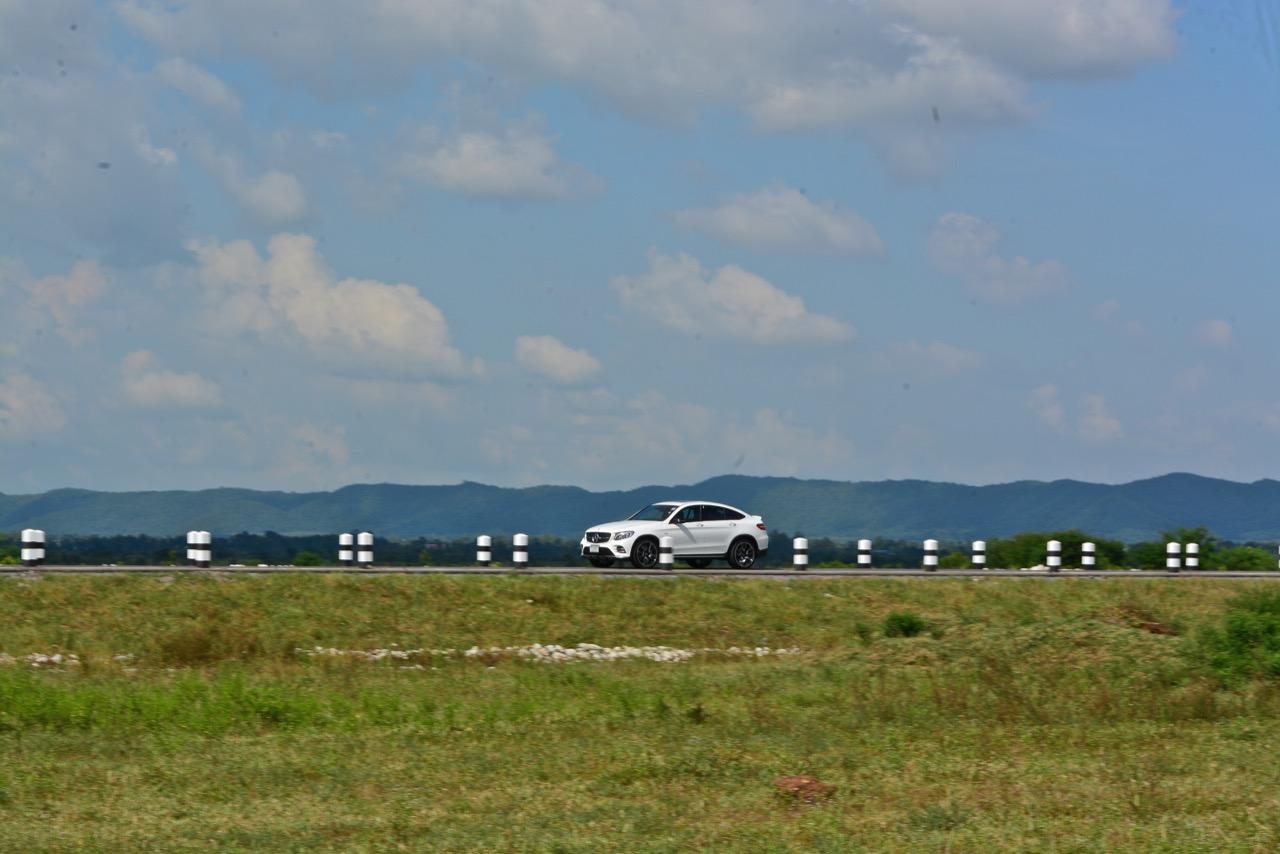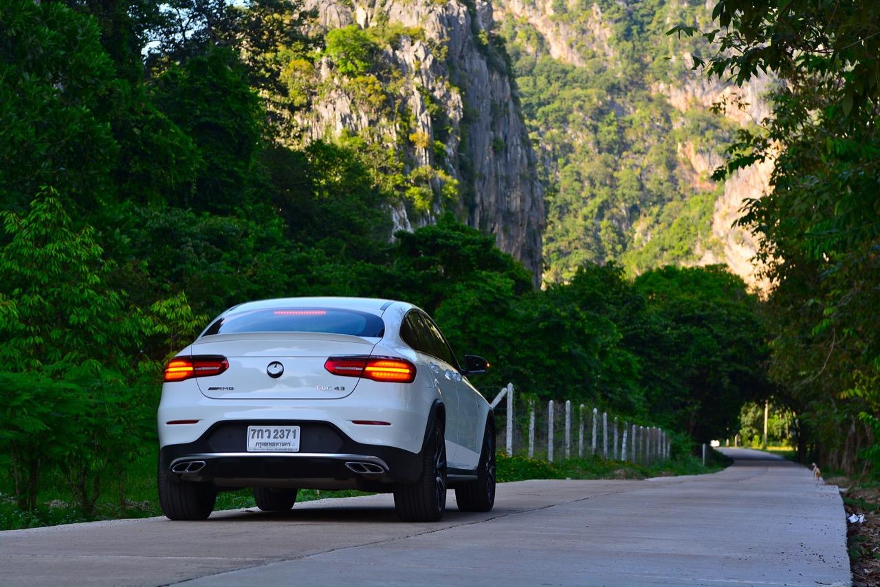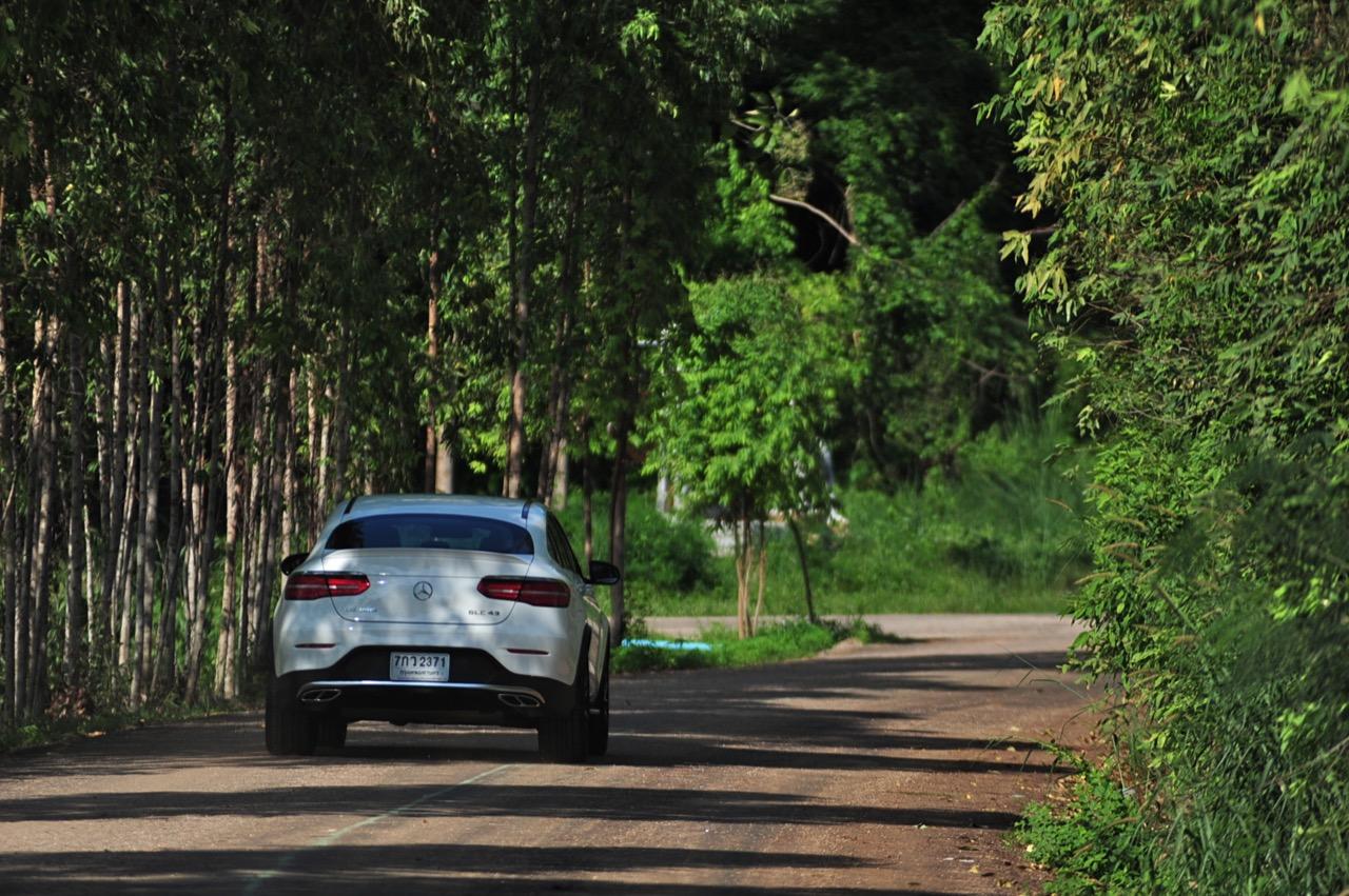 การขับที่ดีงามของมัน ทำให้ไปเหมือนกับรถแฮตช์แบ็กแรงๆ มากกว่าจะเป็น SUV ท้ายลาดแบบ Coupe ผมสามารถหักพวงมาลัยเข้าโค้งได้ค่อนข้างเร็วกว่ารถทั่วๆ ไปแต่ก็ไม่ควรจะประมาทกับจักรกลของ AMG ที่อาจแว้งได้ทุกเมื่อถ้าใส่มาแรงเกินไป GLC43 เป็นรถที่คล่องตัวมากกว่า Mercedes Benz GLE Coupe รุ่นพี่อย่างเห็นได้ชัด พวงมาลัยไฟฟ้าในโหมดสูงสุดให้สัมผัสที่หนักแน่นและมีความเป็นธรรมชาติ ทำให้เกิดความรู้สึกมั่นใจเมื่อใช้ความเร็ว เมื่อเข้าโค้งเร็วขึ้น ก็จะรู้สึกได้ถึงแรงบิดที่ส่งถ่ายไปยังล้อทั้งสี่ที่ขึ้นตรงกับการทำงานของเซนเซอร์เฉลี่ยแรงบิดที่มีส่วนช่วยดึงรถกลับเข้าเส้นทาง