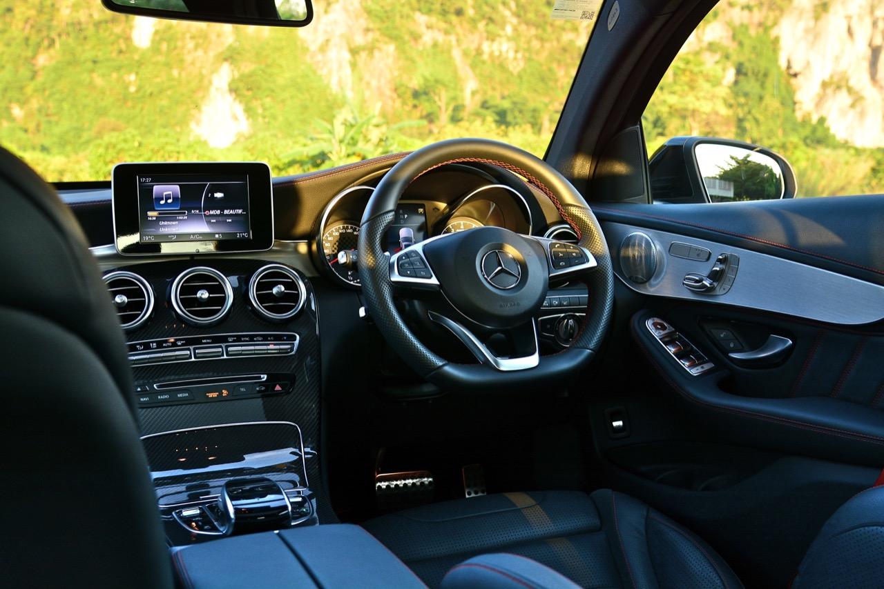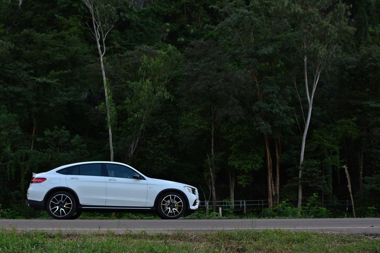 ตลอดระยะเวลา 1 อาทิตย์เต็มๆ ที่ผมได้ใช้ชีวิตอยู่ร่วมกับมันบนระยะทางกว่า 800 กิโลเมตร เจ้า GLC43 4MATIC รุ่นแพงสุดที่ยัดล้อขอบ 21 นิ้วมาให้จากโรงงานเป็นรถที่ขับได้ดีเอามากๆ และจะดีกว่านี้อีกมากหากลดขนาดของล้อลงมาหน่อย ล้อ 21 นิ้วนั้นสวยและเต็มซุ้มล้อเหมาะดีแต่มาเจอกับผิวถนนแบบโลกพระจันทร์ทำให้เกิดความไม่สบายตัวยามขับผ่านทางที่ไม่เรียบ สมรรถนะอันสูงส่งของ GLC43 ทำให้รถเกือบทุกคันบนถนนกลายเป็นรถที่ขับช้ากันไปหมด