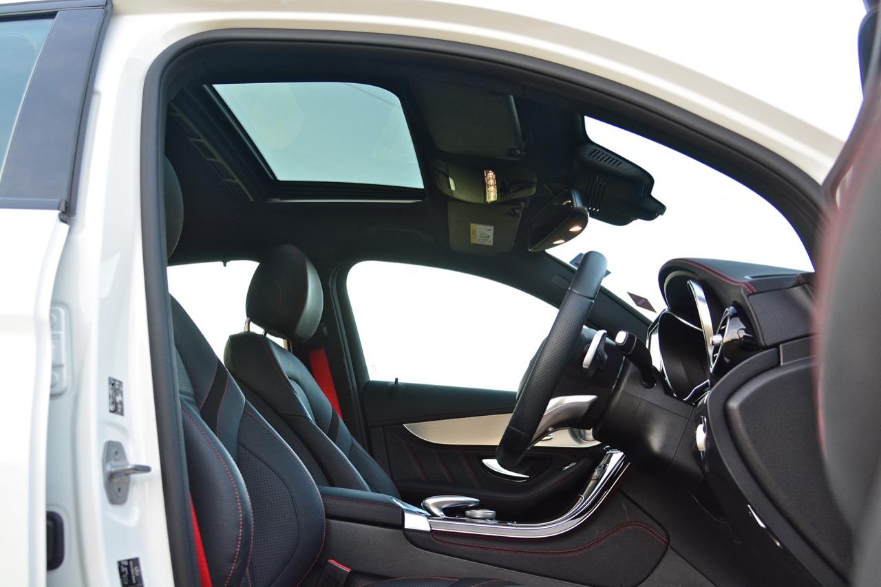 Cockpit ของ GLC43 4Matic Coupe มีการปรับเปลี่ยนกระบวนทัศน์ด้วยการเพิ่มสัดส่วนพื้นที่ของการใช้งานโดยเน้นความอเนกประสงค์และความสบาย ภายในไล่เรียงจากคอนโซล เบาะกับงานตกแต่งที่มีความหรูหรามากกว่าเดิม Mercedes AMG ใช้รูปแบบภายในที่ค่อนข้างลงตัวของ New C-Class มาปรับใช้กับรถอเนกประสงค์รุ่น GLC ด้วยการแปลงรูปแบบของคอนโซลและอุปกรณ์บางชิ้นที่ให้ทั้งความสะดวกสบายและความสวยงาม อุปกรณ์ราคาแพงประดับอยู่ทั่วไปหมด เช่น แผงประตู ปุ่มและสวิตช์สำหรับสั่งงานที่เน้นความหรู เป็นการย้ำเตือนไปถึงรถคู่แข่งอย่าง BMW X4 ด้วยงานออกแบบและตกแต่งห้องโดยสารที่อ้างอิงความหรู การปรับรุ่นแยกย่อยสำหรับการตกแต่งภายในที่มีความแตกต่างอย่างชัดเจน อุปกรณ์พวกอิเล็กทรอนิกส์ที่ทันสมัยสอดคล้องกับมาตรฐานอันสูงส่งที่ถูกกำหนดโดยตัวรถรุ่นพี่อย่าง New GLE งานตกแต่งภายในของ GLC43 4Matic Coupe ที่มีความประณีตบรรจงจากงานประกอบสำหรับการเชื่อมโยงบรรยากาศภายในห้องโดยสารสไตล์ Mercedes AMG ผนวกเข้ากับการใช้งานผ่านผิวสัมผัสของวัสดุชั้นสูง เช่น งานหนังและอะลูมิเนียม จัดทำอย่างพิถีพิถัน หลังคากระจกไฟฟ้าถูกติดตั้งเพื่อเพิ่มความสว่างและความรู้สึกโปร่งโล่ง