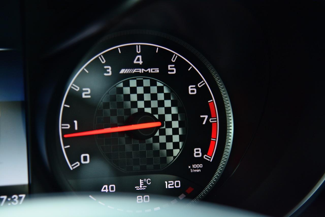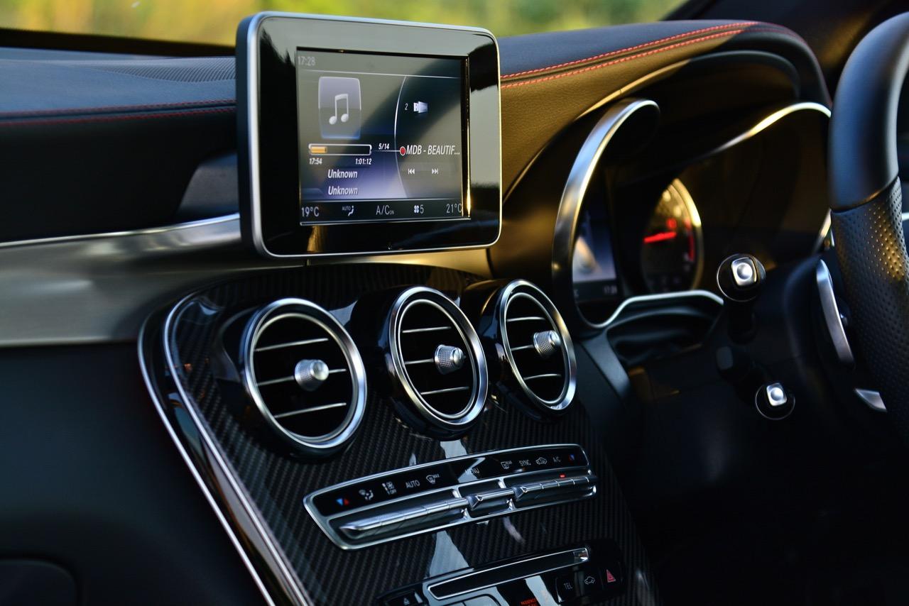 แผงหน้าปัด AMG มีหน้าปัดทรงกระบอกกลมขนาดใหญ่ 2 วง ทั้งมาตรวัดความเร็วและมาตรวัดรอบ พร้อมจอแสดงผล MID มัลติฟังก์ชั่นขนาด 13.9 ซม. แสดงข้อมูลที่สำคัญ เช่น อัตราสิ้นเปลือง ตำแหน่งเกียร์ โหมดการขับเคลื่อน อุณหภูมิภายนอกห้องโดยสาร หน้าปัดแบบทรงกระบอกกลมหุ้มกรอบด้วยชิ้นงานโครเมียม มาตรวัดความเร็วอยู่ทางซ้าย ส่วนมาตรวัดรอบเครื่องยนต์อยู่ทางขวา เป็นมาตรวัดของ AMG แบบตาหมากรุกที่ทำขึ้นมาเป็นพิเศษสำหรับติดตั้งลงในหน้าปัดของรถสปอร์ตเวอร์ชั่น AMG โดยใช้ดีไซน์ที่แตกต่างจาก GLC Coupé รุ่นมาตรฐาน