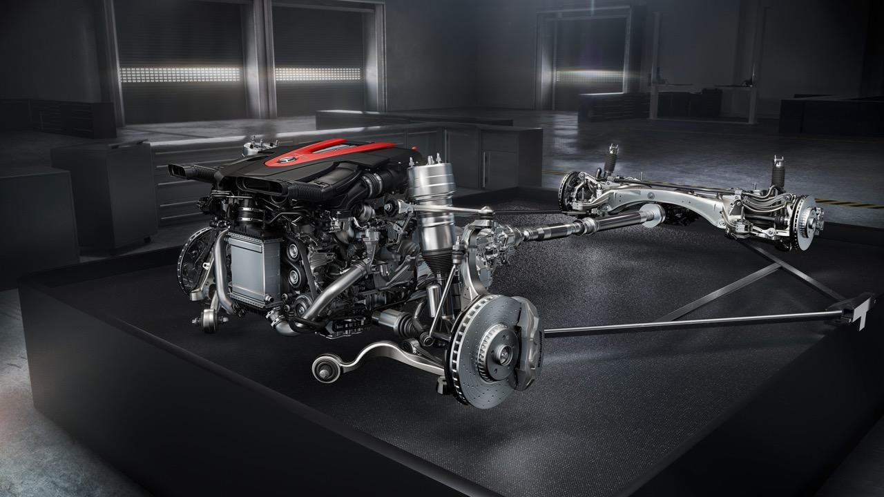 ระบบขับเคลื่อน 4 ล้อ พัฒนาโดย Mercedes-AMG ช่วยให้เกิดแรงฉุดลากจากการถ่ายเทแรงบิดที่ดีเยี่ยม ในสถานการณ์ปกติจะมีการกระจายแรงบิดทางด้านหลังมากกว่าด้านหน้าเพื่อสร้างความเสถียรและช่วยลดการใช้เชื้อเพลิง Mercedes-AMG จะกระจายแรงบิดของเครื่องยนต์ในอัตราส่วน 31% ไปยังเพลาหน้าและ 69% สำหรับเพลาล้อหลัง ระบบขับเคลื่อน 4 ล้อ AMG 4MATIC ยังช่วยเพิ่มความปลอดภัยในการขับบนพื้นผิวถนนที่เปียกชื้นหรือมีหิมะปกคลุม AMG 4MATIC ใช้คลัตช์หลายแผ่นทับซ้อนกัน ช่วยให้มั่นใจได้ว่าสามารถถ่ายเทแรงบิดลงไปยังล้อขับเคลื่อนทั้งสี่ได้อย่างสมบูรณ์แบบ โดยเฉพาะอย่างยิ่งการขับบนผิวถนนที่เปียกชื้นแนวคิดพื้นฐานของระบบขับเคลื่อนนี้ช่วยทำให้มีแรงบิดสำหรับการลากจูงสูง เนื่องจากใช้ระบบเพลาแบบไดนามิกโดยจะเทแรงบิดไปยังล้อหลังระหว่างการเร่งความเร็ว รวมถึงจัดแรงบิดที่เหมาะสมสำหรับล้อคู่หน้าเพื่อสร้างแรงยึดเกาะที่ดี