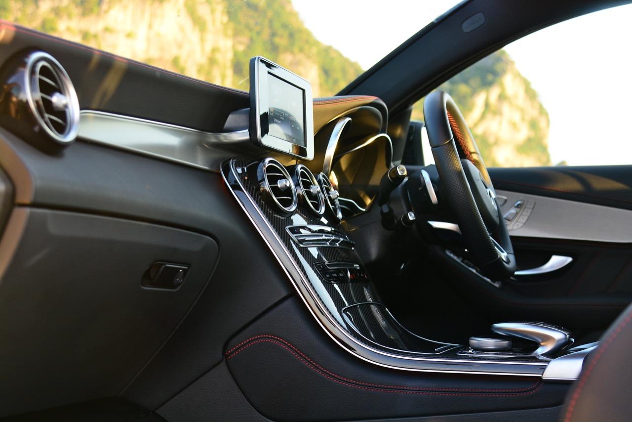 ส่วนบนของแดชบอร์ดห่อหุ้มด้วยหนัง ARTICO faux leather เดินเส้นด้วยโครเมียมพร้อมโครงอะลูมิเนียมน้ำหนักเบาคุณภาพสูงที่ช่วยยกระดับความหรูหรามีราคา เพิ่มงานตกแต่งภายในให้ดูดีมีสไตล์แบบพรีเมียมด้วยแผงคาร์บอนไฟเบอร์แนวสปอร์ตกรุจากคอนโซลกลางลงมาจนถึงชุดควบคุม COMAND CONTROL ชุดไฟภายในห้องโดยสารเป็นระบบแสงสว่างที่ครอบคลุมทั้ง footwells ไฟ LED สำหรับอ่านแผนที่ทั้งด้านหน้าและด้านหลังรวมถึงไฟประตู