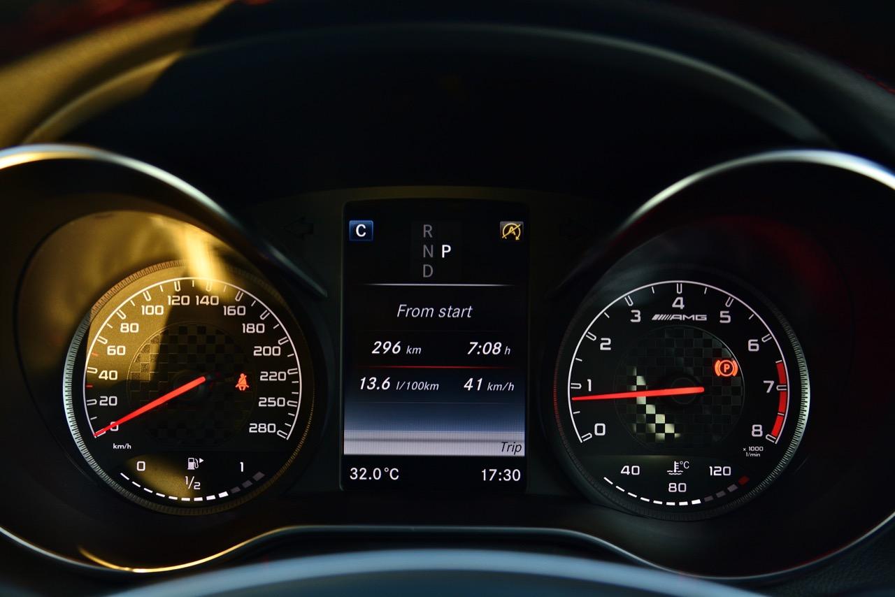 ผมใช้การขับทดสอบยาวตลอดระยะเวลาทั้ง 7 วัน ช่วงแรกใช้เส้นทางกรุงเทพฯ บางไทร อยุธยา โดยขับไปกลับ 2 เที่ยวในวันหยุดเสาร์-อาทิตย์ ส่วนช่วงท้ายๆ ของการขับทดสอบในวันธรรมดาก็จัดเต็มด้วยการขับจากกรุงเทพฯ ไปยัง หุบป่าตาด-เขาปลาร้า ในจังหวัดอุทัยธานี รวมระยะทางการขับทดสอบตลอด 7 วันมากกว่า 800 กิโลเมตร อัตราสิ้นเปลืองเชื้อเพลิงด้วยการลากยาวเฉลี่ย 9.8 กิโลเมตรต่อลิตร และคาอยู่ใน Sport Mode เป็นการขับทดสอบในรูปแบบโล่งเป็นกด ส่งกันยาวๆ ไม่ขับแบบหยอดย่องเพื่อเอาอัตราสิ้นเปลืองมาโม้ถึงความประหยัด แต่เชื่อเถอะว่าคนที่ซื้อรถรุ่นนี้ไม่มีปัญหากับราคาเชื้อเพลิงและไม่เคยสนใจการซดน้ำมันของ GLC43 อย่างแน่นอนที่สุด