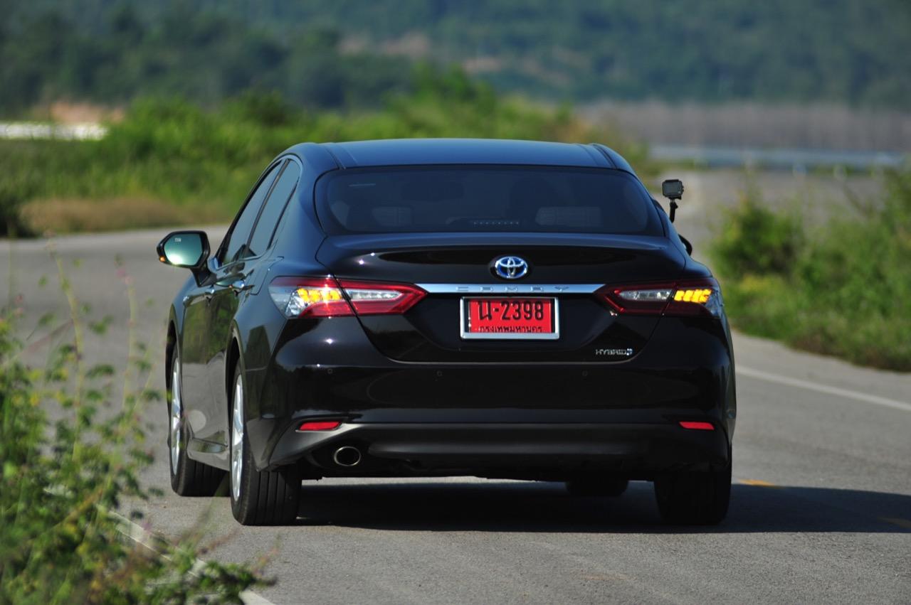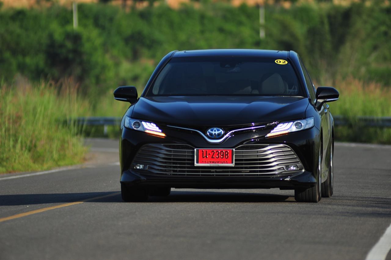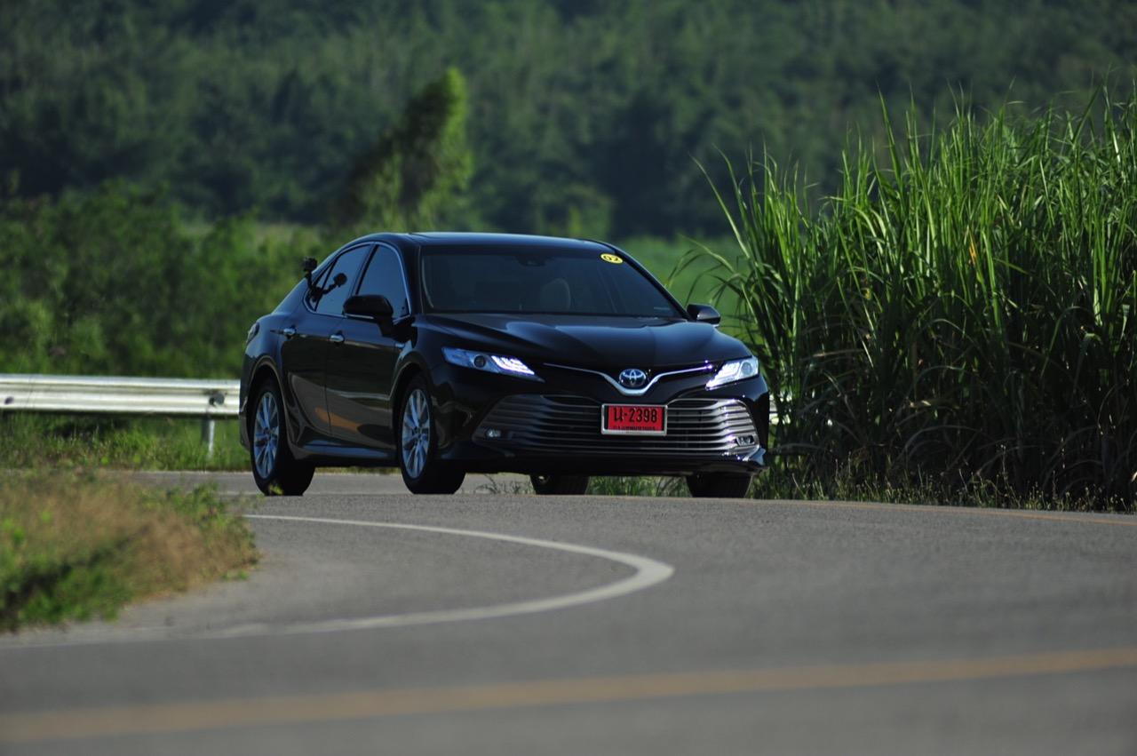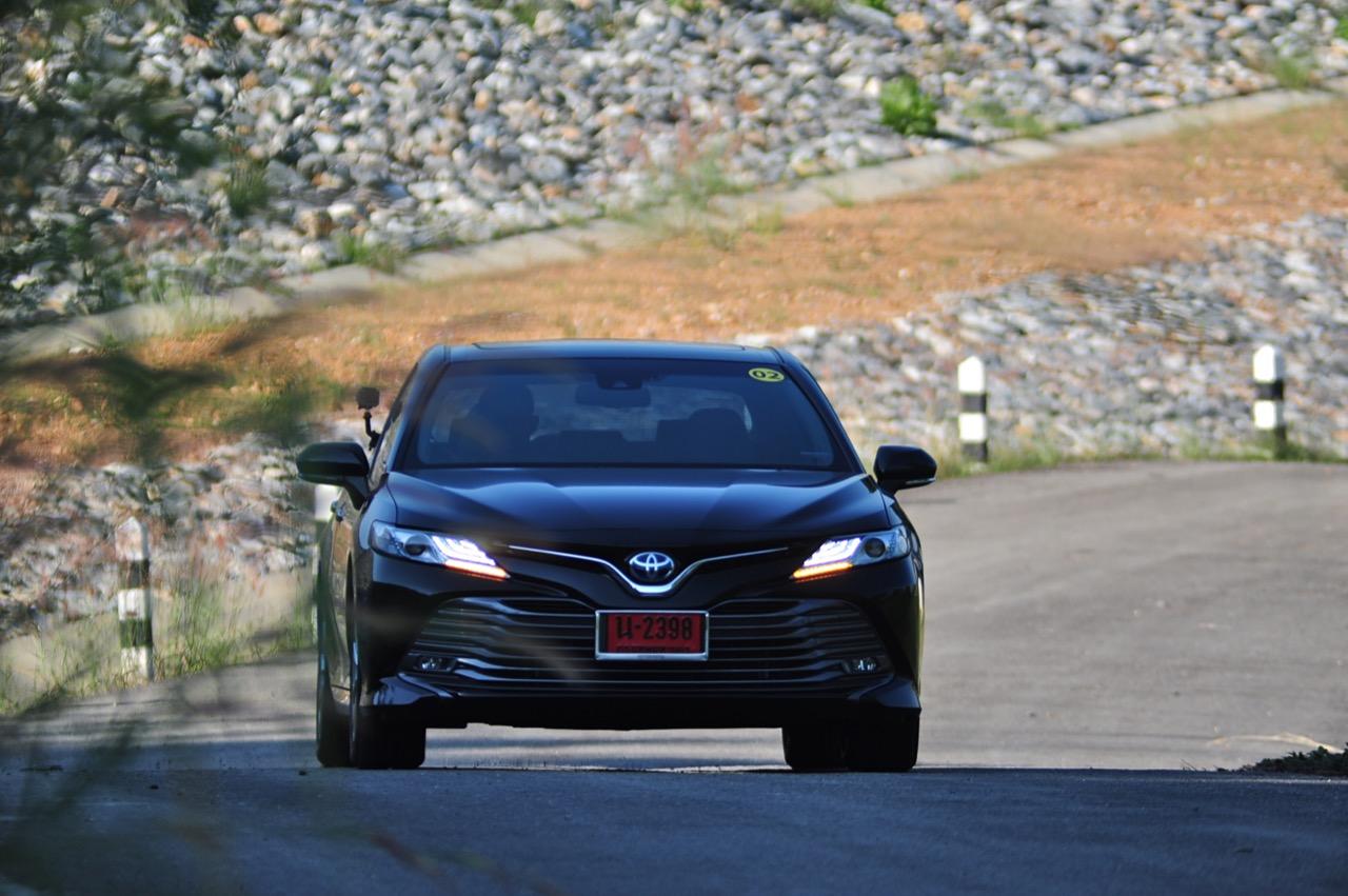 ลืมเรื่องภายในแหล่มๆ เอาไว้สักครู่ แล้วหันมาดูกันที่ความแจ่มหลังพวงมาลัยกันต่อดีกว่า New Camry ดูเข้ากับยุคสมัยที่เปลี่ยนแปลงไปอยู่ตลอดเวลา แม้จะยึดหลักอนุรักษ์นิยมสไตล์ Toyota แต่ก็เดินสายกลางด้วยความหรูและการแบ่งปันระหว่างการควบคุมที่ดี (เยี่ยม) กับอุปกรณ์พร้อมระบบความปลอดภัยขั้นแนวหน้า เป็นรถที่เคยประสบความสำเร็จด้านยอดขายแล้วก็กลับมาหล่นเพราะไม่มีอะไรที่ให้ความแปลกใหม่กับลูกค้าขาประจำ รุ่นใหม่นี้ยังคงความเป็นรถซาลูนไซส์กลางที่แสนดีและคงทน การรับประกันที่เพิ่มมากขึ้นเป็น 150,000 กิโลเมตร รวมถึงประกันระบบไฮบริดและแบตเตอรี่ที่ยาวนานกว่าเดิมทำให้ไม่ต้องไปกลัวว่าใช้แล้วจะเจ๊งเร็ว