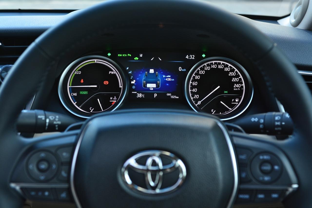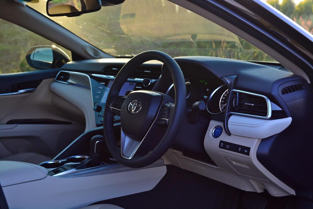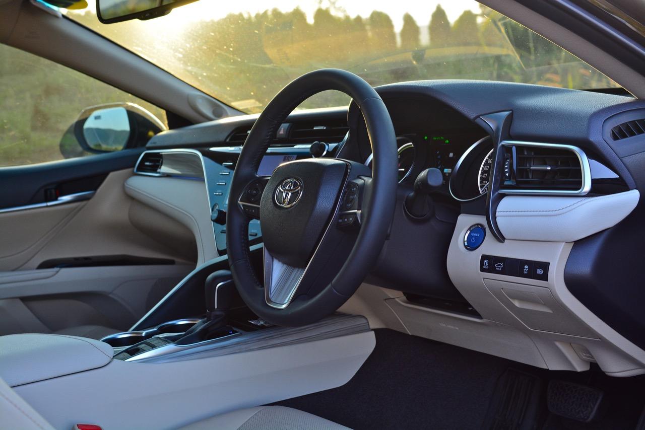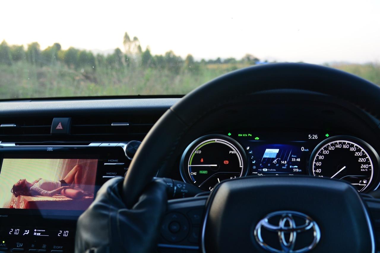 ลืมเรื่องภายในแหล่มๆ เอาไว้สักครู่ แล้วหันมาดูกันที่ความแจ่มหลังพวงมาลัยกันต่อดีกว่า New Camry ดูเข้ากับยุคสมัยที่เปลี่ยนแปลงไปอยู่ตลอดเวลา แม้จะยึดหลักอนุรักษ์นิยมสไตล์ Toyota แต่ก็เดินสายกลางด้วยความหรูและการแบ่งปันระหว่างการควบคุมที่ดี (เยี่ยม) กับอุปกรณ์พร้อมระบบความปลอดภัยขั้นแนวหน้า เป็นรถที่เคยประสบความสำเร็จด้านยอดขายแล้วก็กลับมาหล่นเพราะไม่มีอะไรที่ให้ความแปลกใหม่กับลูกค้าขาประจำ รุ่นใหม่นี้ยังคงความเป็นรถซาลูนไซส์กลางที่แสนดีและคงทน การรับประกันที่เพิ่มมากขึ้นเป็น 150,000 กิโลเมตร รวมถึงประกันระบบไฮบริดและแบตเตอรี่ที่ยาวนานกว่าเดิมทำให้ไม่ต้องไปกลัวว่าใช้แล้วจะเจ๊งเร็ว