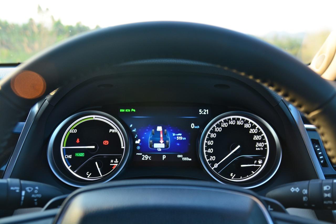 เครื่องยนต์และระบบไฮบริดผสานหน้าที่การทำงานไปตลอดทาง มันเนียนจนคุณไม่รู้เลยว่าเครื่องหรือมอเตอร์ที่กำลังฉุดลากน้ำหนัก 1.7 ตันให้ปลิวไปตามสายลม พวงมาลัยมีน้ำหนักคงที่ในย่านความเร็วต่ำและจะหน่วงมือขึ้นนิดๆ เมื่อขับเร็วหรือปรับจาก ECO Mode มาเป็น Sport Mode เกียร์ CVT ปราศจากอาการย้วย กระชับและถ่ายเทแรงบิดจากมอเตอร์และเครื่องยนต์ได้ดีขึ้นมาก แป้น Paddle Shift ใช้งานได้จริง และช่วยหน่วงความเร็วรถได้บ้างเมื่อต้องการจะลดเกียร์พร้อมๆ กับการเบรก การถ่ายเทน้ำหนักในโค้งหรือแม้แต่ตอนที่ลงเบรกหนักๆ ทำได้ดีอย่างเหลือเชื่อ
