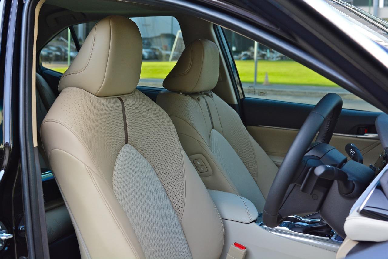 เบาะหนังที่สวยงามของ Camry 2.5 HV Premium ลอกเลียนแบบเบาะของ Lexus ES300h ซาลูนหรูสุดติ่งราคา 4 ล้าน โดยจัดมาแบบเต็มสูบด้วยเบาะปรับไฟฟ้าพร้อมหน่วยความจำ 2 ตำแหน่ง