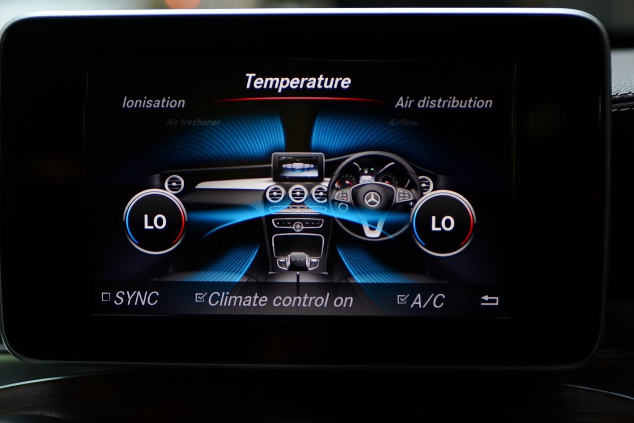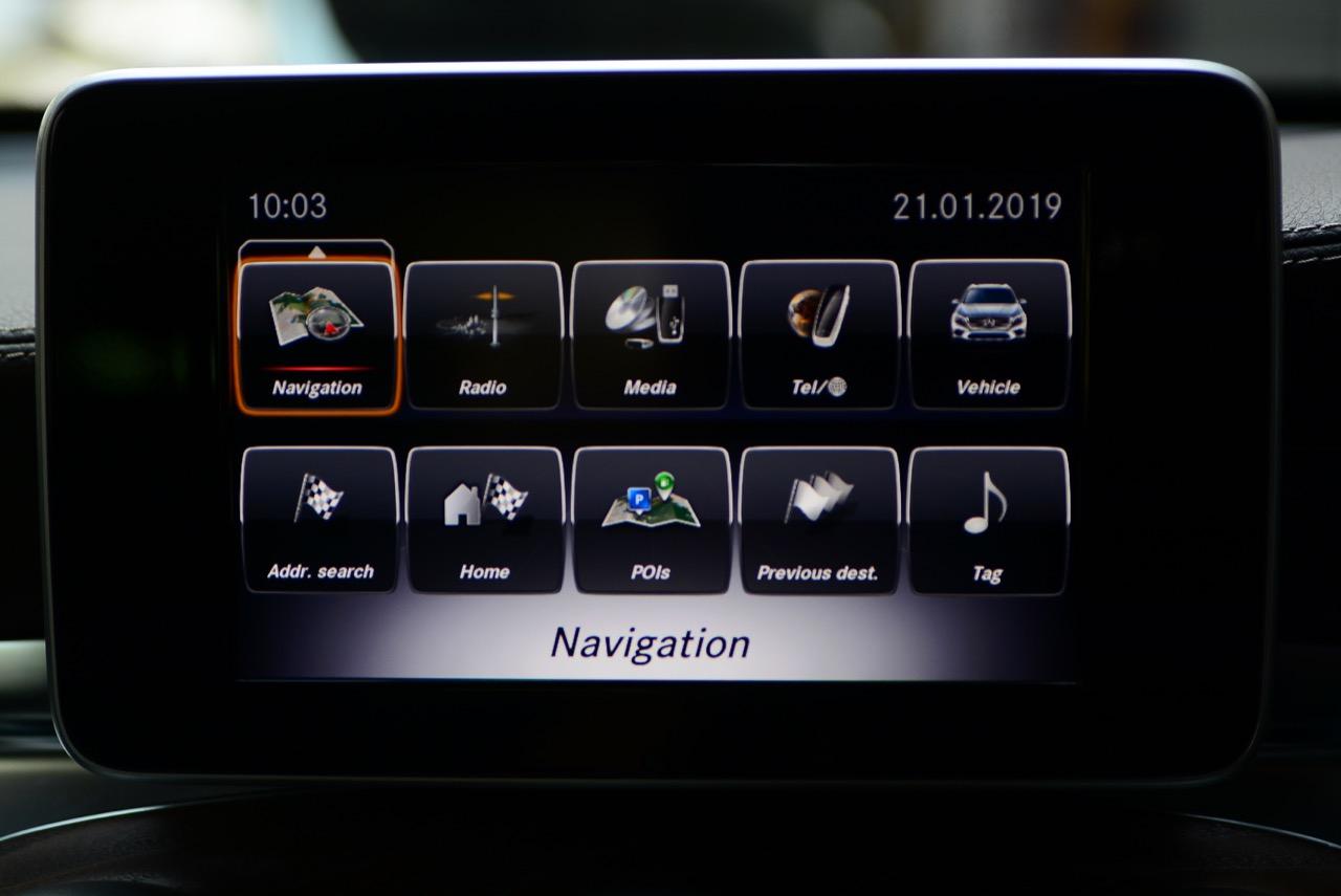 ต่ำลงมาจากจอมอนิเตอร์เป็นช่องแอร์ทรงกลม 3 วง กับแผงควบคุมอุณหภูมิดิจิตอลที่ใช้งานได้ง่ายขึ้น ระบบแป้นสั่งงานแบบสัมผัสหรือทัชแพดครอบคลุมการใช้งานโดยสามารถเขียนตัวอักษรหรือตัวเลข ระบบ Comand Online สื่อสารกับโลกภายนอกด้วยอินเทอร์เน็ต ตำแหน่งศูนย์กลางของการแสดงผลแบบบูรณาการด้วยแผงควบคุมระบบอากาศ ซึ่งจะแสดงผลที่หน้าจอสำหรับการปรับตั้งระบบแอร์ในห้องโดยสาร ฟังก์ชั่นอันหลากหลายของการปรับตั้งที่ทำออกมาให้มีความน่าใช้งานผสมกับความง่ายในการเข้า-ออกจากเมนู จอภาพและกราฟิกที่สร้างความคมชัดด้วยรูปแบบที่น่าสนใจแต่รุ่น 250d Off-Road ไม่มีระบบนำทางด้วยดาวเทียมมาให้ หากอยากได้ก็ต้องควักกระเป๋าเพิ่ม