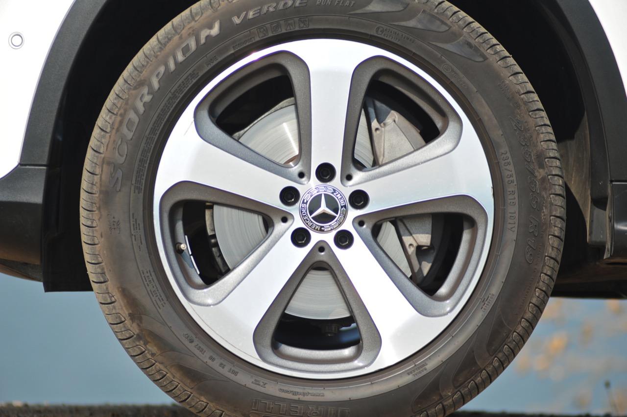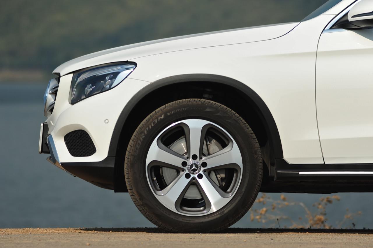 ระบบห้ามล้อของ GLC250d 4MATIC Off-Road เป็นจานเบรกเหล็กธรรมดาไม่ได้เจาะรูระบายความร้อนเหมือนรุ่น AMG คาร์ลิปเปอร์อัลลอยสีเทาก็ไม่มีตราสัญลักษณ์ Merceds-Benz เหมือนรุ่นที่แพงกว่า เป็นชุดเบรกที่ทำงานได้ดี เมื่อลองวิ่งลงมาจากเนินเขาแล้วใช้เบรกหนักๆ จานเบรกและพลังในการหยุดยั้งดีเยี่ยม GLC250d มีระยะเบรกจาก 100 กิโลเมตรต่อชั่วโมงจนหยุดนิ่งสนิทแค่ 35 เมตร เท่ากับรถสปอร์ตคันเล็กเลยทีเดียว ส่วนระบบขับเคลื่อน 4 ล้อ 4MATIC จะส่งแรงบิดไปที่ล้อหลังมากกว่าล้อหน้าเมื่อขับบนถนนปกติ โดยมี Torque Vectoring ที่สามารถช่วยให้ล้อหน้าส่งกำลังขับเคลื่อนได้ 50% ระบบขับเคลื่อน 4 ล้อ 4MATIC ช่วยทำให้รถมีความเสถียรเมื่อวิ่งอยู่บนไฮเวย์และช่วยให้คุณเอาตัวรอดได้เมื่อขับลุยฝ่าทางวิบาก ยาง pirelli รุ่น scorpion verde แบบ all season ไซล์ 235/55R19 101Y เป็นยางรัลแฟลตที่ค่อนข้างนุ่มนวล แก้มยางไม่ได้แข็งกระด้างเหมือนยางรันแฟลตทั่วๆ ไป เป็นส่วนผสมที่ลงตัวเมื่อต้องทำงานร่วมกับช่วงล่างของ GLC มันให้ทั้งความสบายและความหนึบ ทำให้ล้อขอบ 21 นิ้วของ GLC 43AMG ดูด้อยประสิทธิภาพบนทางตรงกันไปเลยทีเดียว ล้อใหญ่เกินไปไม่ใช่เรื่องที่ดีและการมีล้อแค่ 19 นิ้วก็เหมาะสมกันดีอยู่แล้วบนถนนในประเทศไทยที่ไม่ค่อยจะมีความสม่ำเสมอ ถ้าจะเอาสวยแบบเต็มซุ้ม เล่นกันถึงขอบ 21-22 นิ้ว คุณก็จะพบกับราคาที่แพงแสบไส้ของยางและอาการสะเทือนและโคลงเคลงในแบบที่จะทำให้ขับไม่สนุก! แก้มยางที่เตี้ยสุดๆ เมื่ออยู่ในล้อไซส์ยักษ์อาจเกิดความเสียหายได้ตลอดเวลาเมื่อขับแบบขาดความระมัดระวัง