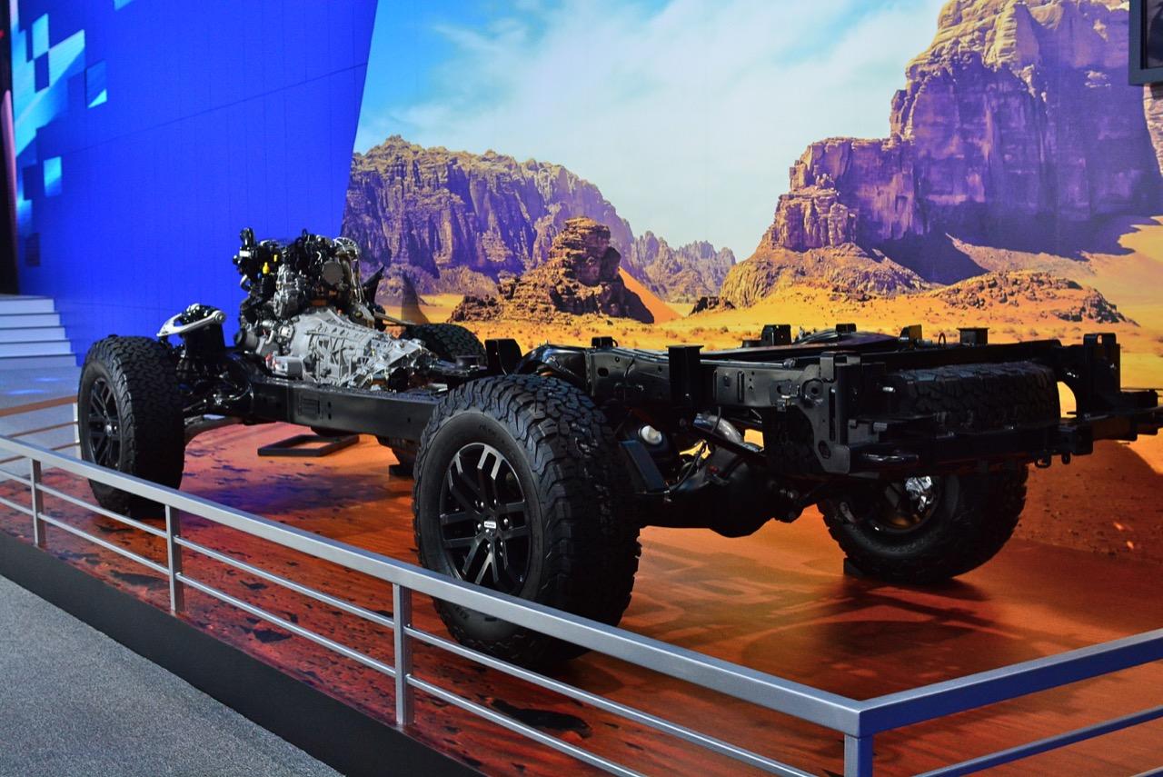 แชสซีด้านหน้าเพิ่มความแข็งแรงของจุดยึดหูโช้คที่ถูกขยายความสูงขึ้นมา ระบบกันสะเทือนหลังเป็นแบบคอยล์โอเวอร์ช็อก รวมถึงระบบวัตต์ลิงค์ ช่วยให้เพลาเคลื่อนที่ขึ้น-ลงได้อย่างอิสระ โดยที่มีการขยับตัวในแนวราบน้อย ชุดตะขอเกี่ยว 2 ชุดด้านหน้าและด้านหลังที่รองรับน้ำหนักจากการลากจูงได้ 3.8 ตัน โครงสร้างแท่นยึดยางอะไหล่ที่ถูกเสริมความแข็งแรงเพื่อรองรับยางอะไหล่ขนาด 17 นิ้ว รองรับโช้คแบบ Position Sensitive Damping (PSD)