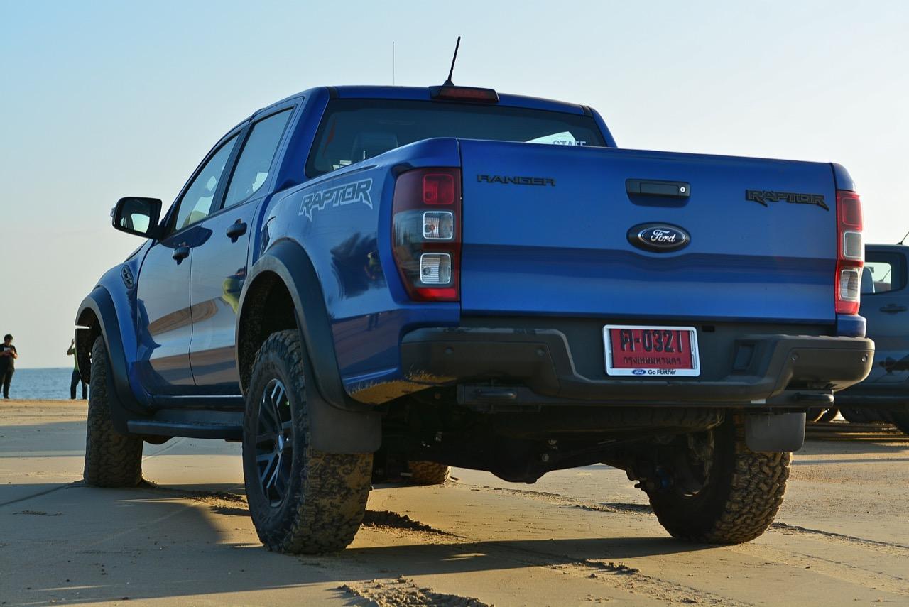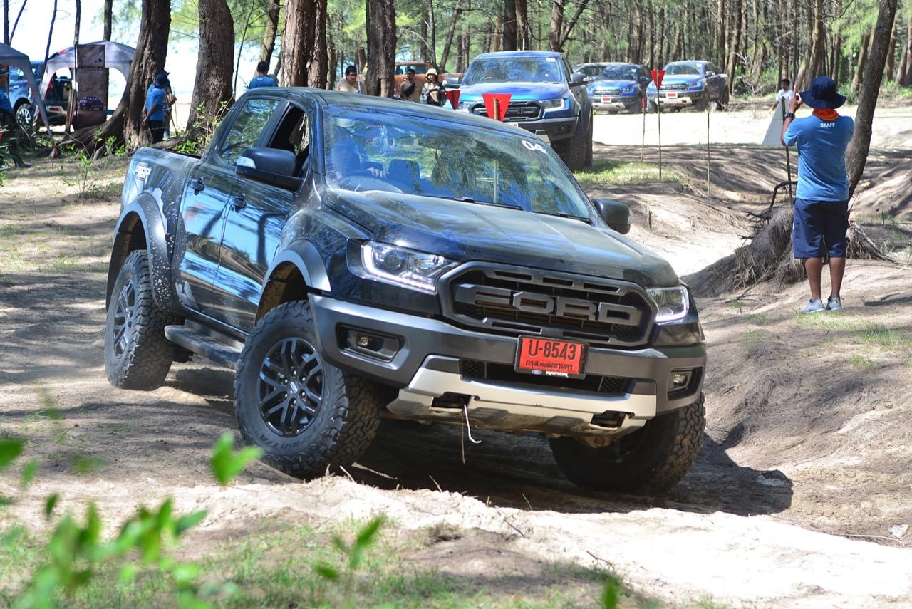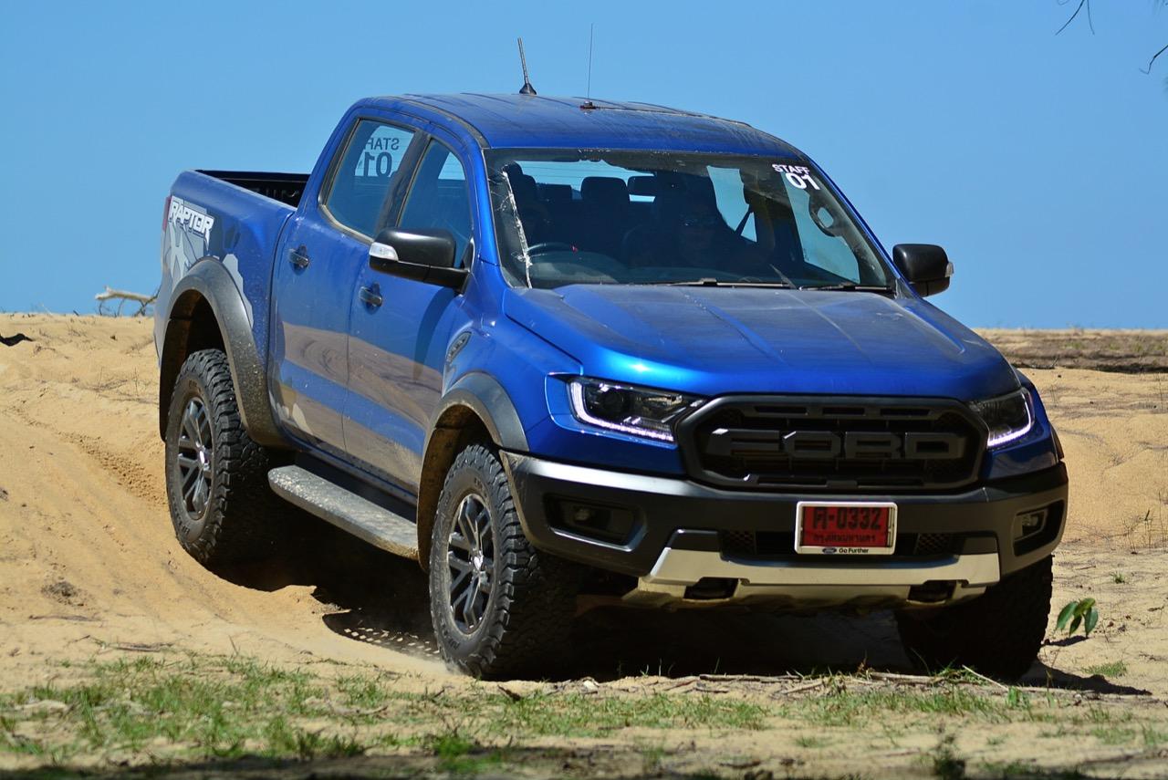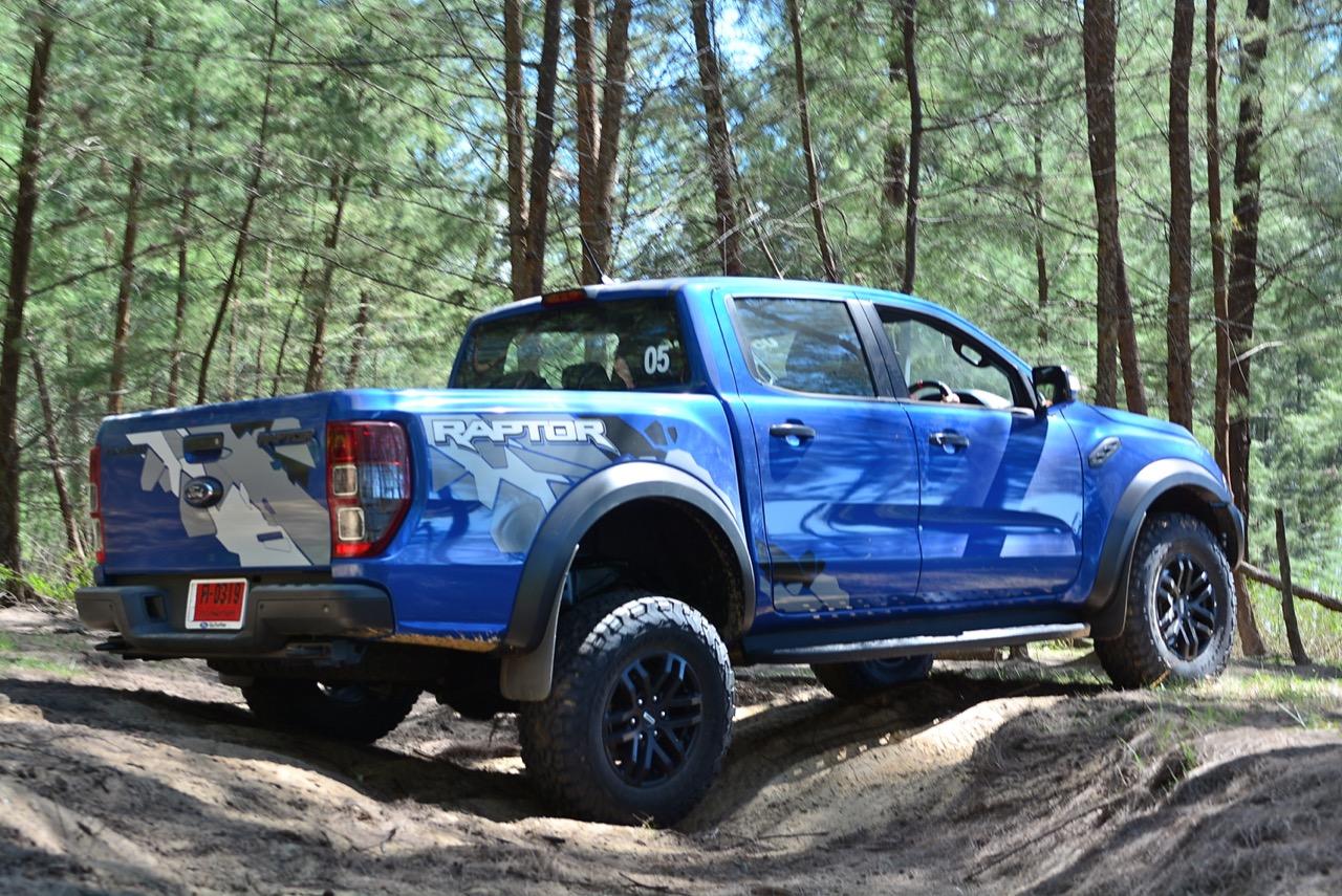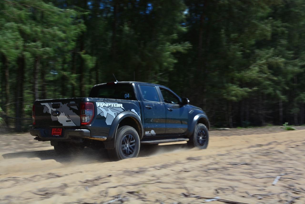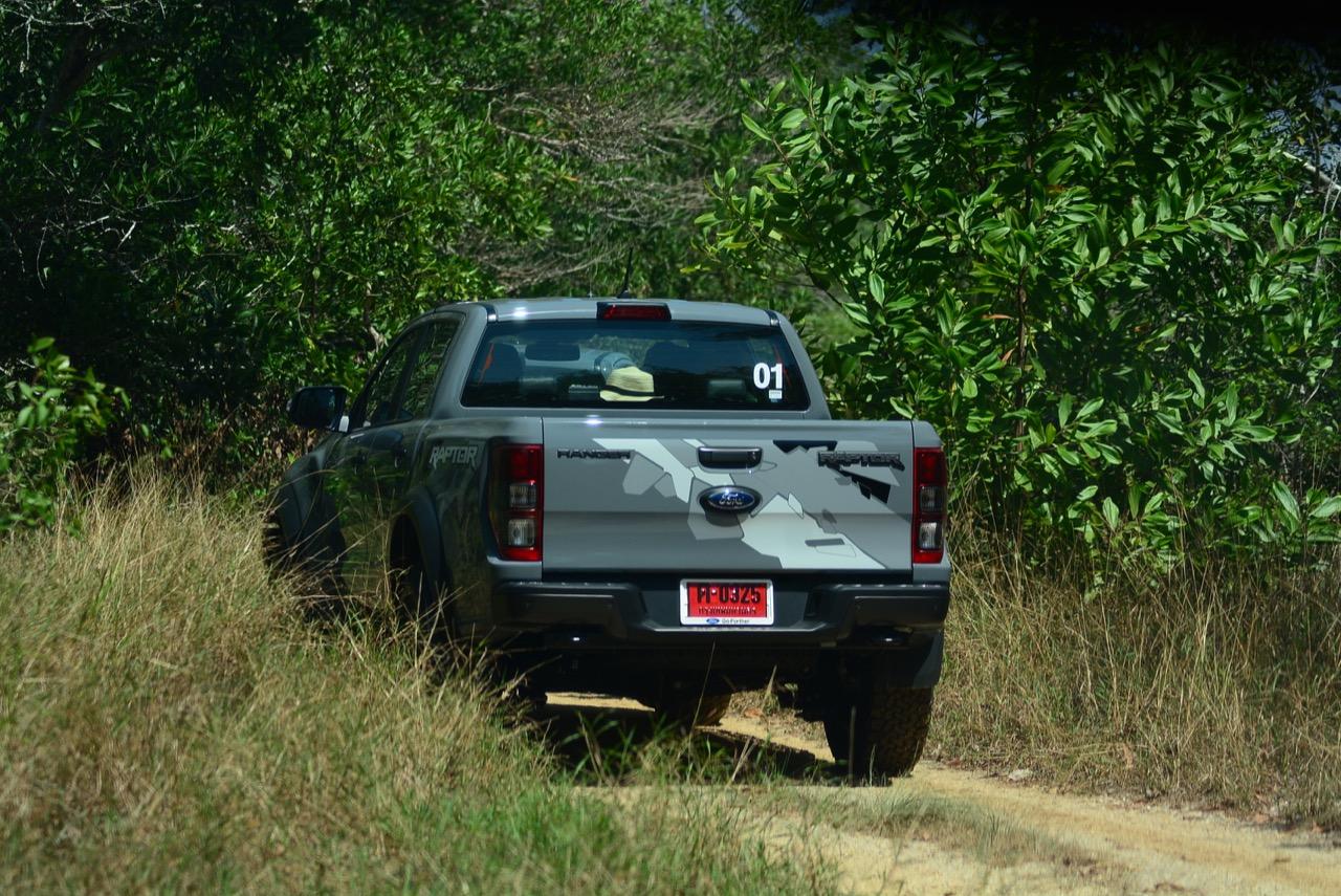 เรื่องการลุยแหลกนั้นหายห่วง ด้วยความที่มีโหมดขับเคลื่อนเยอะมากถึง 6 โหมด คุณสามารถวางตำแหน่งที่ถูกต้องของรถด้วยความง่ายดายและเอาตัวรอดในเส้นทางที่ยากลำบาก ไม่ว่าจะขับบนทางลูกรัง ทราย โคลน หินหรือหญ้า เมื่อเทียบกับกระบะทั่วไปที่มีระบบขับเคลื่อน 4 ล้อก็สามารถลุยได้เหมือนกัน แต่ไม่มีโหมดที่จะช่วยให้ฟันฝ่าเส้นทางที่เป็นทรายลึก ใน Raptor ทุกอย่างง่ายๆ แค่กดปุ่มเลือกใช้โหมดให้ตรงกับสภาพของเส้นทางแค่นั้นก็พอ Ranger Raptor มีทุกอย่างที่จะช่วยให้การขับลุยกลายเป็นเรื่องง่ายดาย แค่คนขับมีทักษะในการควบคุมทิศทางและการใช้คันเร่งก็สามารถลุยฝ่าอุปสรรคได้อย่างสบายๆ จุดเด่นที่ดีงามของ Ranger Raptor อีกจุดก็คือการประกอบที่แน่นหนา เมื่อขับลุยฝ่าร่องสวนหรือหล่มลึกๆ แล้วไต่ขึ้นมาในลักษณะเอียงกระเท่เร่ ไม่มีเสียงลั่นของตัวถังดังเข้ามาให้ได้ยินแม้แต่น้อย รวมถึงคอนโซลและแดชบอร์ดก็ยังเงียบไม่ปรากฏว่ามีเสียงดังออดๆ แอดๆ ให้รำคาญใจ เป็นอีกจุดที่ทำออกมาได้โดนอยู่เหมือนกัน
