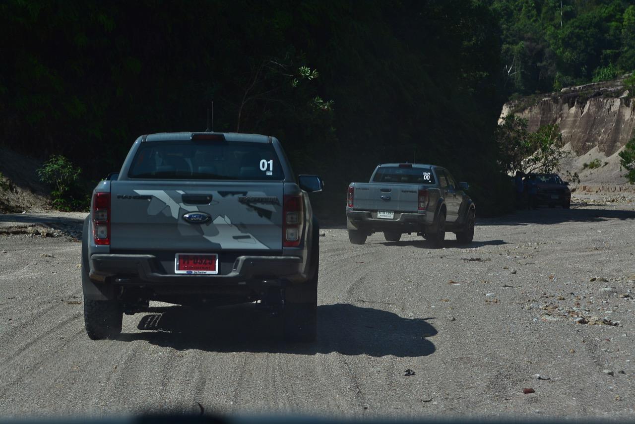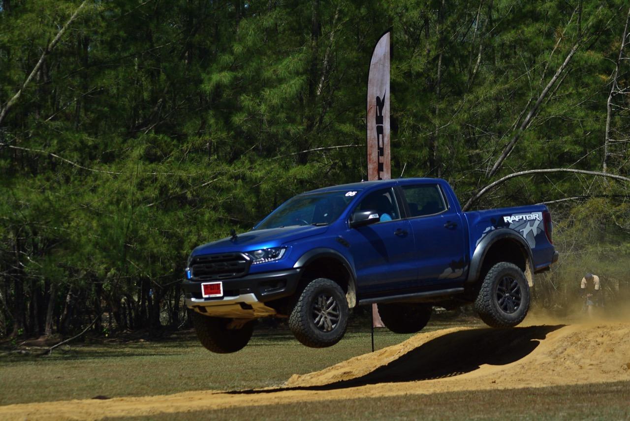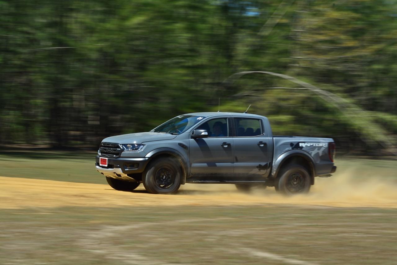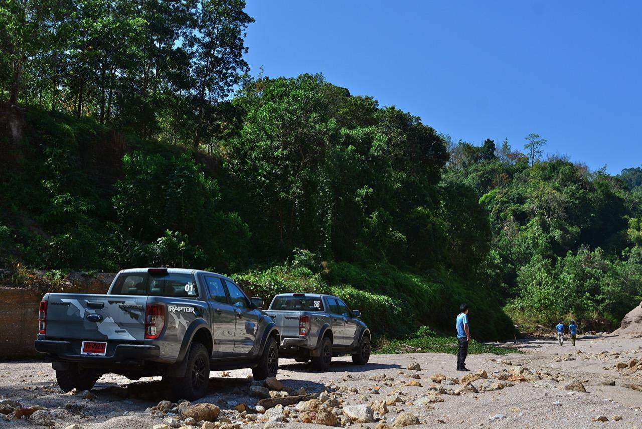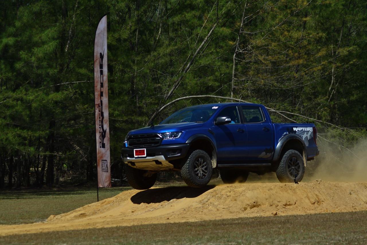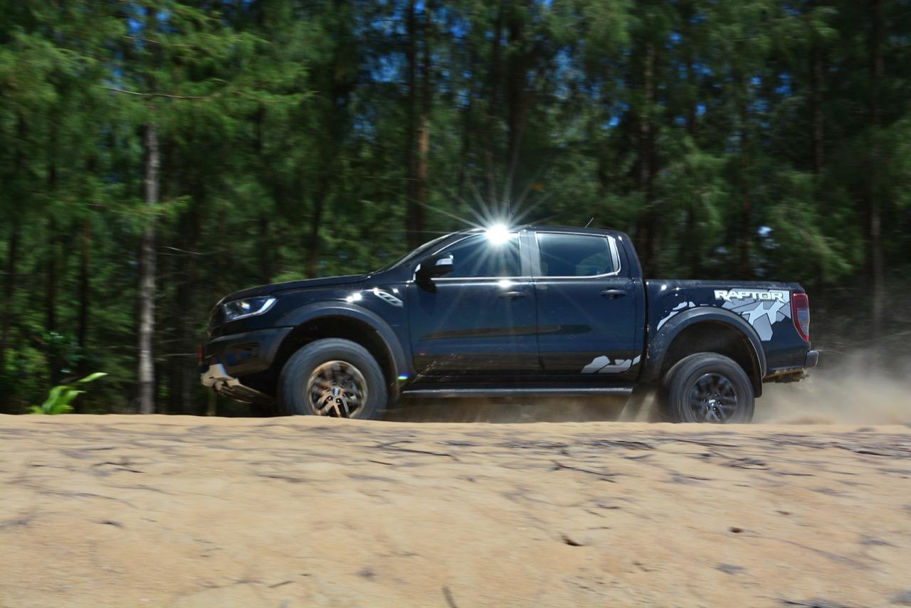เรื่องการลุยแหลกนั้นหายห่วง ด้วยความที่มีโหมดขับเคลื่อนเยอะมากถึง 6 โหมด คุณสามารถวางตำแหน่งที่ถูกต้องของรถด้วยความง่ายดายและเอาตัวรอดในเส้นทางที่ยากลำบาก ไม่ว่าจะขับบนทางลูกรัง ทราย โคลน หินหรือหญ้า เมื่อเทียบกับกระบะทั่วไปที่มีระบบขับเคลื่อน 4 ล้อก็สามารถลุยได้เหมือนกัน แต่ไม่มีโหมดที่จะช่วยให้ฟันฝ่าเส้นทางที่เป็นทรายลึก ใน Raptor ทุกอย่างง่ายๆ แค่กดปุ่มเลือกใช้โหมดให้ตรงกับสภาพของเส้นทางแค่นั้นก็พอ Ranger Raptor มีทุกอย่างที่จะช่วยให้การขับลุยกลายเป็นเรื่องง่ายดาย แค่คนขับมีทักษะในการควบคุมทิศทางและการใช้คันเร่งก็สามารถลุยฝ่าอุปสรรคได้อย่างสบายๆ จุดเด่นที่ดีงามของ Ranger Raptor อีกจุดก็คือการประกอบที่แน่นหนา เมื่อขับลุยฝ่าร่องสวนหรือหล่มลึกๆ แล้วไต่ขึ้นมาในลักษณะเอียงกระเท่เร่ ไม่มีเสียงลั่นของตัวถังดังเข้ามาให้ได้ยินแม้แต่น้อย รวมถึงคอนโซลและแดชบอร์ดก็ยังเงียบไม่ปรากฏว่ามีเสียงดังออดๆ แอดๆ ให้รำคาญใจ เป็นอีกจุดที่ทำออกมาได้โดนอยู่เหมือนกัน
