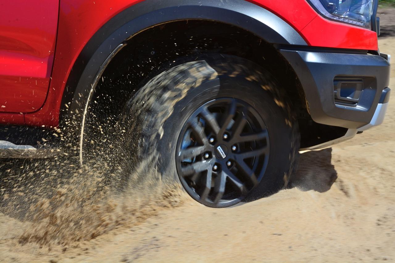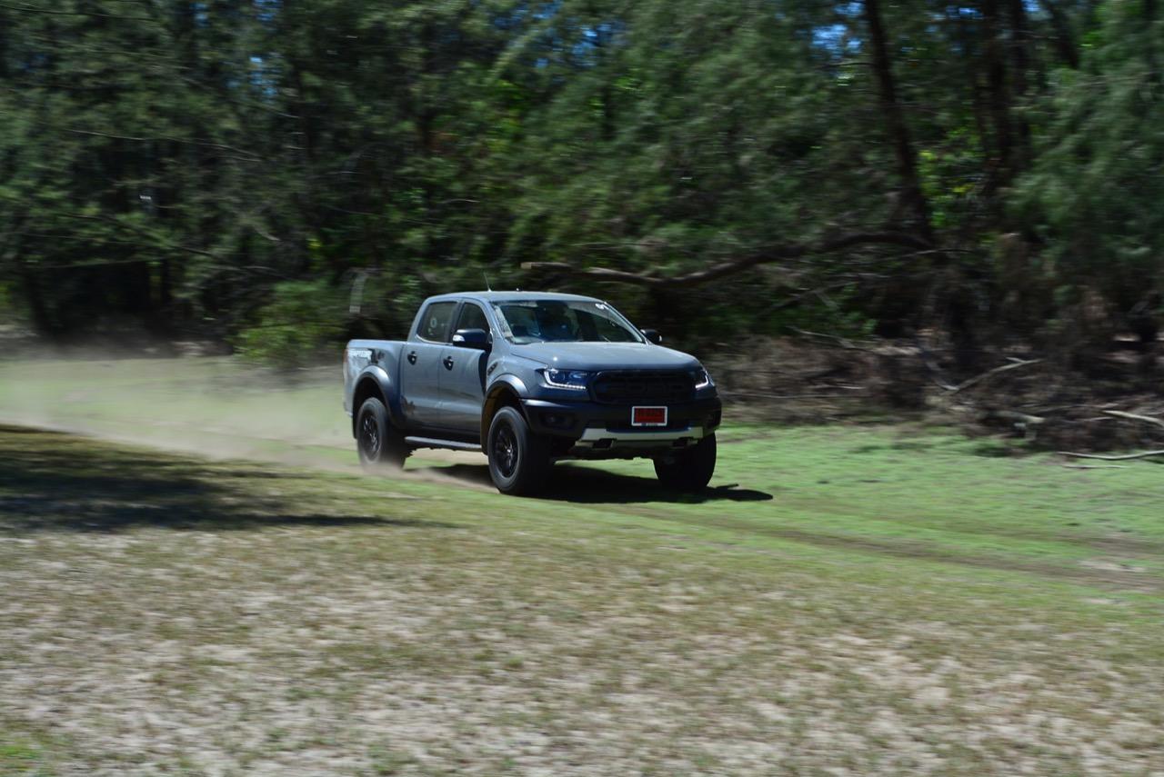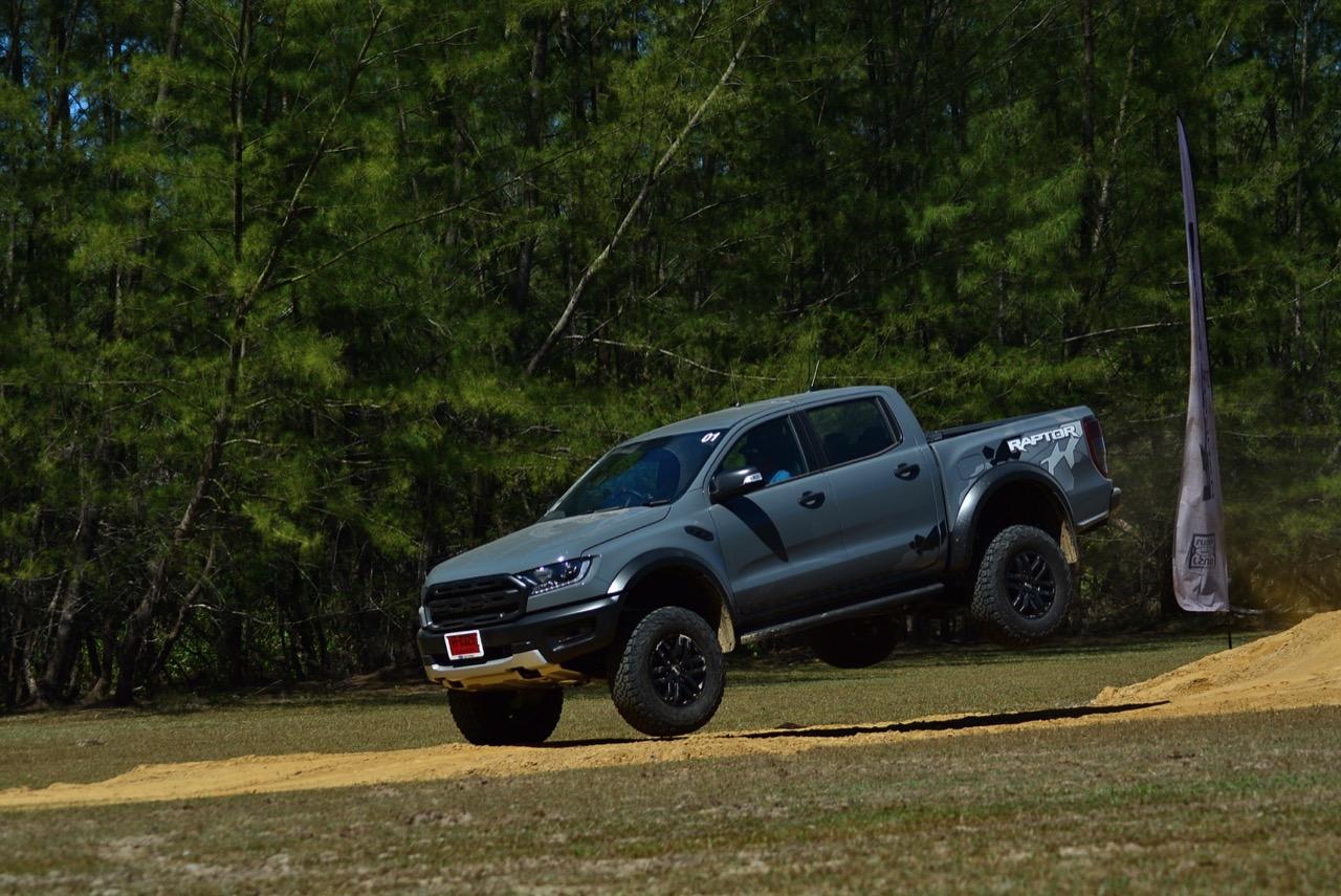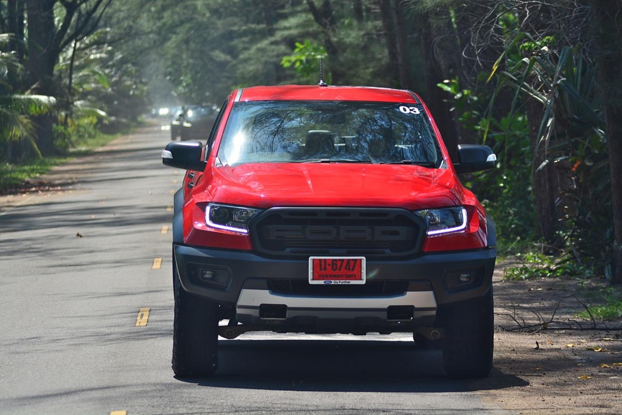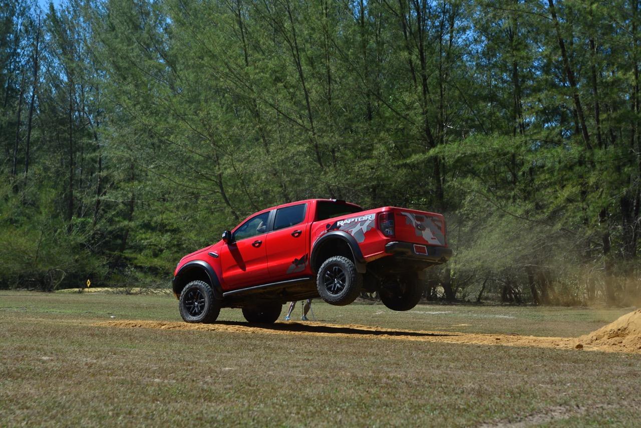 เรื่องการลุยแหลกนั้นหายห่วง ด้วยความที่มีโหมดขับเคลื่อนเยอะมากถึง 6 โหมด คุณสามารถวางตำแหน่งที่ถูกต้องของรถด้วยความง่ายดายและเอาตัวรอดในเส้นทางที่ยากลำบาก ไม่ว่าจะขับบนทางลูกรัง ทราย โคลน หินหรือหญ้า เมื่อเทียบกับกระบะทั่วไปที่มีระบบขับเคลื่อน 4 ล้อก็สามารถลุยได้เหมือนกัน แต่ไม่มีโหมดที่จะช่วยให้ฟันฝ่าเส้นทางที่เป็นทรายลึก ใน Raptor ทุกอย่างง่ายๆ แค่กดปุ่มเลือกใช้โหมดให้ตรงกับสภาพของเส้นทางแค่นั้นก็พอ Ranger Raptor มีทุกอย่างที่จะช่วยให้การขับลุยกลายเป็นเรื่องง่ายดาย แค่คนขับมีทักษะในการควบคุมทิศทางและการใช้คันเร่งก็สามารถลุยฝ่าอุปสรรคได้อย่างสบายๆ จุดเด่นที่ดีงามของ Ranger Raptor อีกจุดก็คือการประกอบที่แน่นหนา เมื่อขับลุยฝ่าร่องสวนหรือหล่มลึกๆ แล้วไต่ขึ้นมาในลักษณะเอียงกระเท่เร่ ไม่มีเสียงลั่นของตัวถังดังเข้ามาให้ได้ยินแม้แต่น้อย รวมถึงคอนโซลและแดชบอร์ดก็ยังเงียบไม่ปรากฏว่ามีเสียงดังออดๆ แอดๆ ให้รำคาญใจ เป็นอีกจุดที่ทำออกมาได้โดนอยู่เหมือนกัน