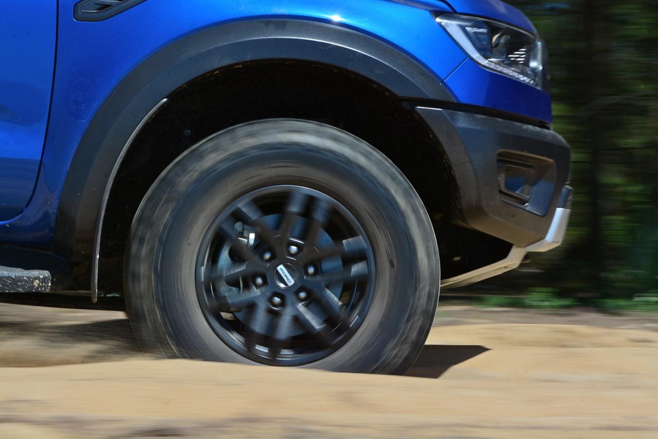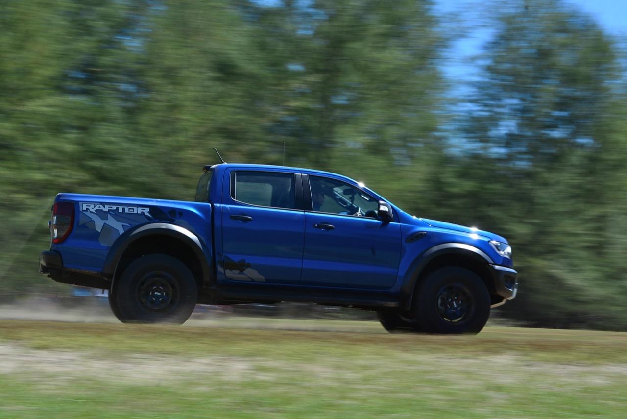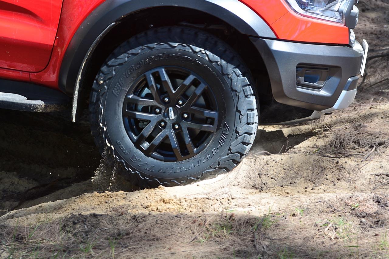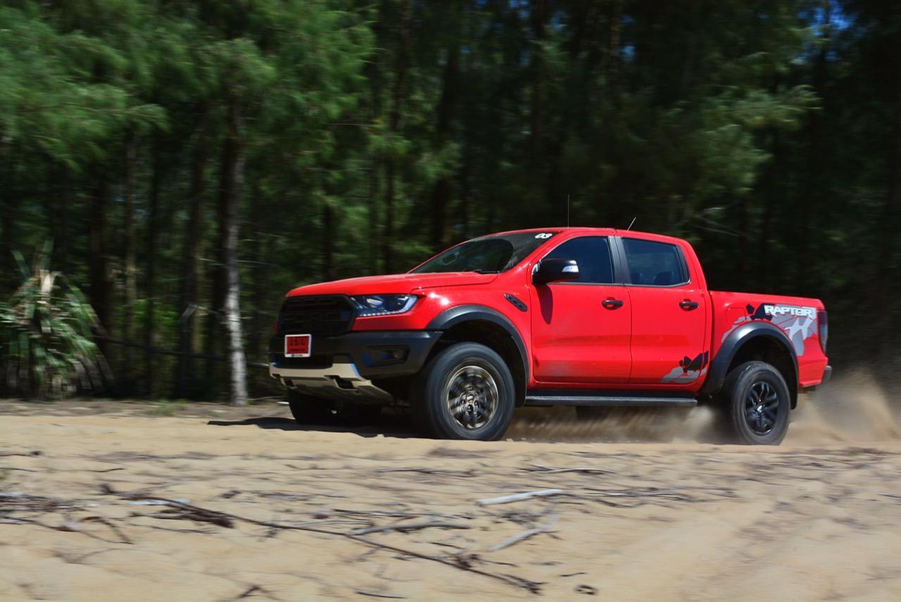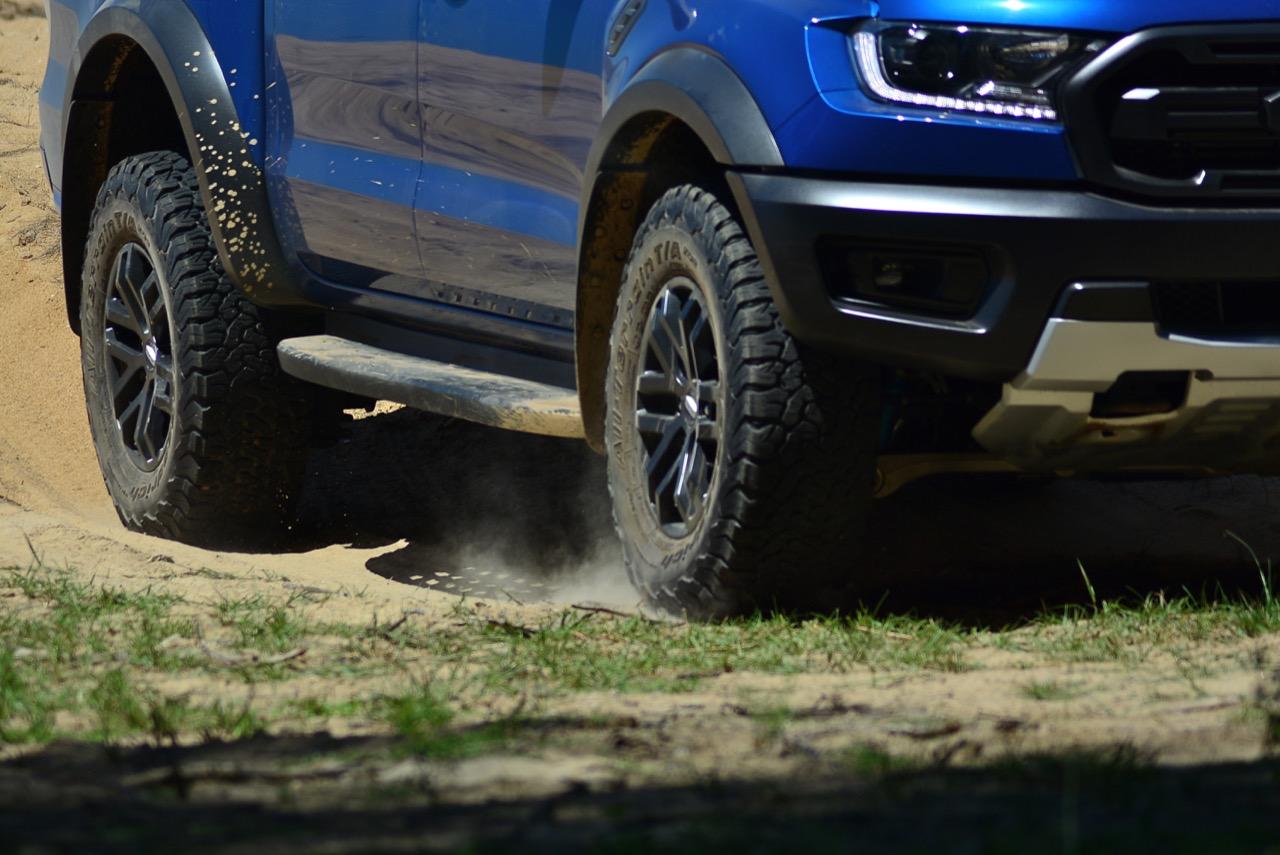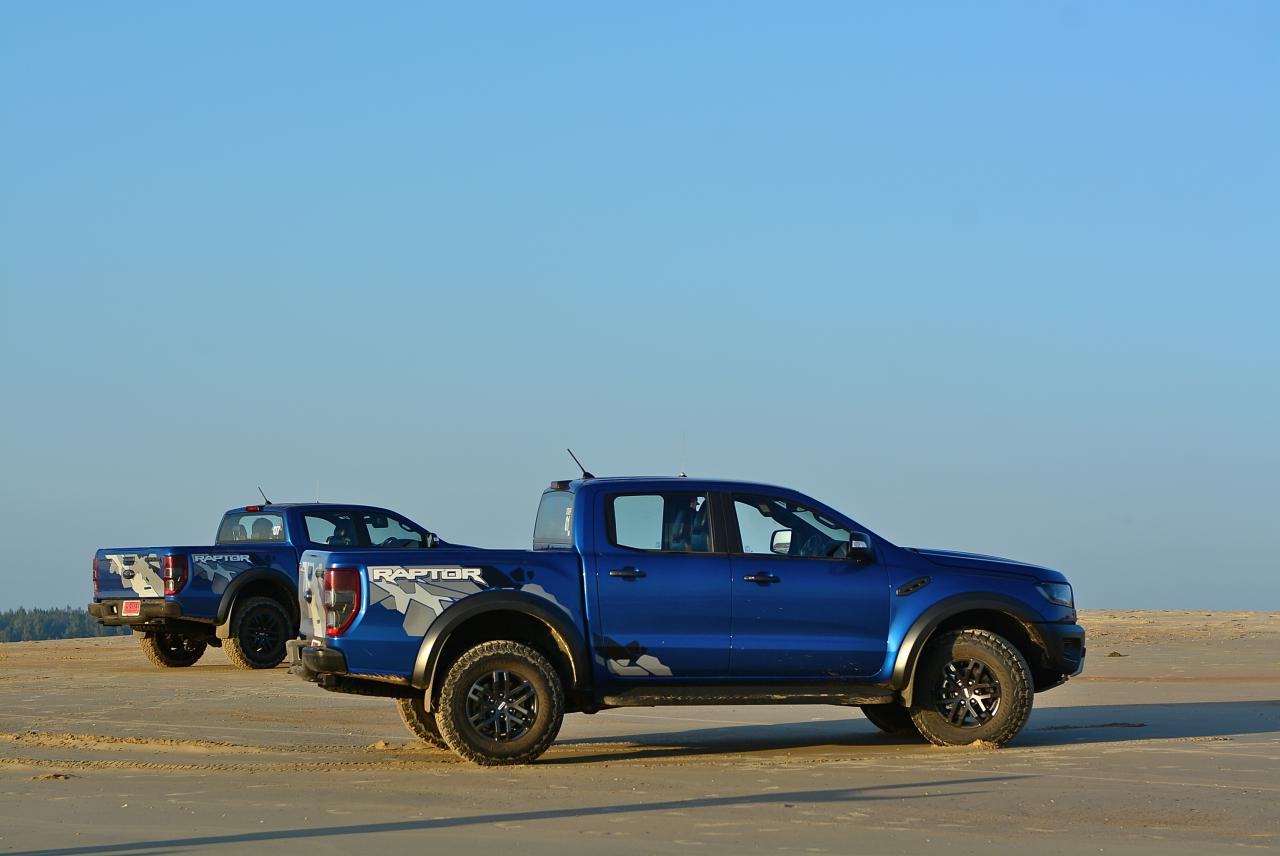 เรื่องการลุยแหลกนั้นหายห่วง ด้วยความที่มีโหมดขับเคลื่อนเยอะมากถึง 6 โหมด คุณสามารถวางตำแหน่งที่ถูกต้องของรถด้วยความง่ายดายและเอาตัวรอดในเส้นทางที่ยากลำบาก ไม่ว่าจะขับบนทางลูกรัง ทราย โคลน หินหรือหญ้า เมื่อเทียบกับกระบะทั่วไปที่มีระบบขับเคลื่อน 4 ล้อก็สามารถลุยได้เหมือนกัน แต่ไม่มีโหมดที่จะช่วยให้ฟันฝ่าเส้นทางที่เป็นทรายลึก ใน Raptor ทุกอย่างง่ายๆ แค่กดปุ่มเลือกใช้โหมดให้ตรงกับสภาพของเส้นทางแค่นั้นก็พอ Ranger Raptor มีทุกอย่างที่จะช่วยให้การขับลุยกลายเป็นเรื่องง่ายดาย แค่คนขับมีทักษะในการควบคุมทิศทางและการใช้คันเร่งก็สามารถลุยฝ่าอุปสรรคได้อย่างสบายๆ จุดเด่นที่ดีงามของ Ranger Raptor อีกจุดก็คือการประกอบที่แน่นหนา เมื่อขับลุยฝ่าร่องสวนหรือหล่มลึกๆ แล้วไต่ขึ้นมาในลักษณะเอียงกระเท่เร่ ไม่มีเสียงลั่นของตัวถังดังเข้ามาให้ได้ยินแม้แต่น้อย รวมถึงคอนโซลและแดชบอร์ดก็ยังเงียบไม่ปรากฏว่ามีเสียงดังออดๆ แอดๆ ให้รำคาญใจ เป็นอีกจุดที่ทำออกมาได้โดนอยู่เหมือนกัน