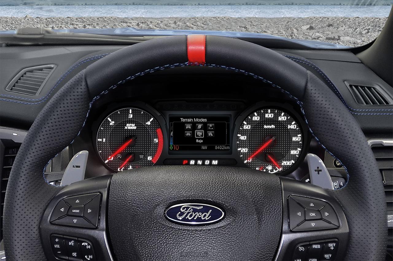 ระบบขับเคลื่อนสี่ล้อที่ต้องต่อเชื่อมกับโหมดการขับขี่ให้มีความหลากหลาย อิเล็กทรอนิกส์ที่ควบคุมการทำงานของเครื่องยนต์และชุดส่งกำลัง ทำงานคู่ขนานกับโหมดการขับเคลื่อนระบบ Terrain Management System (TMS) สำหรับโหมดการขับของ Ranger Raptor มีทั้งหมด 6 รูปแบบ ใช้เลือกโหมดจากปุ่มบนพวงมาลัย ซึ่งแต่ละโหมดได้รับการทดสอบและปรับแต่งเพื่อให้เทคโนโลยีทั้งหมดทำงานประสานกัน ประกอบด้วย