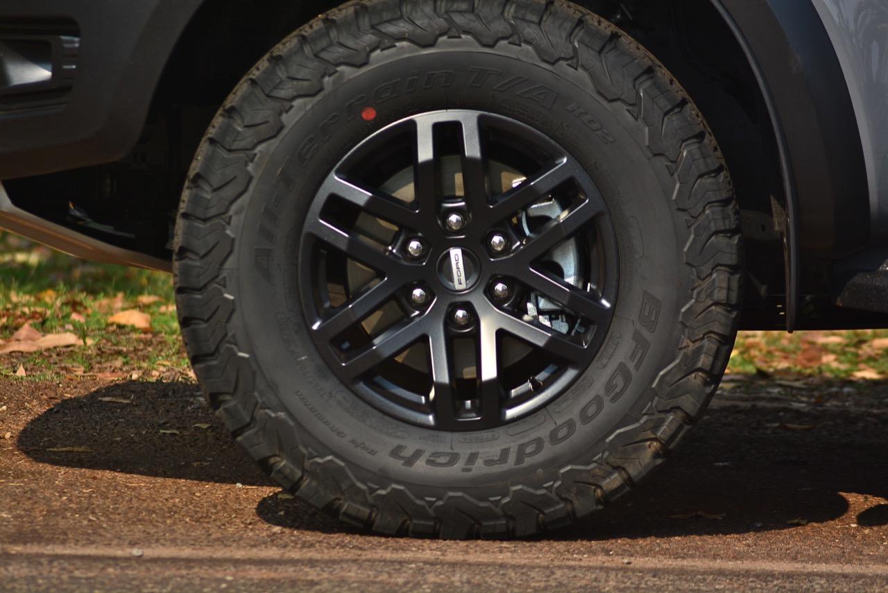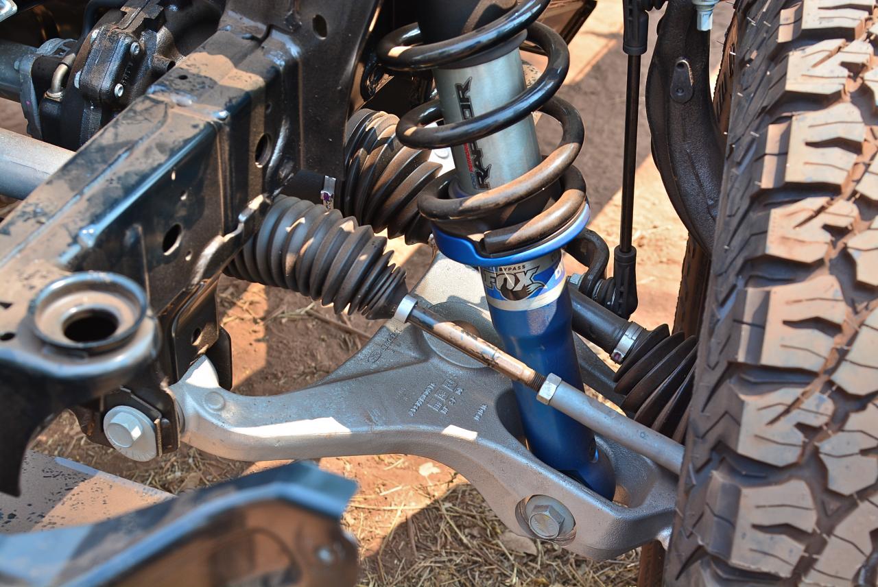 ช่วงล่างหลังที่เคยเป็นแหนบของ Ranger รุ่นมาตรฐานก็โดนกระชากทิ้ง แล้วแทนที่ด้วยปีกนกอลูมิเนียม ขึ้นรูปด้วยแรงดันสูงพร้อมระบบวัตต์ลิงค์แบบใหม่ โช้คอัพหมาจิ้งจอกบอกราคาให้ได้ยินแล้วถึงกับสะดุ้ง โช้คอัพผลิตขึ้นมาเป็นพิเศษโดย Fox Racing Shox ใช้ลูกสูบขนาด 46.6 มิลลิเมตร ทั้งคู่หน้าและหลัง ช่วงล่างถูกออกแบบมาให้มีระยะการให้ตัวของล้อสูงเพื่อความสามารถในการซับแรงกระแทกขณะขับออฟโรด ด้วยระบบบายพาสภายใน (Internal Bypass technology) ไม่ใช่โช้คอัพรถกระบะปกติอย่างแน่นอนที่สุด ชุดโช้คอัพประสิทธิภาพสูงของ Ranger Raptor ใส่ของแพงมาจากอเมริกา หมดห่วงเรื่องความหนึบรวมถึงอาการโคลงตัว ช่วงล่างหน้าก็เช่นกัน ทั้งปีกนกอลูมิเนียม โช้คหมาจิ้งจอก สปริงแต่ง ทั้งหน้าทั้งหลังทั้งหมดทั้งปวงของช่วงล่างว่ากันเหนาะๆ 2 แสน เป็นระบบรองรับที่ตอบสนองได้ดีทั้งทางเรียบและทางออฟโรด