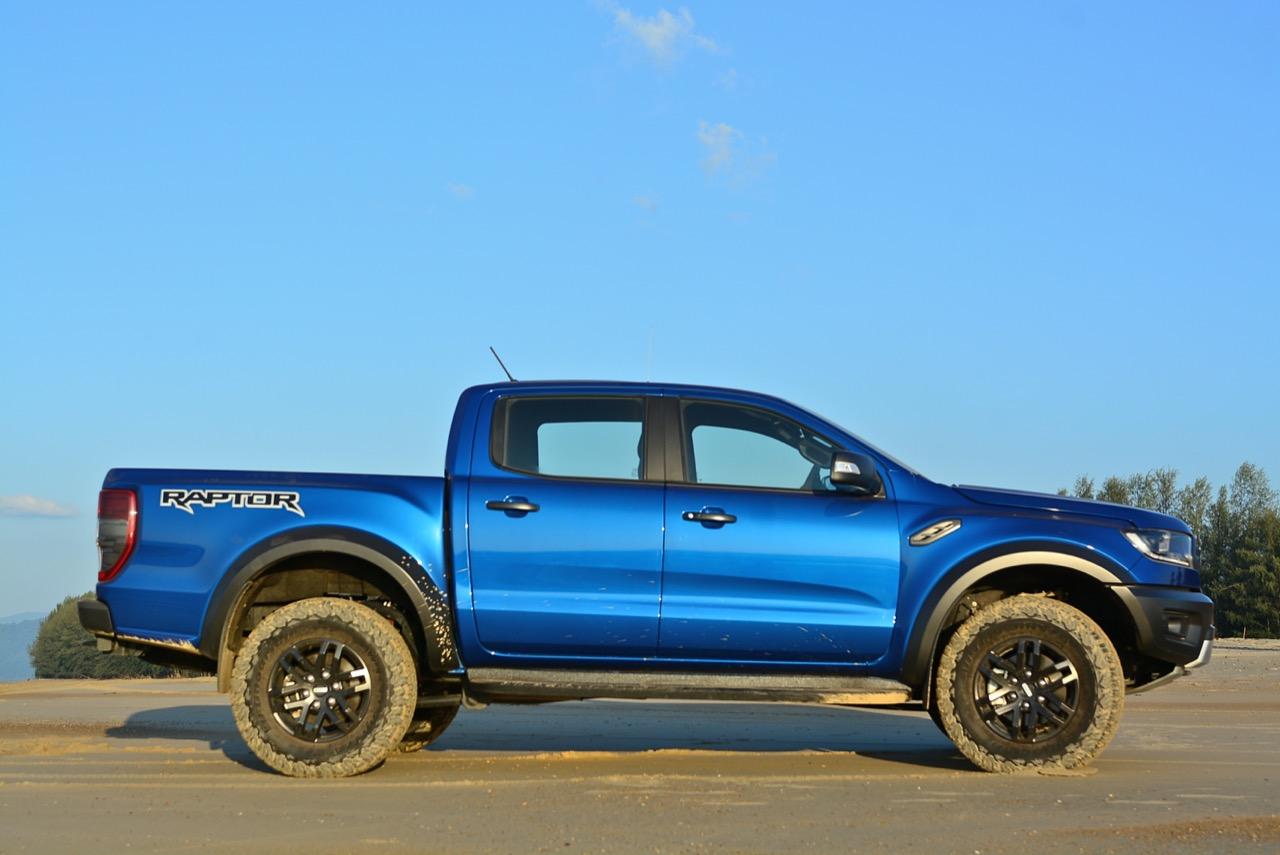 Ranger Raptor มีมิติตัวถังยาว 5,398 มิลลิเมตร กว้าง 2,038 มิลลิเมตร สูง 1,873 มิลลิเมตร ความกว้างช่วงล้อหน้า 1,710 มิลลิเมตร หลัง 1,710 มิลลิเมตร ความสูงจากพื้นถึงใต้ท้อง 283 มิลลิเมตร เห็นได้อย่างชัดเจนว่า ทุกแง่มุมของ Ranger Raptor ได้รับการออกแบบมาโดยมีสมรรถนะของเครื่องยนต์ ระบบเกียร์และระบบรองรับเป็นหัวใจหลัก ช่วงล้อที่ถูกขยายให้กว้างขึ้น บวกกับความสูงของตัวรถที่เพิ่มขึ้น แก้มข้างรถที่ขยายออกเพื่อให้มีความสอดคล้องกับแทรคของล้อที่กว้างกว่า Ranger รุ่นมาตรฐาน โช้คอัพของ FOX Racing Shox ปีกนกอลูมิเนียม รวมถึงล้อและยางที่ถูกออกแบบให้สามารถรองรับการขับขี่แบบออฟโรด รูปลักษณ์ที่ดุดันสื่อถึงสมรรถนะที่เหนือกว่ารถกระบะไซส์กลางทุกรุ่นที่มีขายในประเทศไทย Ranger Raptor ที่มีดีเอ็นเอของ Ford Performance ได้กลายมาเป็นรถออฟโรดสมรรถนะสูงที่ผลิตจากโรงงานในประเทศไทย