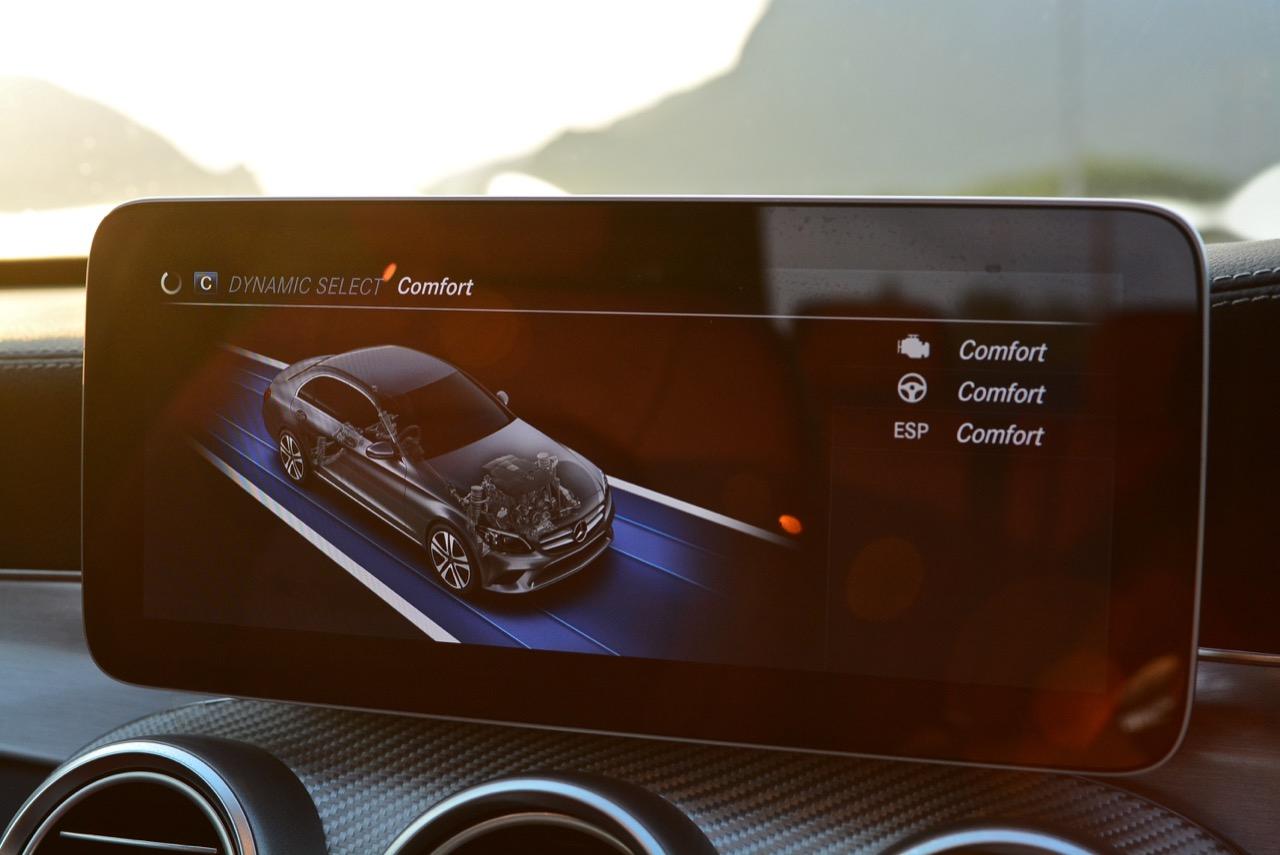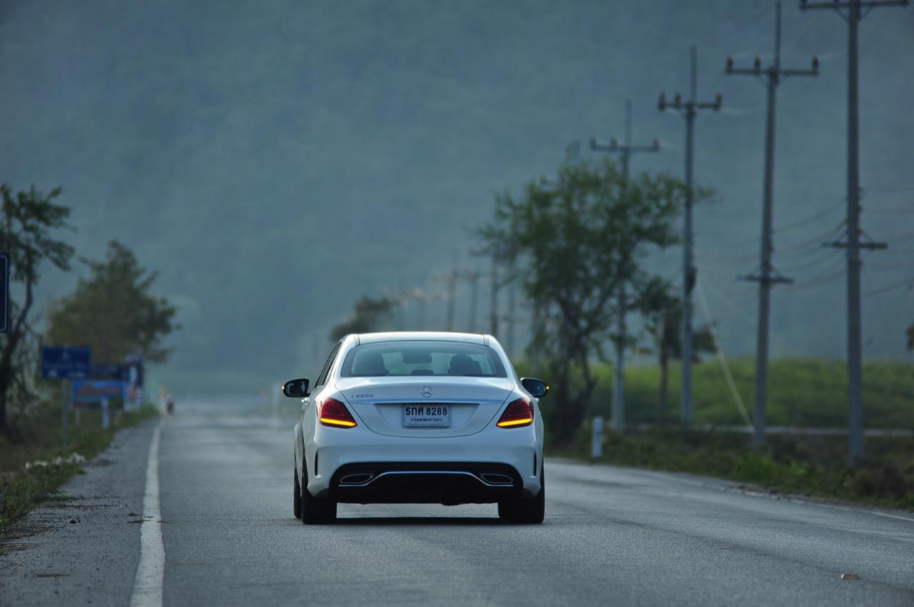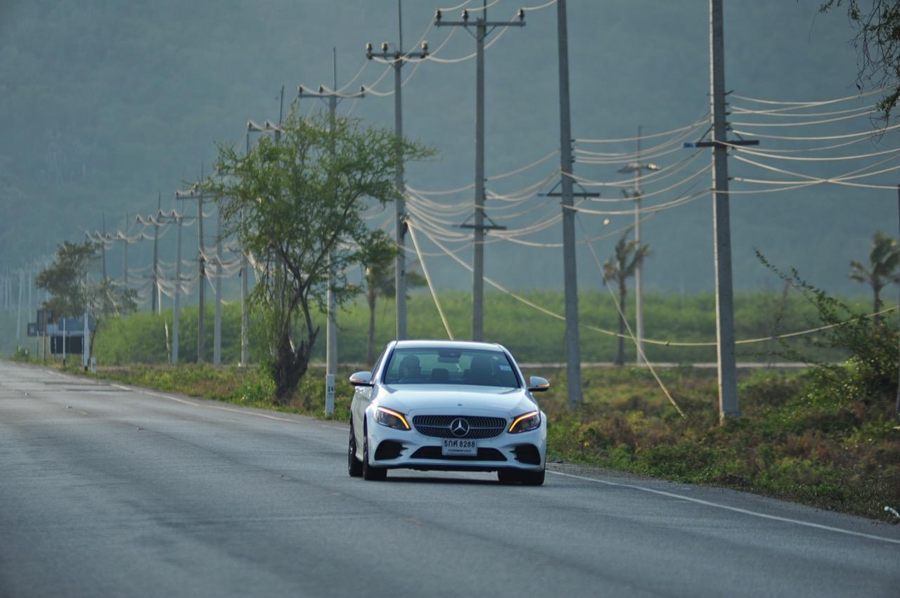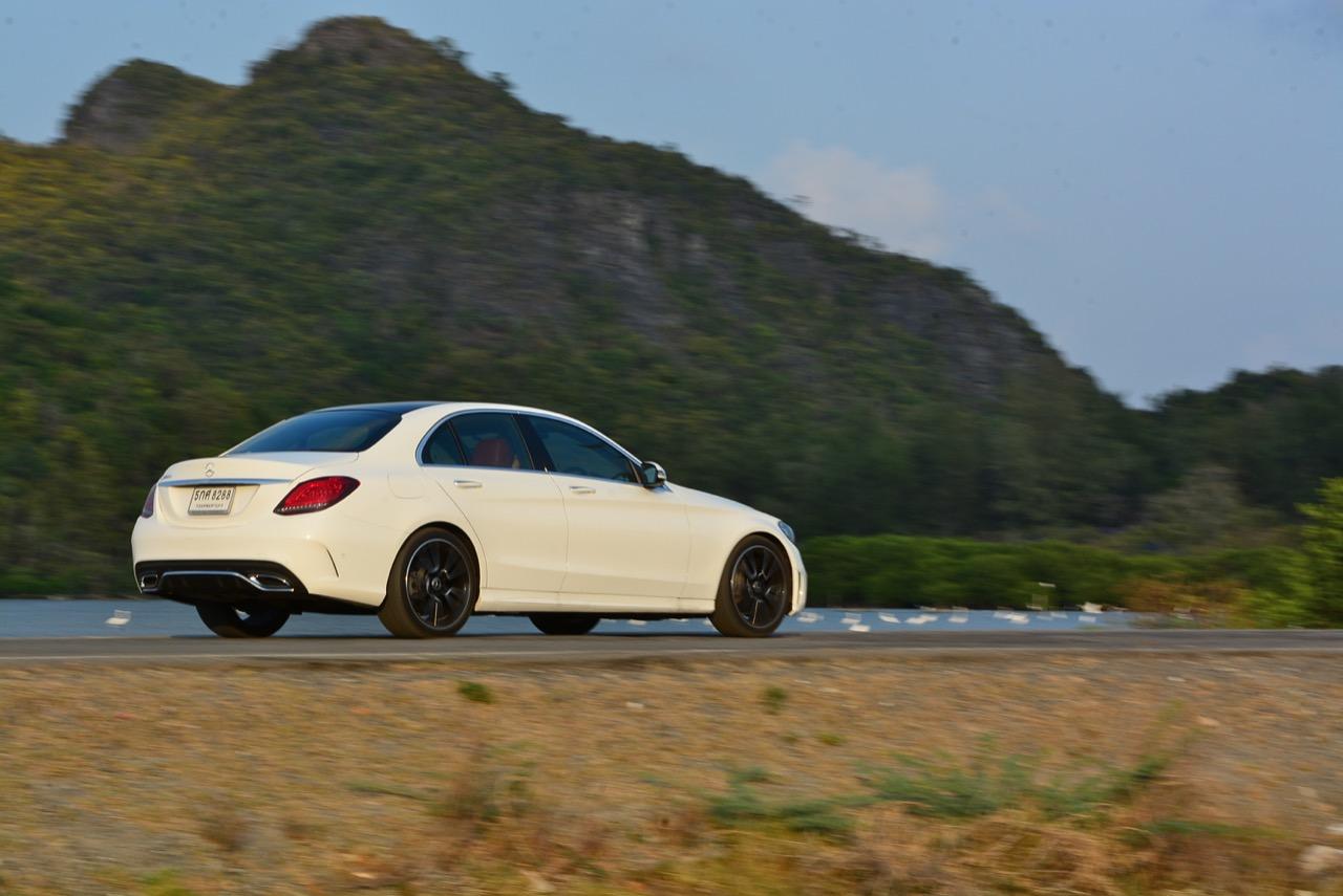 ทุกสิ่งทุกอย่างที่เป็นไดนามิกของ new C-Class มอบความสนุกให้คนขับเมื่อปรับโหมดการขับเคลื่อนให้ตอบสนองได้ดีขึ้น โหมด Sport สอดรับกับการใช้ความเร็ว เกียร์ 9G-Tronic ทำงานไหลลื่นและมักจะคาเกียร์ 4-5-6 เพื่อเรียกแรงบิดสำหรับการเร่งความเร็วเพื่อแซง ระบบรองรับที่ละเอียดอ่อนของมันทำให้การทรงตัวดีเยี่ยม การแยกชุดสตรัทออกจากส่วนอื่นทำให้ช่วงล่างลดแรงสั่นสะเทือนลงไปได้มาก ผลที่ได้รับก็คือความมั่นคงและตอบสนองได้ดี คุณสามารถใช้ความเร็วสูงได้อย่างต่อเนื่องโดยที่รถไม่สร้างความเครียดในการควบคุมแต่อย่างใดทั้งสิ้น พวงมาลัยไฟฟ้าอัตราทดแปรผันให้สัมผัสที่เป็นธรรมชาติเวลาหักเลี้ยว อัตราทดของมันก็ว่องไวพอที่จะตอบโต้กับการขยับทิศทางเมื่อขับบนถนนที่คดเคี้ยว ล้อAMG ลายใหม่ ขอบ 19 นิ้วสวยงามและเกาะถนนได้ดีจากยาง Continental Conti Sportcontact ซึ่งเป็นยางรันแฟลต ยางหลังเกาะมากจนความพยายามที่จะทำให้รถท้ายปัดนั้นยากกว่าที่คิด