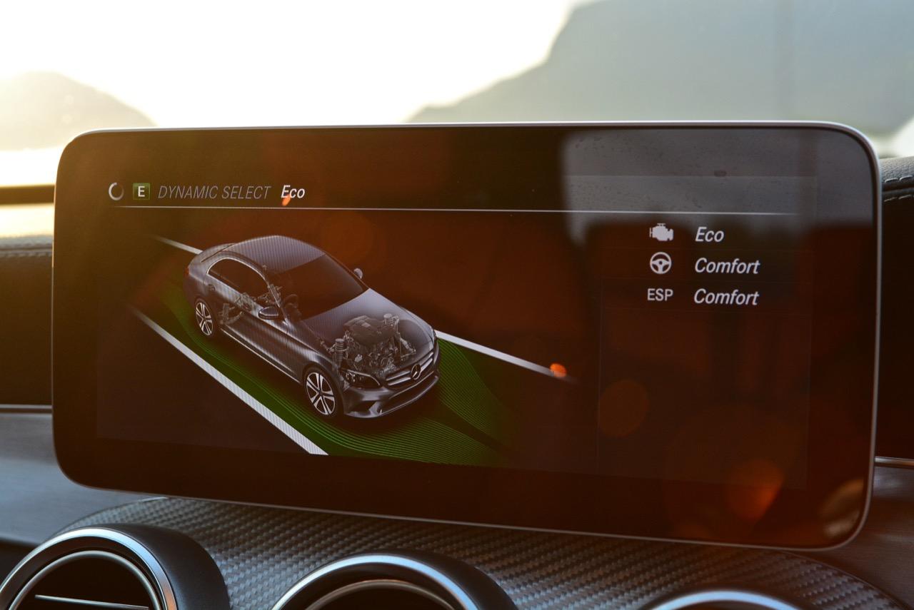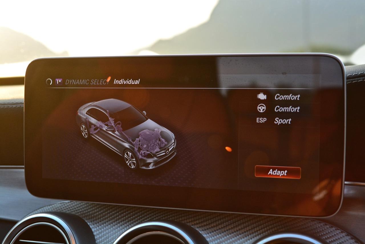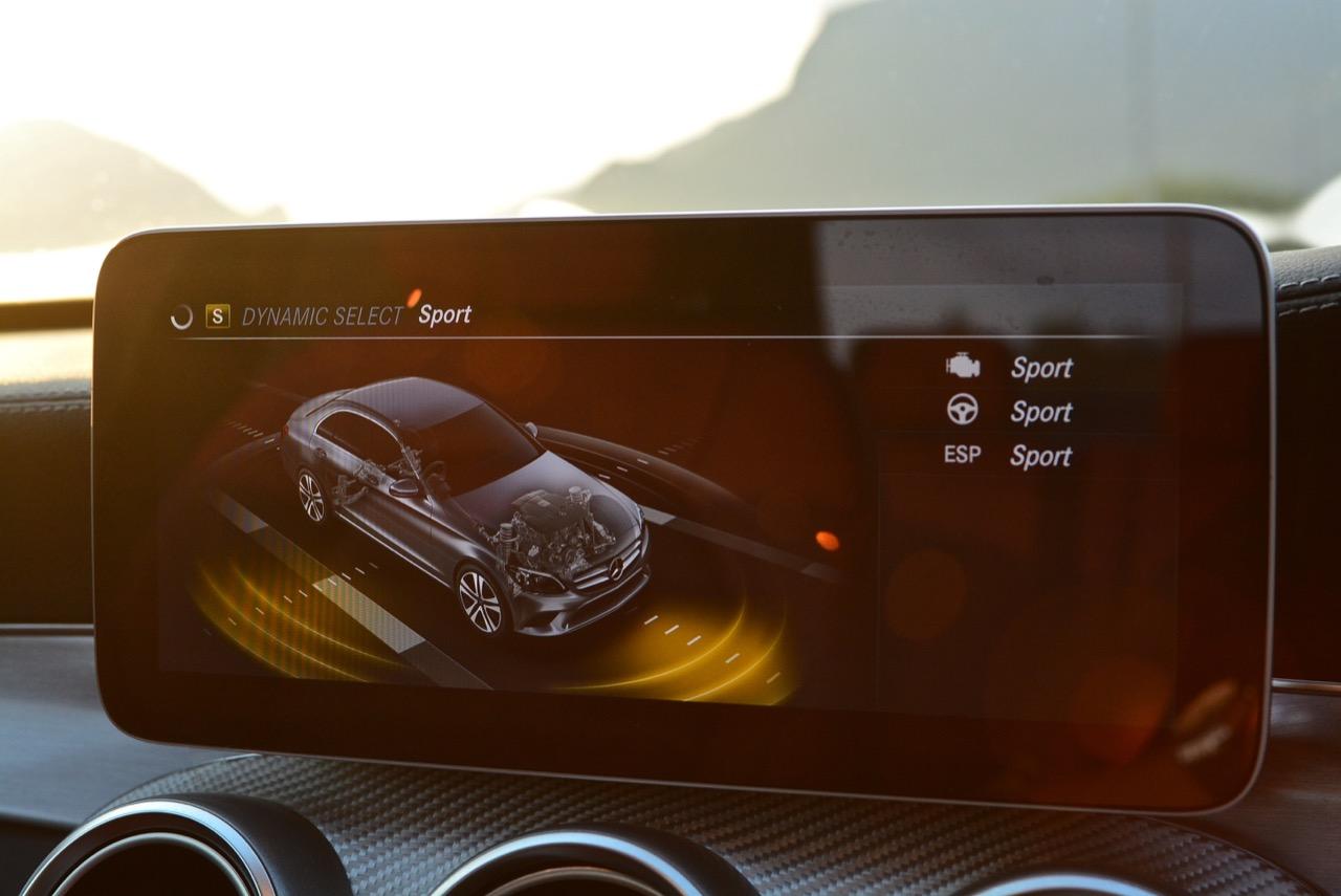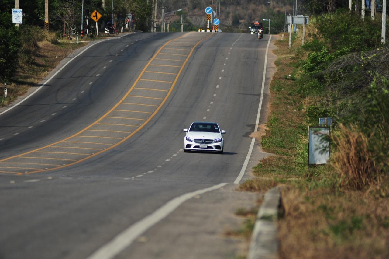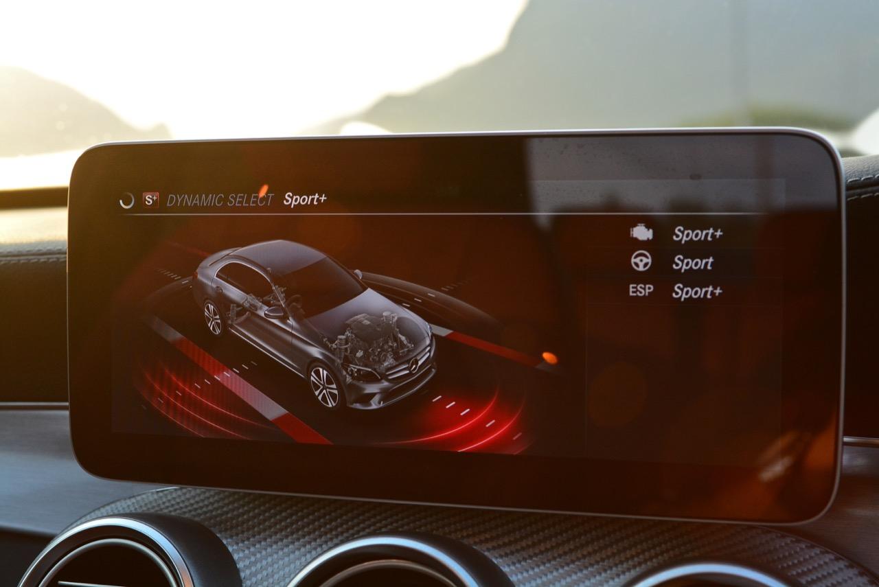 ทุกสิ่งทุกอย่างที่เป็นไดนามิกของ new C-Class มอบความสนุกให้คนขับเมื่อปรับโหมดการขับเคลื่อนให้ตอบสนองได้ดีขึ้น โหมด Sport สอดรับกับการใช้ความเร็ว เกียร์ 9G-Tronic ทำงานไหลลื่นและมักจะคาเกียร์ 4-5-6 เพื่อเรียกแรงบิดสำหรับการเร่งความเร็วเพื่อแซง ระบบรองรับที่ละเอียดอ่อนของมันทำให้การทรงตัวดีเยี่ยม การแยกชุดสตรัทออกจากส่วนอื่นทำให้ช่วงล่างลดแรงสั่นสะเทือนลงไปได้มาก ผลที่ได้รับก็คือความมั่นคงและตอบสนองได้ดี คุณสามารถใช้ความเร็วสูงได้อย่างต่อเนื่องโดยที่รถไม่สร้างความเครียดในการควบคุมแต่อย่างใดทั้งสิ้น พวงมาลัยไฟฟ้าอัตราทดแปรผันให้สัมผัสที่เป็นธรรมชาติเวลาหักเลี้ยว อัตราทดของมันก็ว่องไวพอที่จะตอบโต้กับการขยับทิศทางเมื่อขับบนถนนที่คดเคี้ยว ล้อAMG ลายใหม่ ขอบ 19 นิ้วสวยงามและเกาะถนนได้ดีจากยาง Continental Conti Sportcontact ซึ่งเป็นยางรันแฟลต ยางหลังเกาะมากจนความพยายามที่จะทำให้รถท้ายปัดนั้นยากกว่าที่คิด