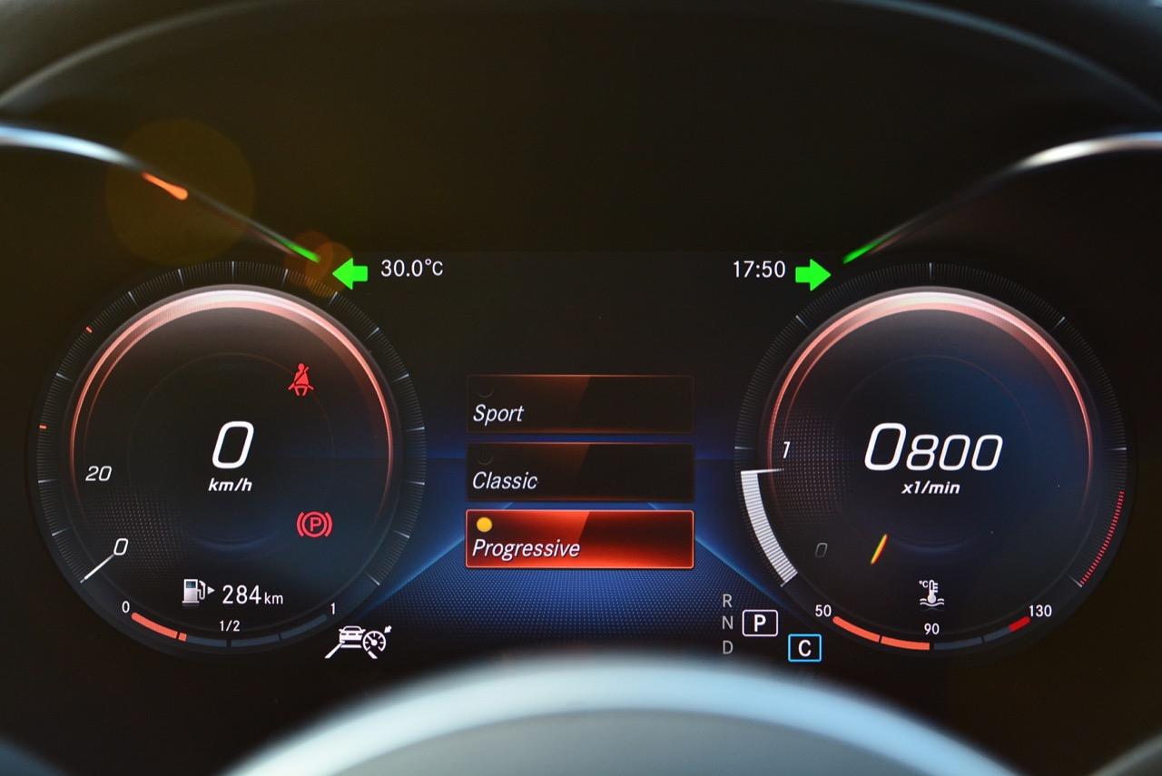 หน้าปัดมาตรวัดแบบสปอร์ตของ C-Class Minorchange ใช้มาตรวัดจอภาพใหม่ล่าสุด TFT thin film transistor ล้อมกรอบด้วยพลาสติกสีเงินยวง มาตรวัดแบบใหม่ที่ทำงานคล้ายจอภาพคอมพิวเตอร์มีทั้งวัดรอบเครื่องยนต์และวัดความเร็ว ปรับเปลี่ยนรูปแบบของมาตรวัดได้ 3 แบบ (Sport / Classic / Progressive) สามารถนำระบบนำทางด้วยดาวเทียมขึ้นมาแสดงร่วมกับมาตรวัดได้ตามต้องการ ส่วนบริเวณกึ่งกลางของมาตรวัดแสดงผลในระบบ Multi Information Display มีเมนูที่สามารถใช้งานขณะขับขี่ เช่น โหมดของการขับเคลื่อน อุณหภูมิภายนอก ตำแหน่งเกียร์ อัตราสิ้นเปลืองเชื้อเพลิง เชื้อเพลิงในถังต่อระยะทางที่สามารถวิ่งไปถึง หรือแสดงผลระบบนำทางด้วยดาวเทียม รวมถึงระบบความปลอดภัยต่างๆ ที่เชื่อมโยงกับโหมดของการขับเคลื่อน ทริปมิเตอร์คำนวณระยะทางแบบ A/B