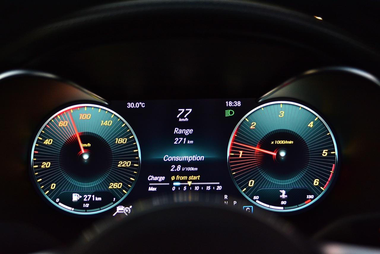 จุดเด่นของ C220d AMG Dynamic รุ่นเครื่องยนต์ดีเซลเทอร์โบก็คือแรงบิดและอัตราสิ้นเปลืองเชื้อเพลิง กำลัง 143 กิโลวัตต์ หรือ 194 แรงม้าดูจะธรรมดาเกินไป แต่ตัวเลขแรงบิด 400 นิวตัน-เมตรจากเครื่องยนต์ OM654 ทำให้ C220d เร่งจาก 0-100 ใน 7.0 วินาที ทั้งๆ ที่เป็นรถซีดานหน้าตาบ้านๆ บางช่วงบางตอนที่ถนนโล่ง ผมกดคันเร่งเจ้า C-Class เครื่องดีเซล แช่ยาวลากรอบไปจนถึงย่านความเร็ว 218 กิโลเมตรต่อชั่วโมง การขับเร็วขนาดนั้นก็เพื่อที่จะจับอาการของรถขณะใช้ความเร็วสูง ซึ่งออกมาในลักษณะที่ควรจะเป็น นั่นก็คือความนิ่งและความมั่นคงที่มันส่งมอบให้กับคุณจนกลายเป็นความมั่นใจ
