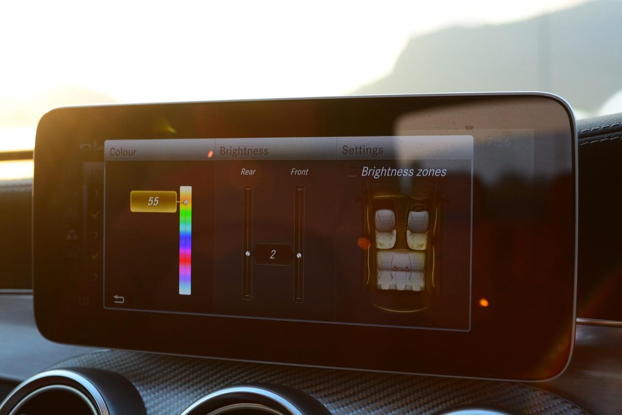 ไฟ welcome light ภายในห้องโดยสารใช้หลอด LED แบบเรืองแสงสลับโทน 64 สี เพื่อสร้างบรรยากาศที่ดีสำหรับการขับขี่ในตอนกลางคืน ไฟ LED จะทำการเรืองแสงในตำแหน่งแผงประตู กรอบคอนโซลกลาง เพื่อทำให้ห้องโดยสารของ New C-Class มีความน่าใช้งานมากยิ่งขึ้น โดยเฉพาะการขับในที่มืดมิด นอกจากจะมีความสวยงามแล้ว หลอดไฟภายในห้องโดยสารของ New C-Class ยังมีอายุการใช้งานที่คงทน จากการเลือกใช้หลอดเรืองแสงแบบ LED ซึ่งให้โทนสีที่แสดงออกถึงความรู้สึกอบอุ่นและนุ่มนวล