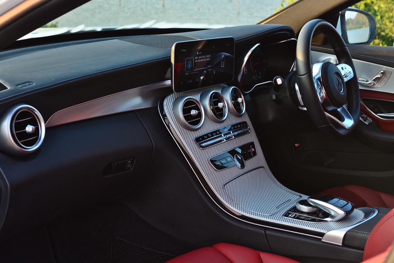 ทุกสิ่งทุกอย่างของ C-Class รุ่นปรับโฉมดูสดใหม่น่าใช้งาน นอกจากรูปลักษณ์ภายนอกที่คล้ายกับ S-Class ย่อส่วนแล้ว ภายในของรุ่นปรับโฉมก็ยังทำออกมาได้ดี ไฟหน้าแบบใหม่ล่าสุด new Multibeam LED สว่างกันถึงดวงจันทร์ ไฟหน้าพร้อมระบบอัตโนมัติของ new C-Class รุ่น C220d AMG Dynamic ถือว่าทำงานได้เร็วและให้กำลังในการส่องสว่างเมื่อขับตอนกลางคืนดีที่สุดในรถหรูไซล์เล็ก อาจดีกว่ารถคู่แข่งที่มีราคาแพงกว่าด้วยซ้ำ! ส่วนไฟท้าย LED ปรับมาใหม่เอี่ยม ภายในมีแดชบอร์ดของเดิมแต่ปรับเปลี่ยนชิ้นส่วนบางชิ้นที่ใช้ตกแต่ง เช่น แผงคอนโซลกลางทำจากวัสดุคล้ายๆ เส้นใยคาร์บอนไฟเบอร์ แต่ดันมีสีขาวสว่างกระจ่างตา พวงมาลัย AMG แบบ 3 ก้านรุ่นใหม่ที่ยึดจับได้อย่างถนัดมือพร้อมสวิตช์สั่งงาน และแป้นเปลี่ยนเกียร์ Paddle Shift เบาะหนังสีแดงที่นั่งสบายปรับด้วยไฟฟ้าพร้อมหน่วยความจำ หลังคากระจกแบบ Panoramic Roof ที่ลูกค้าส่วนใหญ่ของแบรนด์ตราดาวชื่นชอบ แต่ไม่เคยเปิดใช้งาน เนื่องจากสภาพอากาศในกรุงเทพฯ ที่ร้อนปานนรก จอภาพมาตรวัดที่ปรับเปลี่ยนได้ 3 รูปแบบส่งถ่ายความทันสมัยไม่น้อยหน้ารถคู่แข่ง ส่วนจอภาพมอนิเตอร์กลาง เปลี่ยนจากจอเดิมๆ ที่คล้าย iPAD มาเป็นจอภาพทรงยาวพร้อมระบบปฏิบัติการมัลติมีเดียแบบ MB Audio 20 หน้าจอขนาด 10.25 นิ้ว มาพร้อมกับแป้นควบคุม controller ที่มีหน้าตาเหมือนเดิม โดยภาพรวม Mercedes-Benz C220d AMG Dynamic รุ่นปรับโฉมดูดีขึ้นแทบจะทุกจุด โดยเฉพาะเสียงการทำงานของเครื่องยนต์ดีเซล OM654 นั้น เงียบราวกับเครื่องยนต์เบนซินกันเลยทีเดียว!