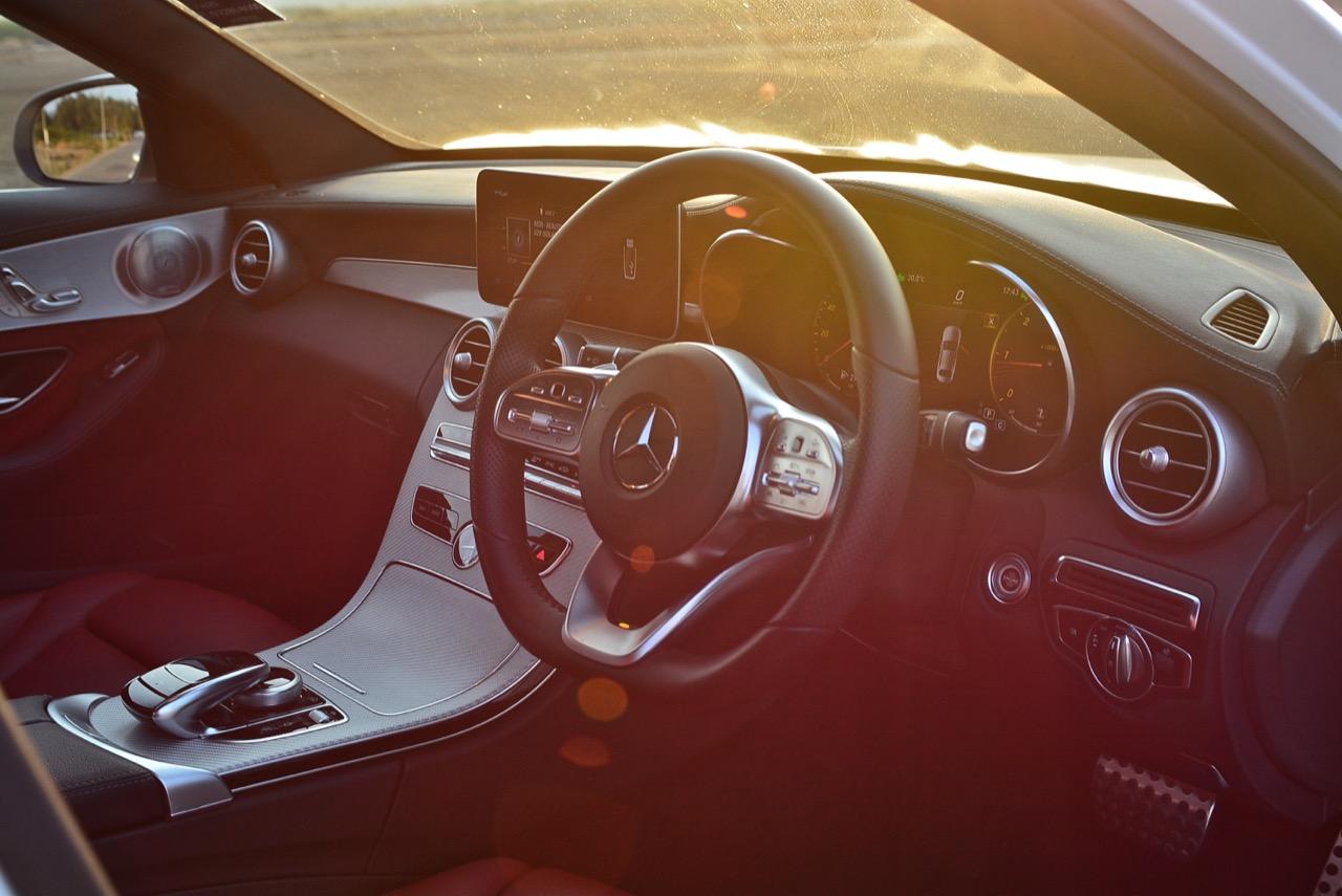 ภายในที่เน้นความเป็น Baby S-Class ของ C-Class Minorchange 2019 โดยเฉพาะรุ่นท็อปสุด C220d AMG Dynamic ใช้วัสดุชั้นดีบวกการจัดวางที่มอบความสะดวกให้กับคนขับและผู้โดยสารด้วย ตำแหน่งของอุปกรณ์ที่สามารถกดสวิตช์หรือหมุนแป้นควบคุมต่างๆ ได้ง่าย คอนโซลขึ้นรูปด้วยโฟมห่อหุ้มด้วยวัสดุหนังเทียมที่ทำออกมาได้หรูหราสมราคา คอนโซลแบบใหม่ผสมผสานกันระหว่างความเรียบง่ายและแนวโค้งที่กลมกลืนไปกับชิ้นส่วนต่างๆ ของห้องโดยสาร โทนสีของหนังที่ใช้ห่อหุ้มภายในตลอดจนอุปกรณ์ต่างๆ มีความแตกต่างกันออกไปตามระดับของรุ่นและราคาค่าตัว