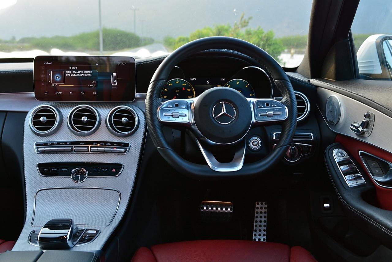 C-Class ทุกรุ่นมาพร้อมระบบปรับอากาศแบบ Dual Zone เบาะหุ้มหนัง Atico ระบบปรับน้ำฝนอัตโนมัติ อะแดปทีฟครูสคอนโทรล กล้องมองรอบทิศทาง ระบบตรวจจับความเมื่อยล้าของคนขับ ระบบ Infotainment รองรับการเชื่อมต่อกับโทรศัพท์ไร้สาย พร้อมระบบควบคุม comand controller แบบใหม่ ที่มีทั้งปุ่มหมุนและ Touchpad ทำงานควบรวมกับจอภาพมอนิเตอร์ใหม่ล่าสุดที่มีขนาดยาวขึ้นถึง 10.25 นิ้ว และเข้ากับรูปแบบของแดชบอร์ดมากกว่าเดิม เครื่องยนต์ส่งกำลังด้วยเกียร์อัตโนมัติ 9 สปีดที่เรียกกันว่า 9-G Tronic เป็นชุดส่งกำลังที่ออกแบบและผลิตขึ้นเองในโรงงานเกียร์ของ Mercedes Benz เป็นเกียร์แบบใหม่ที่เข้าประจำการใน New E-Class เมื่อ 2 ปีก่อน หลังจากนั้นก็มีการนำเอาเกียร์รุ่นนี้มาใส่ในรถเกือบจะทุกโมเดลของแบรนด์ตราดาว ซึ่งเมื่อได้ลองขับแล้วก็จะติดใจในการทำงานของเกียร์ชุดนี้