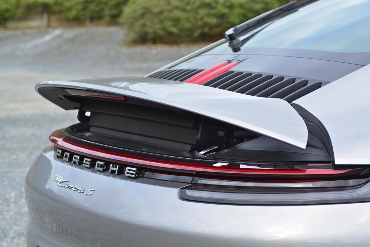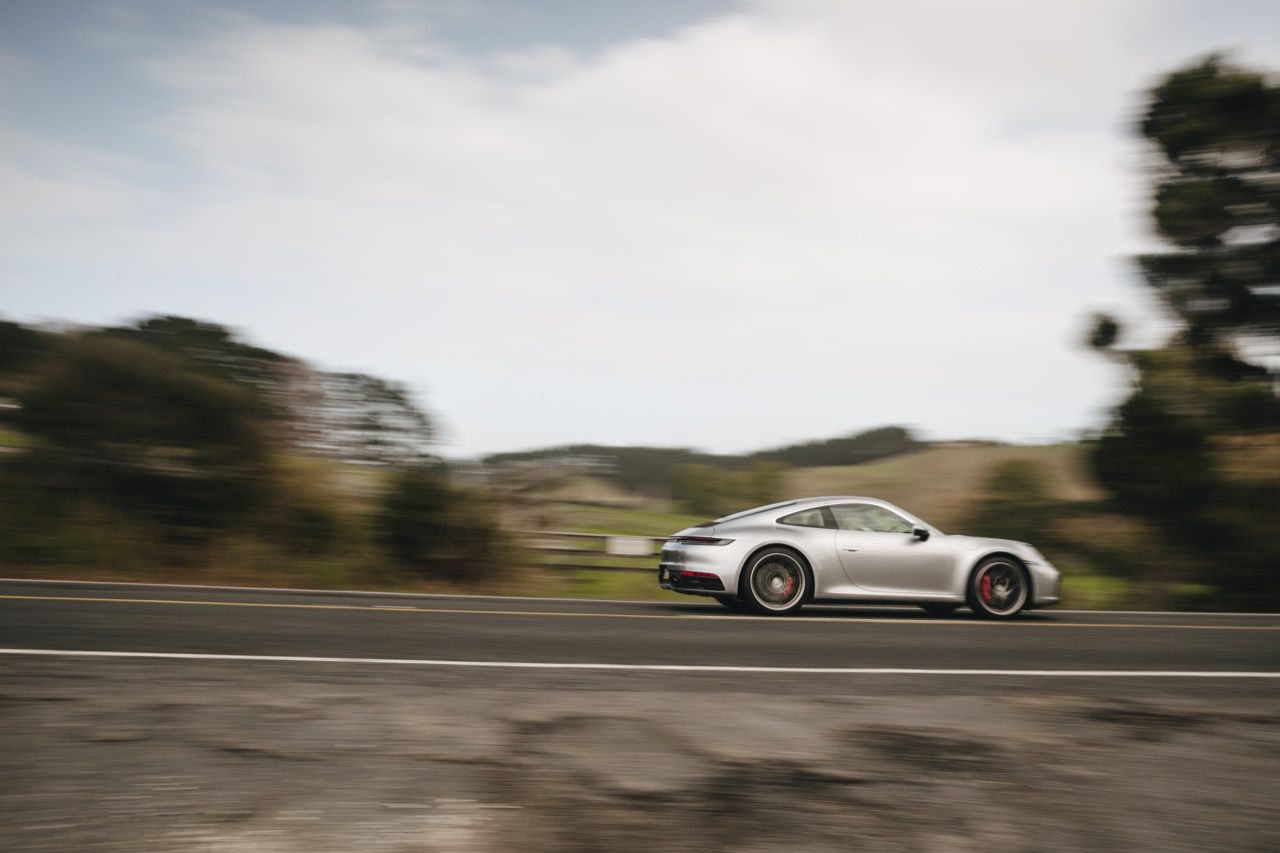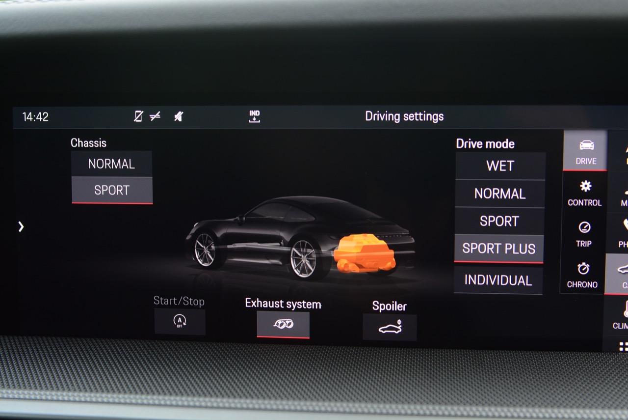 Porsche Dynamic Chassis Control ช่วยลดอาการโคลงตัวได้ดีขึ้นมาก เมื่อเลือกโหมด Sport + ทั้งระบบไม่ว่าจะเป็นแท่นเครื่องแบบพิเศษกับกันโคลงไฮดรอลิกจะทำงานหนักหน่วงขึ้นโดยรับรู้ได้จากความกระฉับกระเฉงของรถที่เพิ่มมากขึ้น ส่วนท้ายของ Carrera 4S จะแน่นและเกาะมากขึ้นแม้จะสบัดพวงมาลัยท้ายก็ยังไม่ยอมแถออกด้านข้าง ซึ่งเป็นเรื่องที่ดีมากสำหรับมือใหม่ที่ควบคุมจักรกลบ้าพลังแบบนี้บนเส้นทางสาธารณะ ทำให้ Porache 911 Carrera 4S มีอาการที่เป็นกลางคล้ายรถเครื่องวางกลางลำตัว ทั้งๆ ที่เป็นรถเครื่องวางท้ายซึ่งในอดีตนั้นรถทรงกบอย่าง 911 ยุคแรกเป็นรถที่ควบคุมอาการในโค้งได้ยากเย็นแสนเข็ญยี่ห้อหนึ่งของโลก Porsche 911/992 Carrera 4S ให้ความรู้สึกที่ลื่นไหลเป็นธรรมชาติและยึดเกาะกับถนนได้อย่างแนบสนิท โหมด Sport + มอบคันเร่งที่ไวราวกับ 911 GT3 พร้อมกับการตอบสนองของเกียร์ที่รวดเร็วเหลือเชื่อ มันทำงานได้อย่างน่าประทับใจและจะดีกว่านี้มากถ้าขับอยู่บนไฮเวย์ที่ไม่มีการจำกัดความเร็วอย่างออโต้บาร์นในเยอรมนี