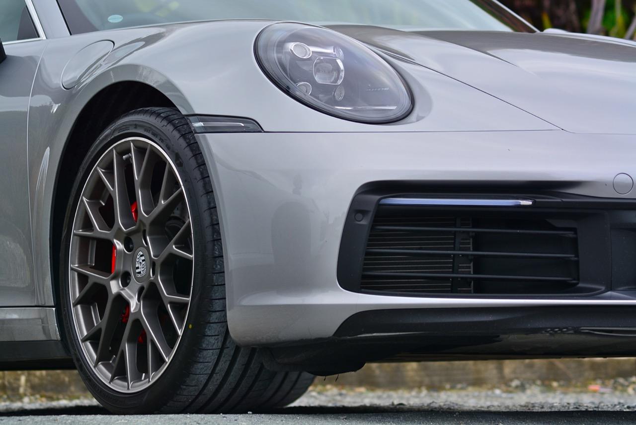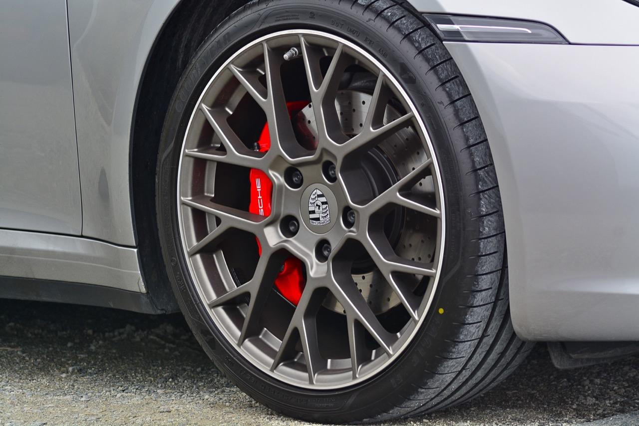 ล้อใหม่ขอบ 20 นิ้ว ห่อรัดด้วยยาง Gooyear eagle f1 ยางหน้าไซส์ 245/35R20 95Y ยางหลังซึ่งเป็นล้อขับเคลื่อนยัดยางไซส์ 305/30R21 104Y ล้อลายใหม่มีให้เลือกตามความชอบและเงินในกระเป๋าของคุณ รวมถึงชุดเบรก 6 พอตหน้าที่ให้มาจากโรงงาน หากไม่พอใจก็ยังมีออฟชั่นเสริมเป็นเบรกคาร์บอนเซรามิกที่ตัดปัญหาเรื่องเบรกเฟรดขณะที่อุณหภูมิของจานเบรกสูงเกินไป ล้อและยางขนาดใหญ่ไม่ได้สร้างแรงสั่นสะเทือนจนทำให้นั่งขับไม่สบายตัว ช่วงล่าง Adaptive ที่เซตมาอย่างลงตัวทำให้ 911 Carrera S มีคุณสมบัติในการซับแรงสะเทือนดีขึ้น มันให้คุณทั้งความนิ่มและความหนึบ โช้คอัพไฟฟ้ากับสปริงสอดรับกันทำหน้าที่ซับแรงสะเทือนทำให้นั่งได้อย่างสบายสามารถขับกันได้ทั้งวันแบบไม่กระเทือนซาง เป็นส่วนผสมที่ลงตัวของล้อ ยางและระบบรองรับที่ทำหน้าที่ได้อย่างเบ็ดเสร็จเด็ดขาด