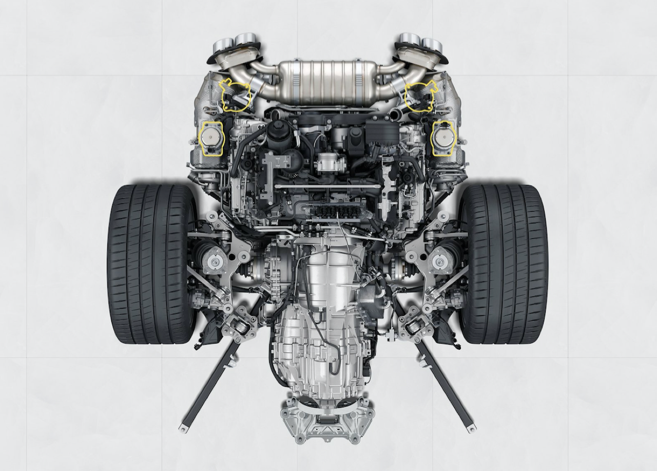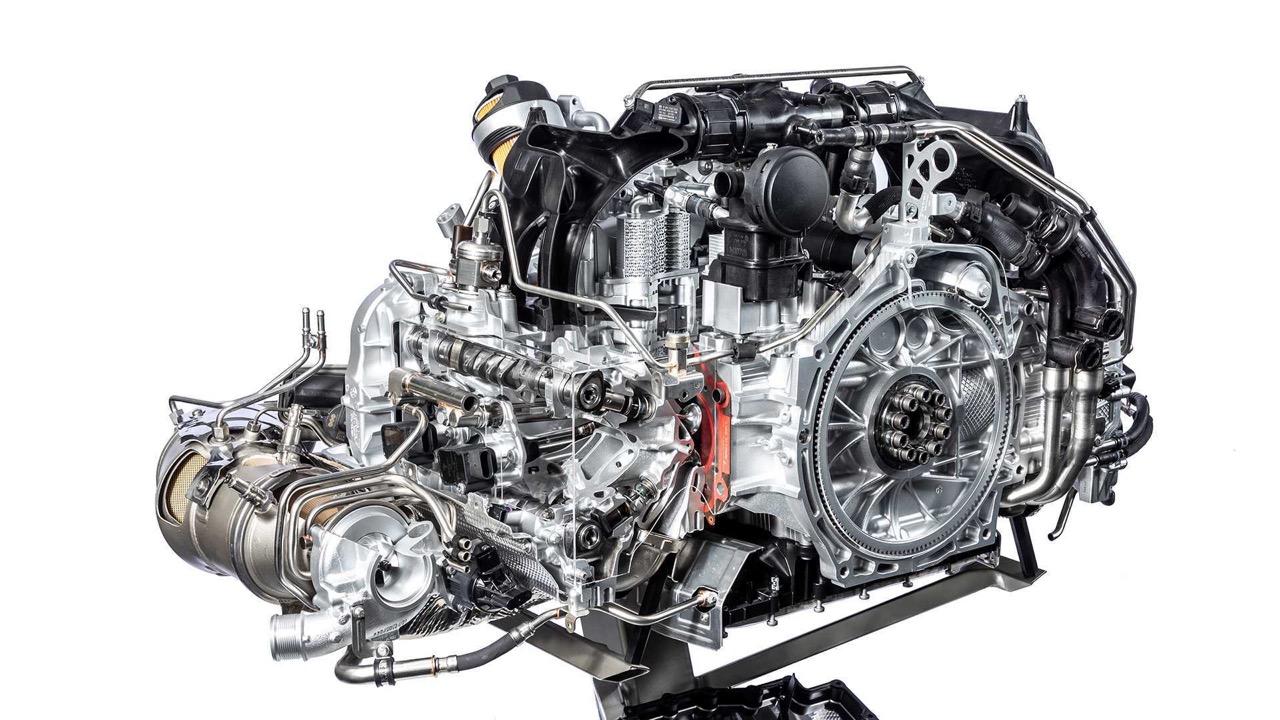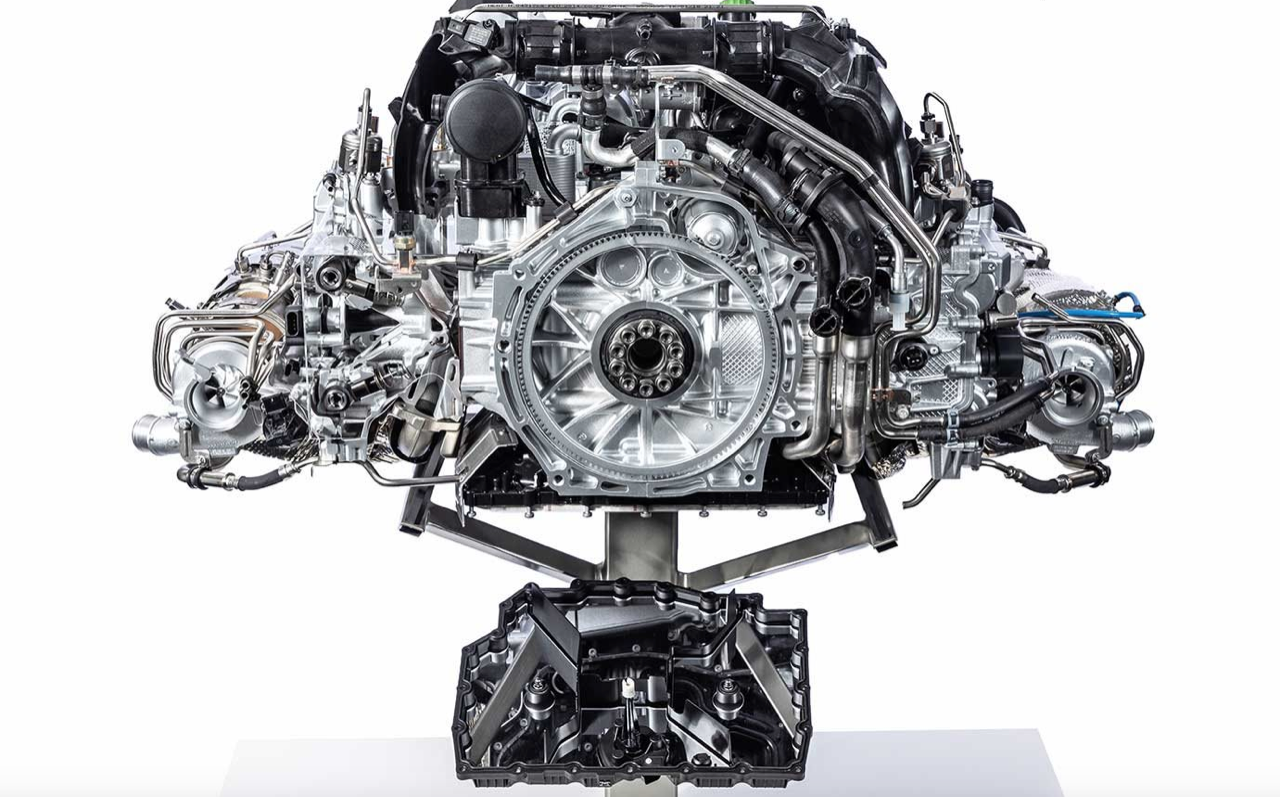 อัตราส่วนกำลังอัดของเครื่องยนต์เพิ่มขึ้นจาก 10.0:1 เป็น 10.2:1 มีการขยับขยายขนาดของเทอร์โบกังหันเทอร์ไบน์มีขนาด 48 มิลลิเมตร ใบพัดด้านอัดอากาศเข้ามีขนาด 55 มิลลิเมตร ชุดเทอร์โบคู่หรือ Bi-Turbo ติดตั้งเวสเก็ตไฟฟ้าที่มีความแม่นยำในการทำงานสูง รับหน้าที่ควบคุมแรงดันในระบบอัดอากาศ เครื่องยนต์ของ 911/992 ยังติดตั้งชุดกรองอากาศแบบใหม่ สามารถป้องกันฝุ่นผงขนาดเล็กที่มักพบในไอเสียของรถยนต์