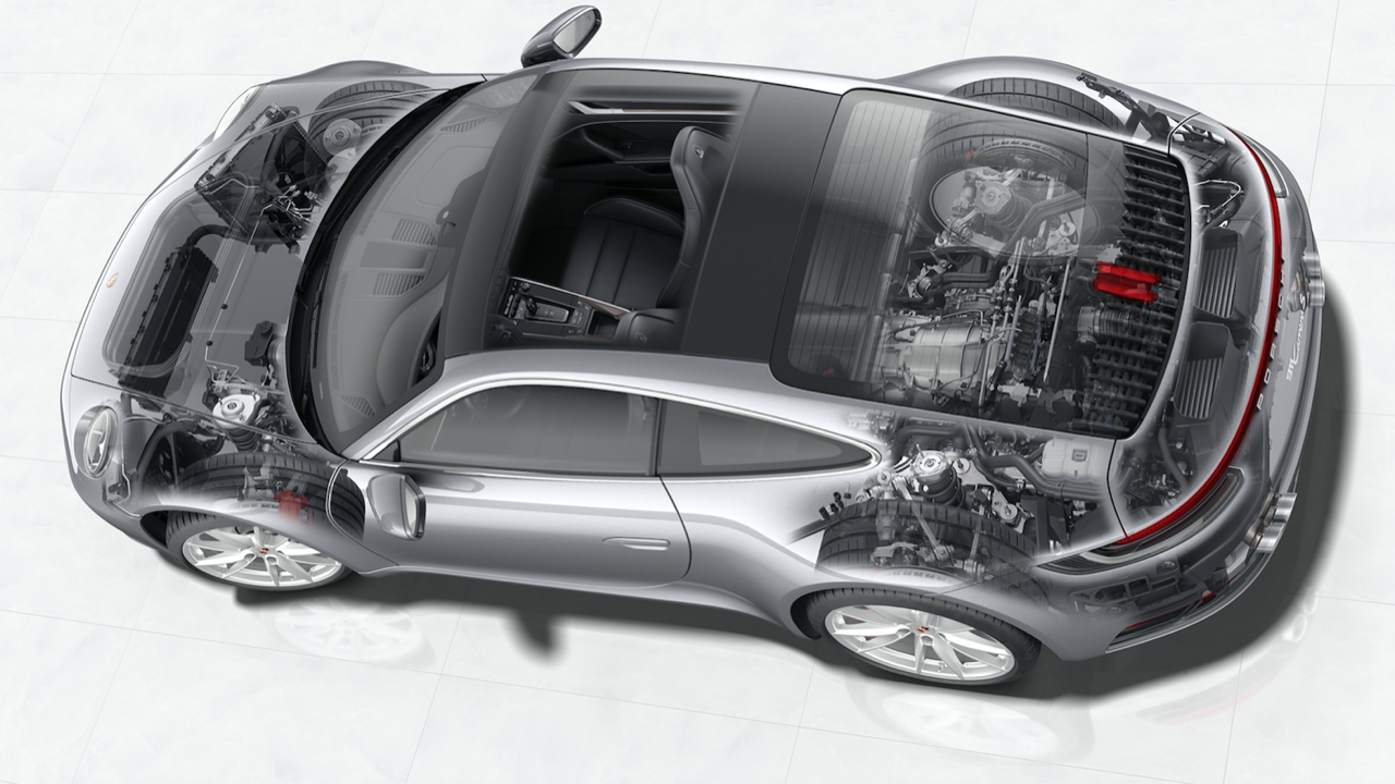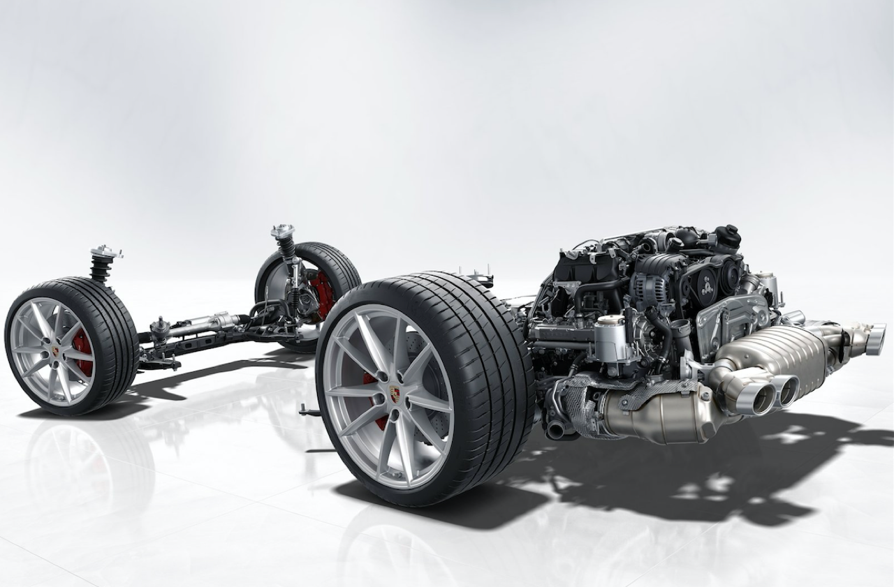 เครื่องยนต์สูบนอนแบบ 6 กระบอกสูบเทอร์โบคู่ของ Porsche 911/992 มีกำลัง 450 แรงม้า (+30 แรงม้า) ที่ 6,000 รอบต่อนาที แรงบิดสูงสุด 530 นิวตันเมตร หรือ 53 กิโลกรัม/เมตร ที่ 2,300-5,000 รอบต่อนาที ระบบส่งกำลังใช้เกียร์ใหม่ PDK 8 สปีดออกแบบอัตราทดใหม่ให้เข้ากับคาแรกเตอร์ของเครื่องยนต์ โดยปรับจูนอัตราทดเกียร์ 8 ให้ช่วยลดรอบเครื่องยนต์เพื่อประหยัดเชื้อเพลิง ตัวเลขสมรรถนะ เร่งจาก 0-100 กิโลเมตรต่อชั่วโมงใน 3.8 วินาที 0-200 กิโลเมตรต่อชั่วโมงใน 12.4 วินาที โดยมีความเร็วสูงสุด 308 กิโลเมตรต่อชั่วโมง ค่าการปล่อย Co2 205 กรัมต่อระยะทาง 1 กิโลเมตร