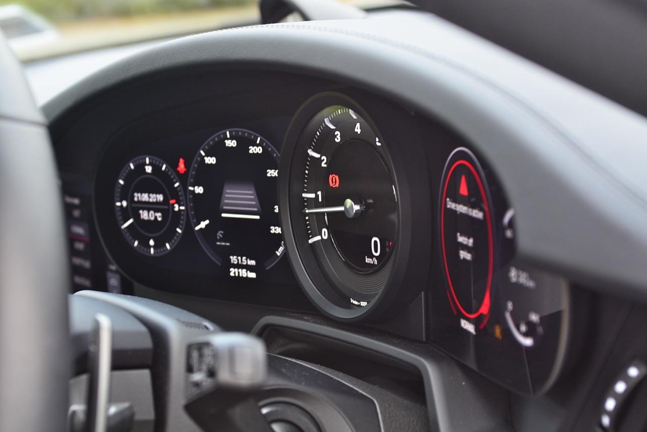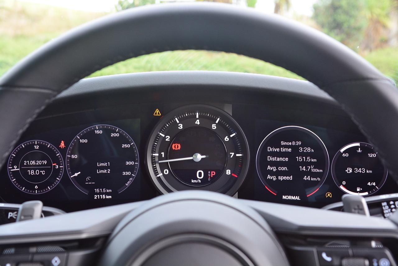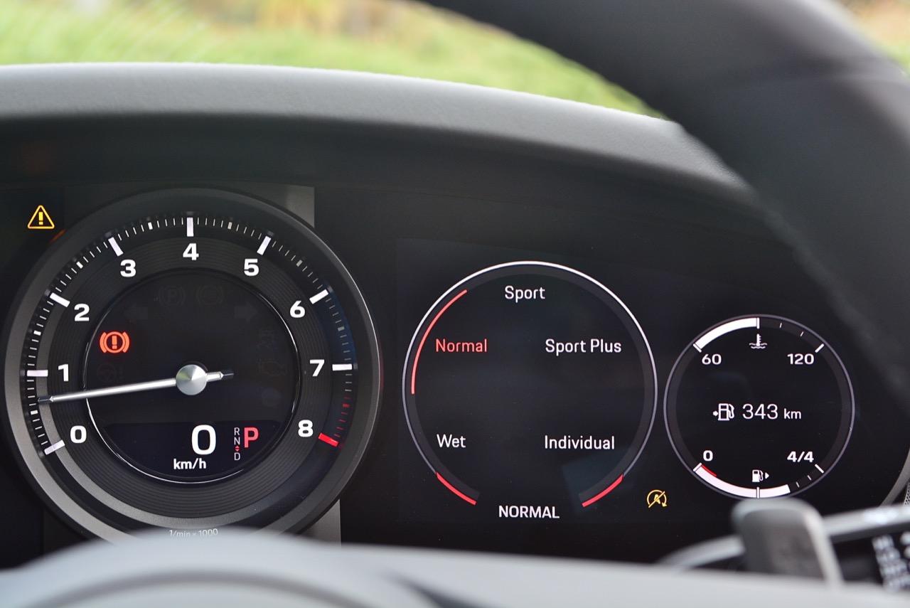 ออกจากตัวเมืองมาแค่ 65 กิโลเมตรก็มาถึงจุดแวะพักในปั๊มน้ำมันเล็กๆ พร้อมกับการเปลี่ยนรถทดสอบเป็น 911 Carrear 4S รุ่นขับเคลื่อน 4 ล้อ เป็นรถสปอร์ตที่มีประสิทธิภาพรอบด้าน หนึ่งในหลายจุดเด่นของมันก็คือ การขับเคลื่อนอย่างนุ่มนวลและยึดเกาะกับผิวถนนได้ราวกับตีนตุ๊กแก เป็นผลจากการจูนระบบขับเคลื่อนสี่ล้อใหม่หมดเพื่อทำให้สอดรับกับการใช้ความเร็วโดยเฉพาะโค้งมุมแคบขึ้น-ลงเนินเขา กล่อง ECU ที่ชาญฉลาดซึ่งรับหน้าที่ควบคุมการทำงานของเครื่องยนต์ เกียร์และระบบขับเคลื่อนสี่ล้อ มันจะจัดเกียร์ที่ลงตัวกับเส้นทางแบบแสนรู้ทำให้ควบคุมได้ง่ายแม้เส้นทางที่ขับจะอุดมไปด้วยโค้งสารพัดรูปแบบ โหมด Sport เปลี่ยนจากการตั้งรับมาเป็นรุกเต็มสูบ เกียร์ PDK 8 สปีดที่มีคลัตช์ 2 ชุดจะลากเกียร์ 4 ยาวนานเป็นพิเศษเพื่อเรียกแรงบิดระหว่างทะยานขึ้นสู่เนินเขา จังหวะถอนคันเร่งเกียร์ก็ยังแสนรู้มากพอที่จะปรับอัตราทดลงไปรอให้อีก 1 ตำแหน่ง การทำงานของตัวชดเชยรอบมีความว่องไวเมื่อผู้ขับยกเท้าออกจากคันเร่งตัวเบิ้ลรอบจะเข้ามาทำงานทันทีเพื่อคารอบที่มีแรงบิดที่เหมาะสมกับการสปีดทำความเร็วอีกครั้ง น่าประทับใจที่ผู้ผลิตอย่าง Porsche ทำให้เราได้สัมผัสกับด้านมืดของรถได้ง่ายขึ้นเมื่อปิดระบบควบคุมและรักษาเสถียรภาพของรถโดยติดตั้งปุ่มบิดเพื่อปรับโหมดได้อย่างรวดเร็ว ปุ่มปรับโหมดด้านล่างของ 911/992 คล้ายกับ 911/991 รุ่นที่แล้วแต่ทำงานได้เร็วกว่าเล็กน้อย โหมดทั้งหมดเริ่มจากการขับในเมืองไปจนถึงการซิ่งเต็มกำลังในสนามแข่ง ปุ่มปรับโหมดจะทำหน้าที่ควบคุมการทำงานของเครื่องยนต์ ชุดส่งกำลัง โช้คอัพ ช่องดักอากาศด้านหน้า สปอยเลอร์ไฟฟ้าด้านหลังและระบบท่อระบายไอเสีย ทางเลือกหลักๆ อยู่ที่ความต้องการของคนขับว่าจะเอาแบบสบายหรือสปอร์ต คุณสามารถเลือกในแต่ละโหมดย่อยแล้วนำมาผสมผสานตามความต้องการได้อย่างเหลือเชื่อผ่านโหมด Individual