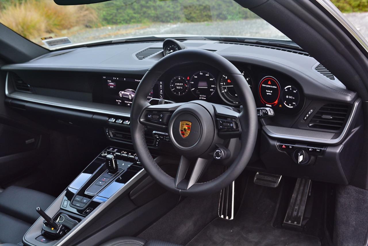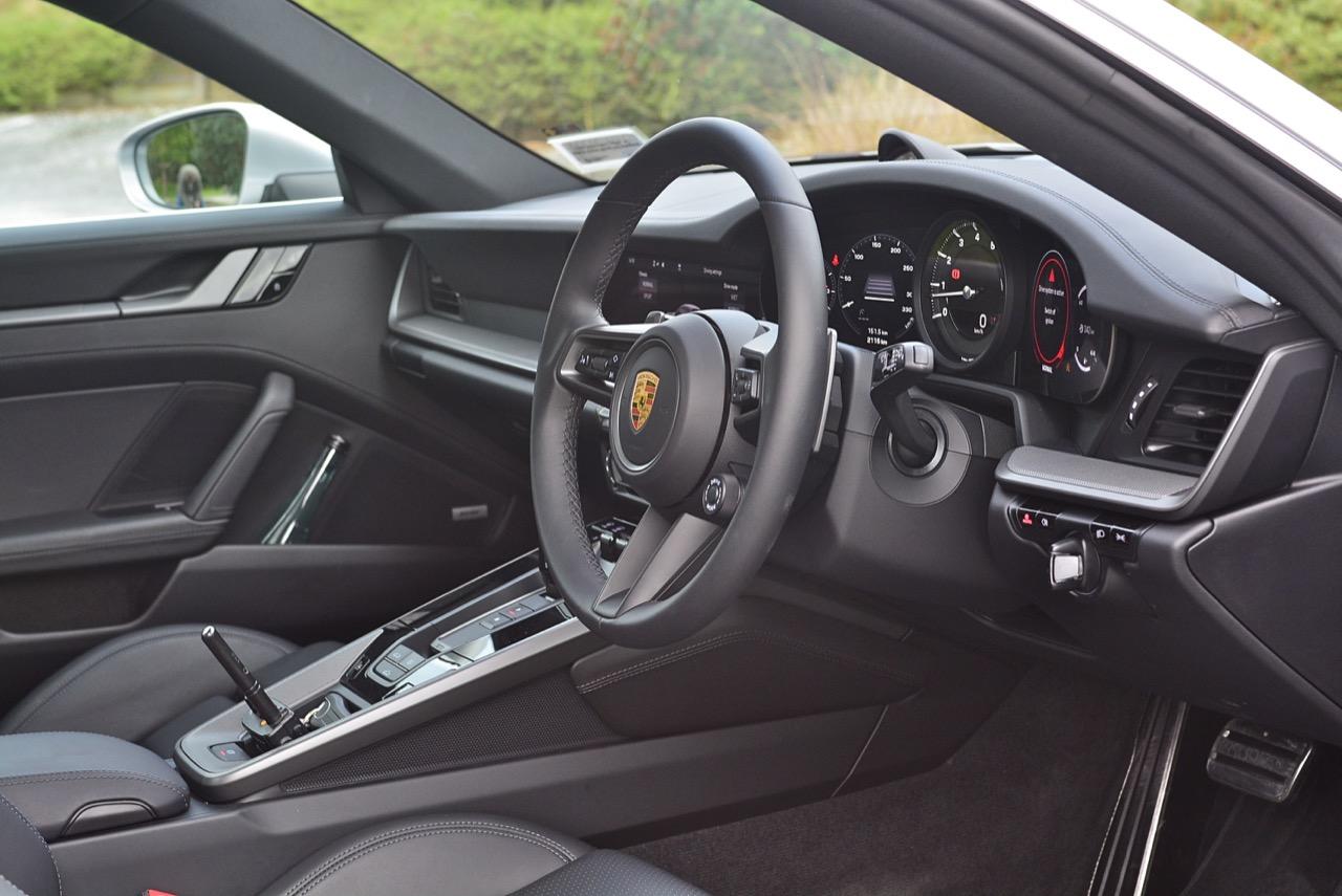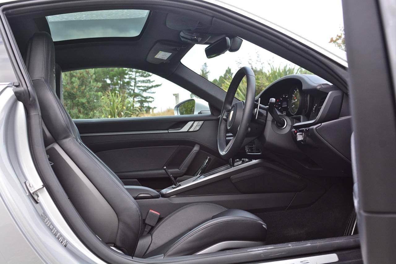 ห้องโดยสารของ Porsche 911 รุ่น Carrera S สวยงามคลาสสิกคล้ายการนำเอา Cockpit ย้อนยุคของ 911 รุ่นปี 1970 มาผสมผสานกับความไฮเทคของอุปกรณ์อำนวยความสะดวกแบบใหม่ล่าสุดใน 911/992 เบาะนั่งโคตรสบาย แม้คุณจะมีรูปร่างอ้วนท้วนสมบูรณ์เหมือนน้องแพนใน Headlight mag แต่การนั่งขับหรือนั่งโดยสารที่เบาะคู่หน้าจะไม่สร้างความยากลำบากอีกต่อไป เบาะรูปทรงสปอร์ตสวยงามปรับตั้งด้วยไฟฟ้า พนักพิงศีรษะอยู่ในตำแหน่งที่ถูกต้องไม่ดันกะบาลคนขับหรือคนนั่งมากจนเกิดอาการปวดต้นคอ เบาะหลังคงมีไว้ให้สำหรับหมาชิวาวาเหมือนเดิม ความคับแคบของเบาะหลังเหมาะกับการใช้วางกระเป๋าถือราคาแพงของคุณสุภาพสตรีหรือให้สุนัขตัวโปรดมานั่งมากกว่าจะทำออกมาเพื่อให้มนุษย์ใช้นั่งโดยสาร