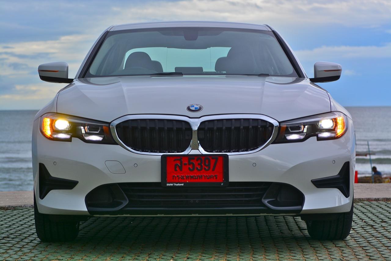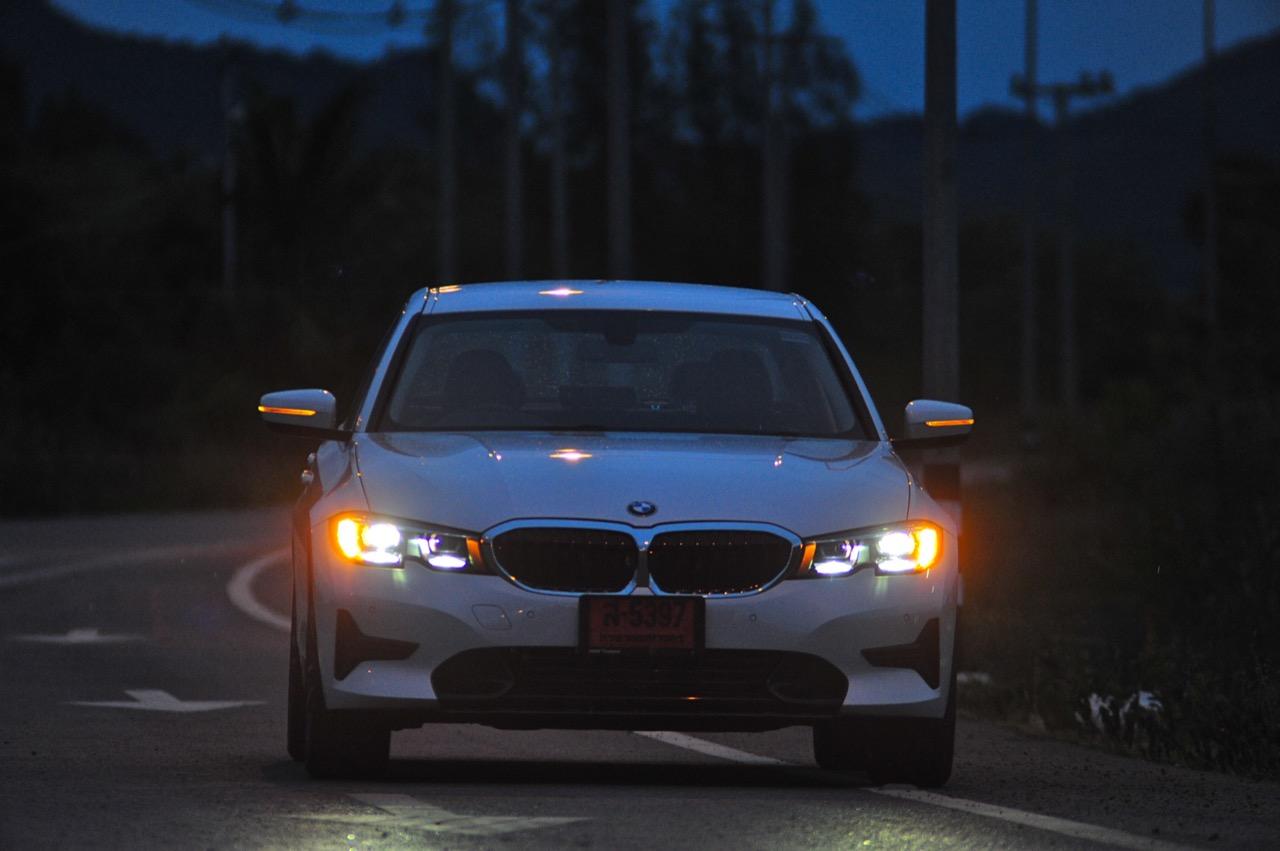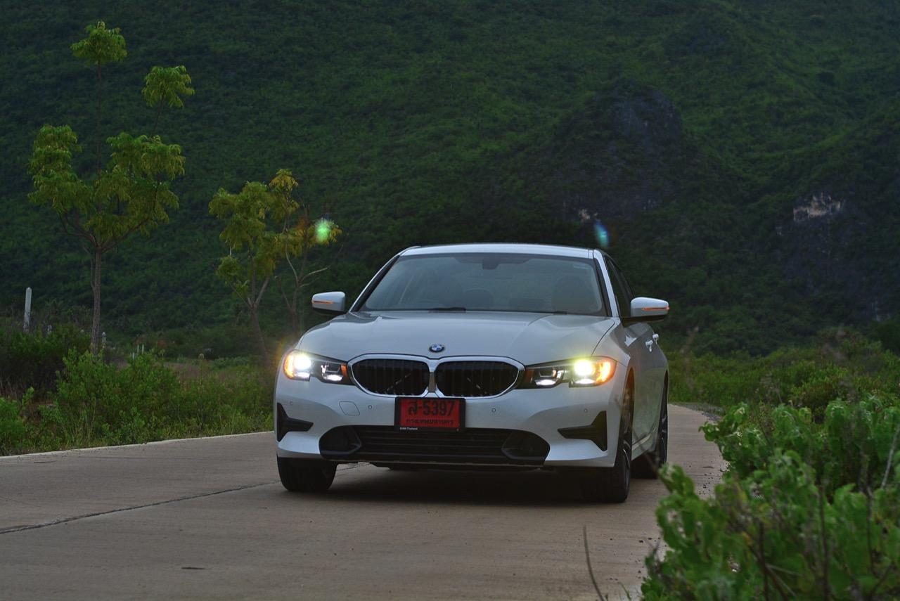 New Series-3 ใหม่ มาเต็มด้วยไฟหน้ารูปทรงโฉบเฉี่ยวขนาดใหญ่ เป็นระบบไฟ LED แบบปกติพร้อมไฟหรี่กลางวัน LED Daytime Running Lights ไม่มีระบบปรับแสงไฟอัตโนมัติหรือ Adaptive LED ซึ่งติดตั้งอยู่ในรถรุ่นที่แพงกว่าอย่าง 330i M-Sport G20 ส่วนเทคโนโลยีของระบบขับเคลื่อนยังคงก้าวล้ำนำหน้า คุณภาพของวัสดุและความดุดันนั้นกินขาด รูปทรงแบบใหม่ล่าสุดของ New Series-3 จะสร้างแรงกดดันให้กับ Mercedes-Benz C-Class Minorchange และ Audi A4 ในกลุ่มซีดานไซส์เล็กแบบพรีเมี่ยมซึ่งลูกค้าคนรวยมีความละเอียดอ่อนและมีความชอบที่แปลกแยกแตกต่าง ผมเอา 320d Sport G20 ออกไปขับทดสอบแทนที่จะเป็น 330i M-Sport ที่แรงกว่า เนื่องจากราคารุ่นนำเข้าของ 330i นั้น ยันเพดาน คงต้องรอต่อคิวหลังจากขับรถตัวขายอย่าง 320d Sport ที่มีราคาถูกกว่ากันถึง 459,000 บาท