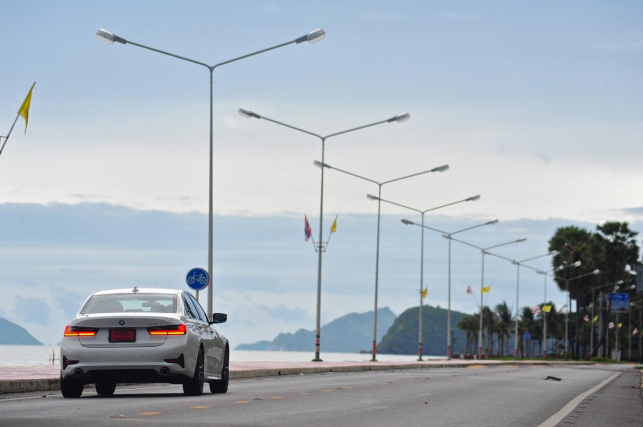 ช่วงล่างของ 320d G20 ไม่ได้นิ่มนวลเหมือน 320d F30 รุ่นที่แล้ว วิศวกรของ BMW เซตให้ช่วงล่างของ Series-3 G20 ออกมาในแนวหนึบแน่นมากกว่าเดิม การถ่ายเทน้ำหนักในโค้งที่ดี รวมถึงการวิ่งทางตรงอย่างจี๊ดที่มีความมั่นคงเป็นส่วนผสม เกิดจากอัตราส่วนการกระจายน้ำหนัก 50/50 Series-3 รุ่นใหม่เข้าโค้งได้ไวขึ้นแลกกับอาการกระด้างของช่วงล่างเมื่อเจอเข้ากับผิวถนนแบบโลกพระจันทร์ โหมด Sport มีการหน่วงน้ำหนักพวงมาลัยเพิ่มขึ้นนิดเดียวแต่ขับเร็วแล้วรู้สึกว่ามันพอดีไม่เบาหรือหนักจนทำให้เสียอารมณ์ แชสซีที่โดดเด่นของ Series-3 มีส่วนอย่างมากในการผลักดันให้องคาพยบของรถมีไดนามิกในแบบที่ควรจะเป็น เมื่อขับเร็วบนทางคดเคี้ยวช่วงล่างให้ความมั่นใจได้ดีพร้อมๆ กับการมีพวงมาลัยที่ตรงไปตรงมาทำให้ขับง่ายสบายตัว มันจะออกอาการอันเดอร์สเตียร์เมื่อเข้าโค้งอย่างรุนแรง มีครั้งหนึ่งที่ยาง pirelli cinturato p7 ออกอาการแปลกๆ ในโค้งแต่ก็ไม่ได้มากมายอะไรและทำให้คิดถึงยาง Pilot Sport 4 ในจุดนี้ พวงมาลัยที่ดีช่วยเพิ่มความสมดุลกลางโค้งและสามารถเดินคันเร่งได้อย่างเต็มที่เมื่อเริ่มพ้นปลายโค้ง ช่วงล่างหนึบหนับและการกระจายน้ำหนักของ New Series-3 ทั้งหน้าและหลังเท่ากัน ส่งผลให้เกิดความปราดเปรียว ขับง่ายและลงตัวกับการออกทางไกลมากกว่าการขับอยู่แต่ในเมือง ผมแปลกใจในความสนุกที่มันมอบให้ เป็นคาร์แลคเตอร์เดิมๆ ของ 3-Series E90 ที่หายไปในรุ่น F30 และมาโผล่อยู่ใน G20 แบบงงๆ