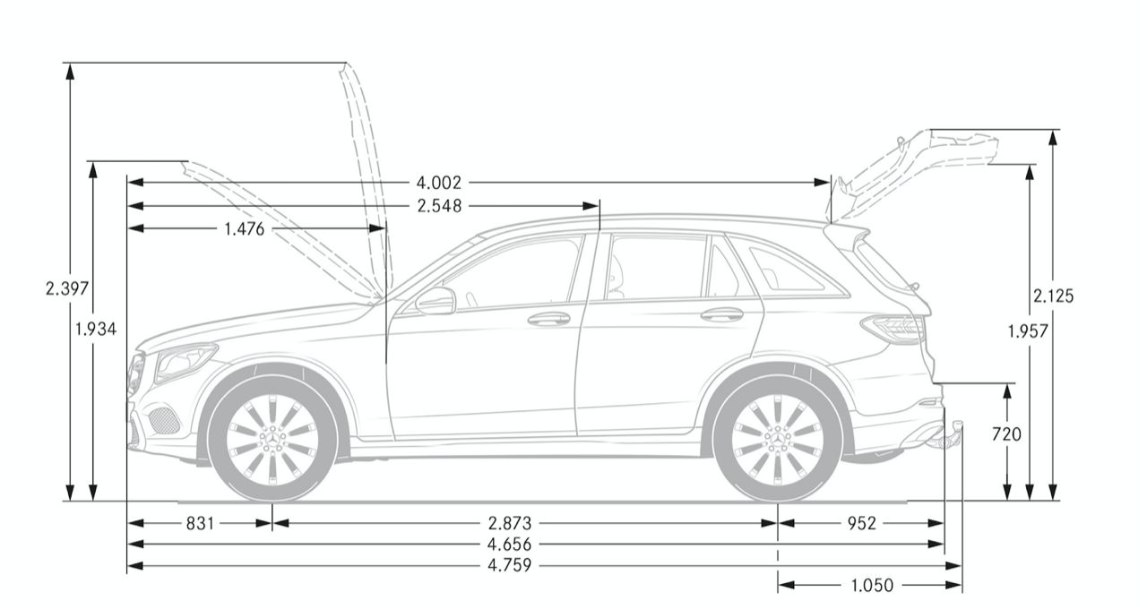 GLC220d 4MATIC รุ่นถูกสุด ราคา 3 ล้าน มีรูปลักษณ์แบบรถอเนกประสงค์ขนาดกลาง มีขนาดความกว้างของตัวถังอยู่ที่ 1,890 มิลลิเมตร ยาว 4,656 มิลลิเมตร สูง 1,639 มิลลิเมตร ระยะห่างล้อหน้า 1,621 ระยะห่างของล้อหลัง 1,617 มิลลิเมตร ความยาวฐานล้อ 2,873 มิลลิเมตร สัดส่วนของความสูงจากพื้นถึงใต้ท้อง 181 มิลลิเมตร หนัก 1,845 กิโลกรัม Mercedes Benz GLC มีเรือนร่างที่สมส่วนมีความสวยงามน่าใช้น่าขับและทำตลาดได้ดีในไทยทั้งรุ่นตัวถังปกติและรุ่น Coupe สำหรับรุ่นประหยัด GLC 220d 4MATIC ถูกตัดอุปกรณ์ออกไปพอสมควรเพื่อการทำราคาให้ถูกลง ส่วนเทคโนโลยีของระบบขับเคลื่อนยังคงเหมือนเดิมด้วยการใช้เครื่องยนต์ดีเซลแถวเรียง 4 สูบ 180 แรงม้าที่เน้นความประหยัดกับเกียร์อัตโนมัติสุดเนียนอย่าง 9-G Tronic จากการเรียนรู้ที่เพิ่มพูนประสบการณ์สำหรับการทำตลาดรถหรู ด้วยเทคโนโลยีของขุมกำลังและชุดเกียร์ในระบบขับเคลื่อนที่ทันสมัย