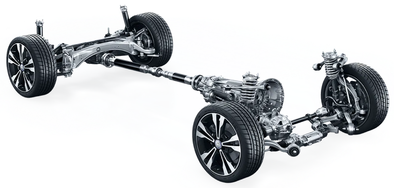 GLC ทุกรุ่นมีระบบขับเคลื่อน 4 ล้อ แบบ 4Matic สามารถกระจายถ่ายเทแรงบิดแบบผกผันจากล้อหน้าไปล้อหลังหรือจากล้อหลังมายังล้อหน้าได้ 45% ถึง 55% ขึ้นอยู่กับสภาพเส้นทางที่วิ่งผ่าน การกระจายแรงบิดระหว่างเพลาหน้าและเพลาหลังเชื่อมโยงกับระบบควบคุมการทรงตัว ESP® / ASR และ 4ETS ระบบควบคุมการจัดการแบบไดนามิกนี้ มีให้สำหรับการจัดการที่เหนือกว่าและสามารถคาดเดาได้อย่างชัดเจน คลัตช์หลายแผ่นที่แตกต่างกันในชุดขับเคลื่อน 4 ล้อ แบบ 4Matic ช่วยเพิ่มการยึดเกาะระหว่างยางกับผิวถนน เช่น การขับบนหิมะหรือน้ำแข็ง แรงล็อกขั้นพื้นฐาน 50 นิวตันเมตร ระหว่างเพลาด้านหน้าและเพลาหลังกับการเพิ่มขึ้นอย่างมีนัยสำคัญเมื่อต้องลากจูงวัตถุที่ส่งผลกับเสถียรภาพของตัวรถ