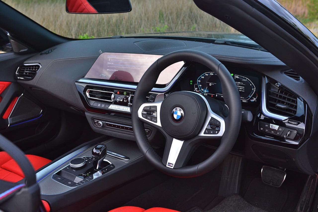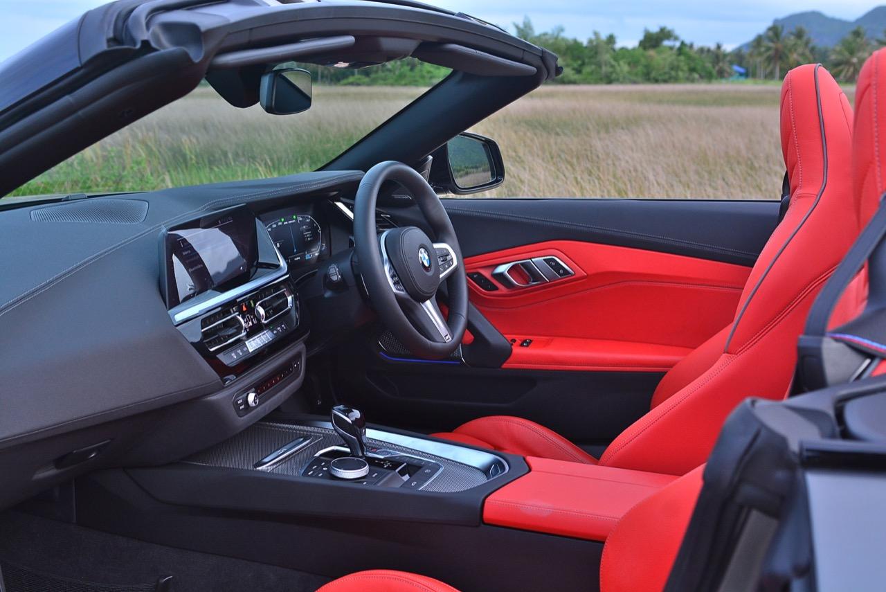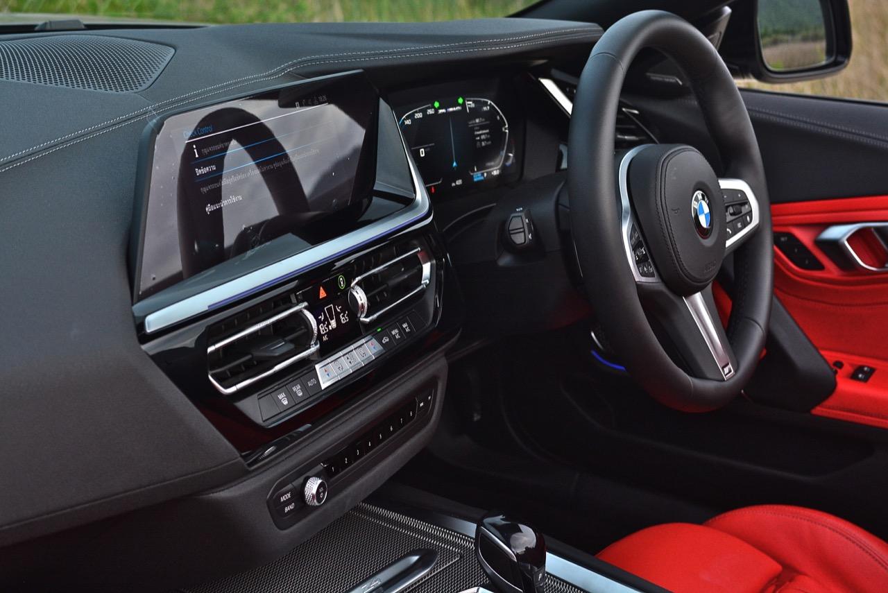 ห้องโดยสารของ Z4 นั้นถือว่ากว้างขวางสำหรับรถโรดสเตอร์ แดชบอร์ดมีปุ่มมากมายโดยเฉพาะบริเวณรอบๆ คันเกียร์ มีปุ่ม DSC มีสวิตช์โหมด Comfort/Sport/Sport+ และ ECO แล้วก็มีปุ่มหมุนคุม iDrive และถัดไปด้านหลังก็มีปุ่มสำหรับกาง/เก็บหลังคา ซึ่งตอนนี้ใช้เวลาแค่ 10 วินาทีในการเปิดหรือปิด มันไม่มีระบบแสดงข้อมูลการขับด้วยการยิงสะท้อนกระจกแบบ HUD ซึ่งไม่ใช่ประเด็นที่จะสร้างความยากลำบากในการใช้งาน เวลาใช้งานจริงเมื่อขับเร็ว คุณก็แทบจะไม่ได้ละสายตาไปจากถนนข้างหน้าเพื่อเหลือบมองจอแสดงผลดังกล่าว