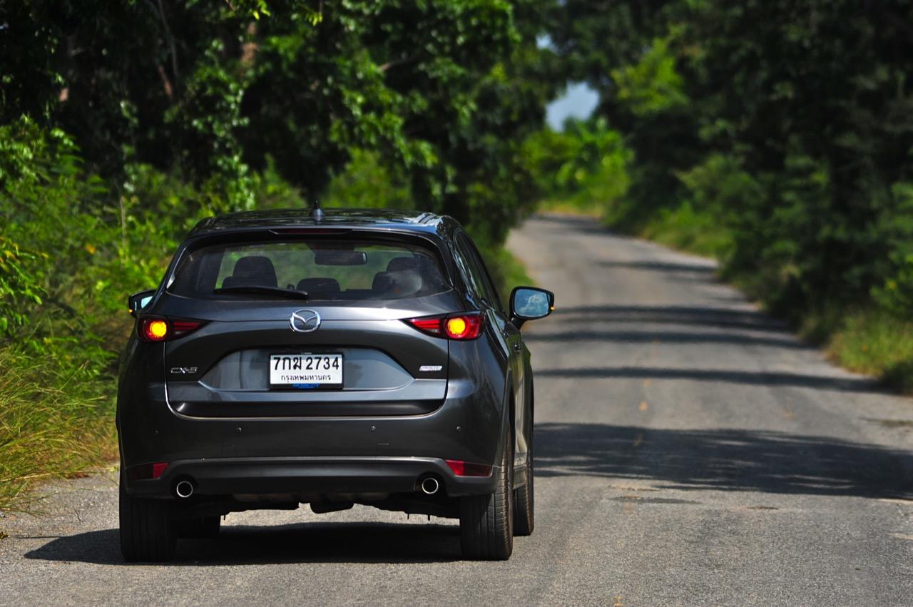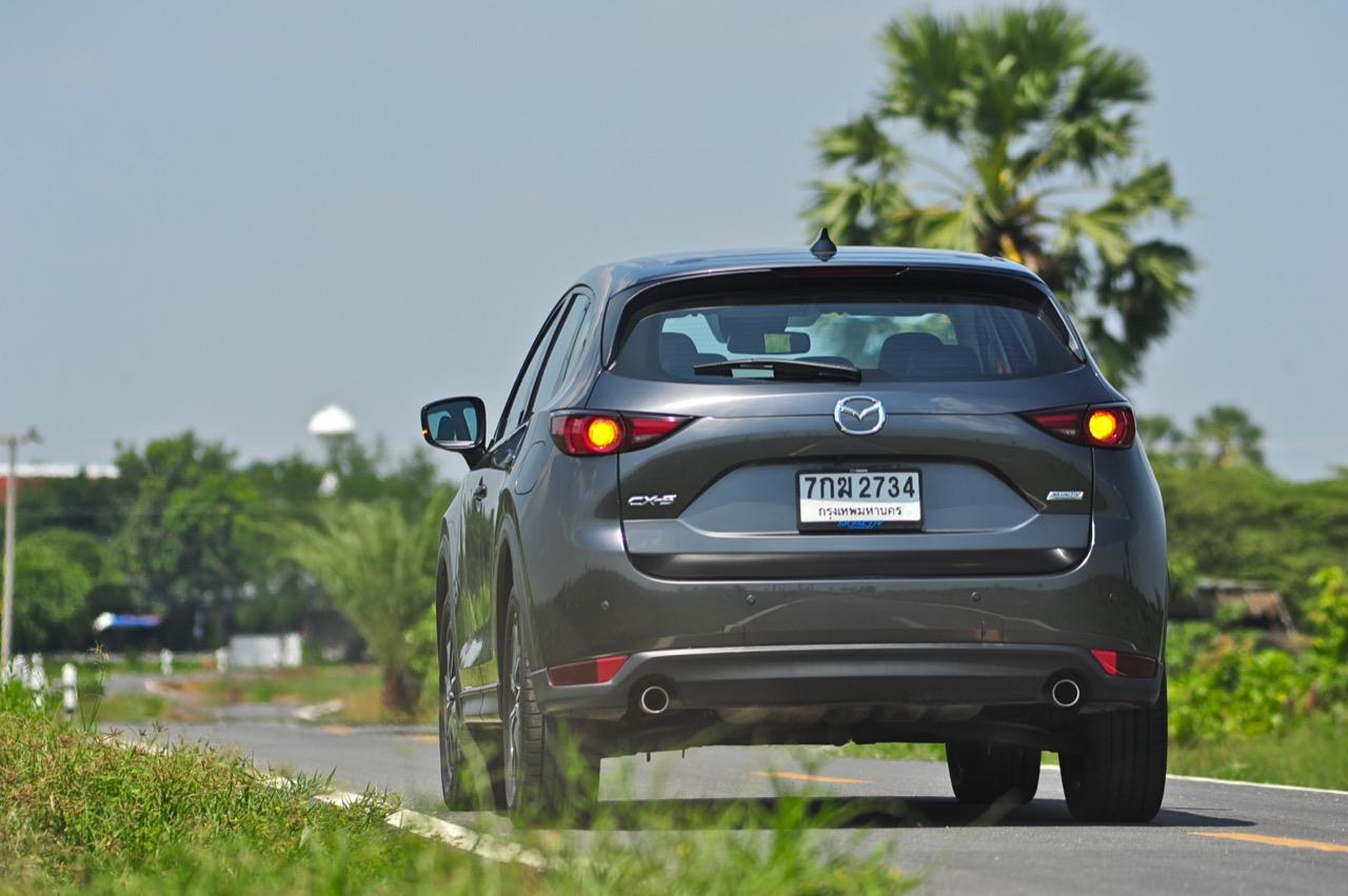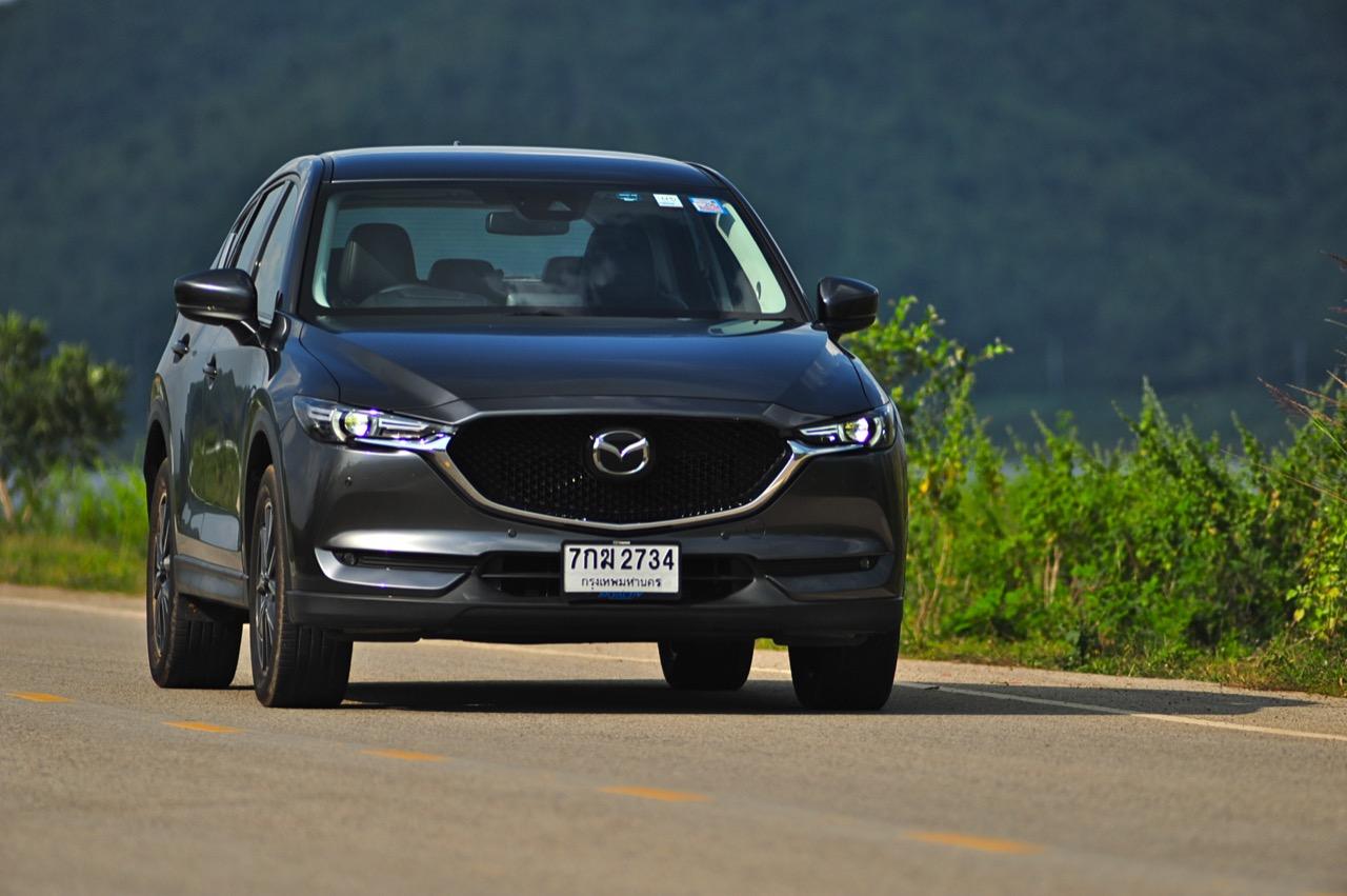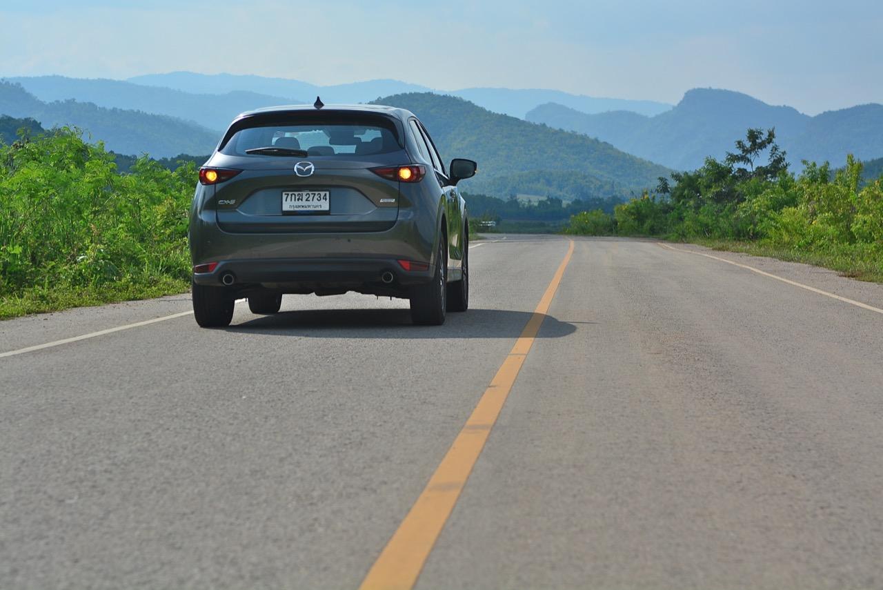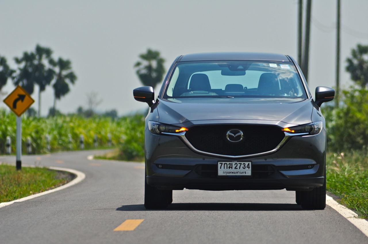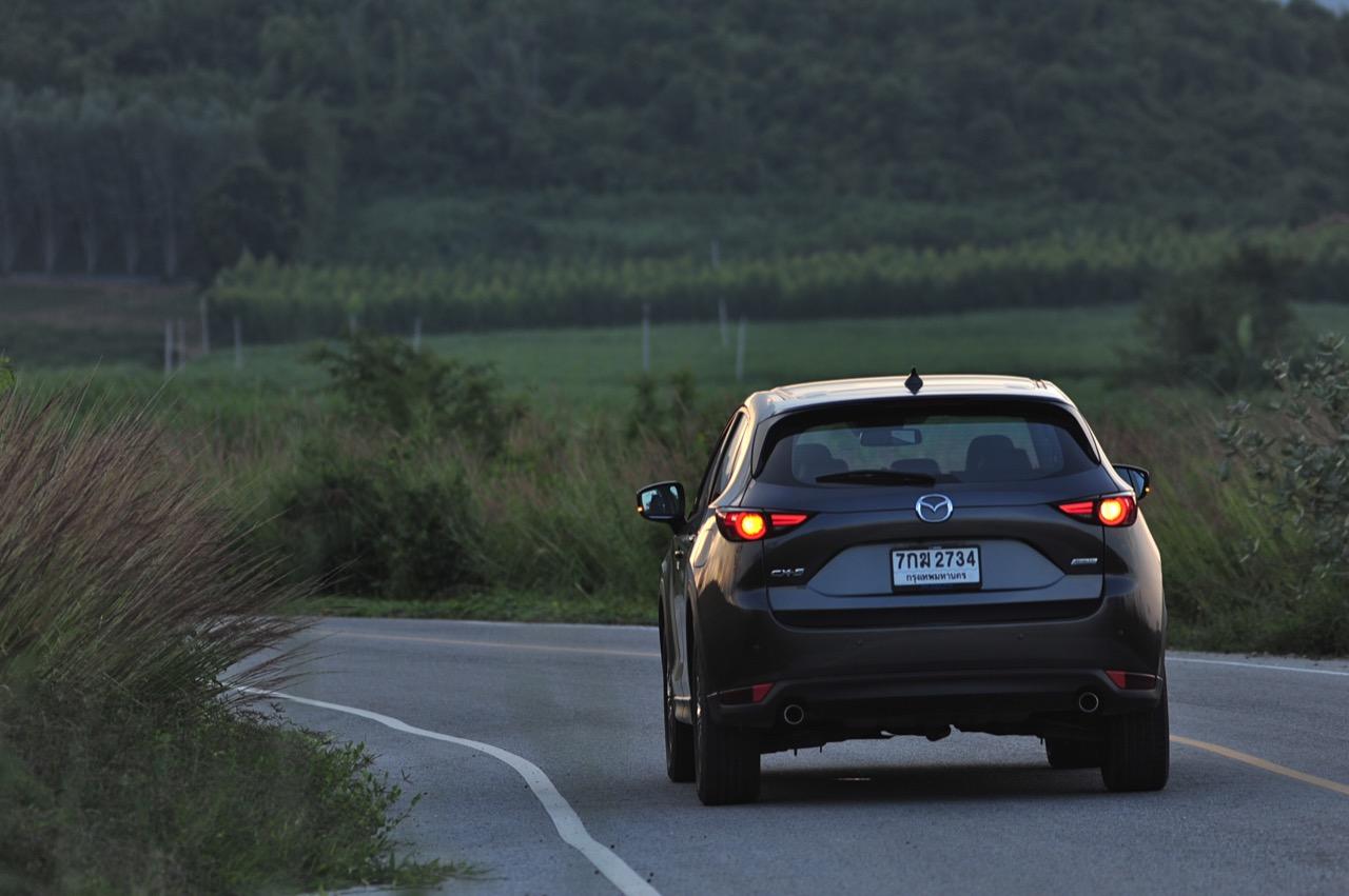 CX-5 รุ่นเบนซิน เป็นรถเอสยูวีไซส์กลางที่มีเสถียรภาพ คล่องตัวและเร็วใช้ได้ กำลังพอท้วมๆ แรงบิดไม่มากเหมือนเครื่องดีเซล แต่สามารถฉุดลากตัวรถหนัก 1,569 กิโลกรัมให้ทะยานไปตามทางขึ้นเนินได้แบบไม่อืด แค่กดให้ลึกมากกว่ารุ่นดีเซล แรงบิดจะหลั่งไหลออกมาจนรู้สึกได้ถึงแรงฉุดลาก การตอบสนองอย่างละเอียดของอุปกรณ์เพิ่มความเสถียรหรือ G-Vectoring Control ทำให้ผมหรือใครก็ตามที่นั่งอยู่หลังพวงมาลัยเกิดความมั่นใจได้มากกว่ารถครอสโอเวอร์คู่แข่ง! พวงมาลัยเบาลงเล็กน้อยคล้ายรุ่นดีเซล ช่วงล่างก็นิ่มขึ้นอีกนิดเพื่อดักทางคุณสุภาพสตรีที่ไม่ชอบความกระด้างสะเทือน แฮนด์ลิ่งของพวงมาลัยไฟฟ้านับว่าดีแม้จะให้ความรู้สึกที่เบากว่ารุ่นแรก เป็นผลมาจากการปรับจูน ECU ที่ใช้ควบคุมพวงมาลัยโดยไม่กระทบกระเทือนกับการใช้ความเร็วของพวกตีนผี!