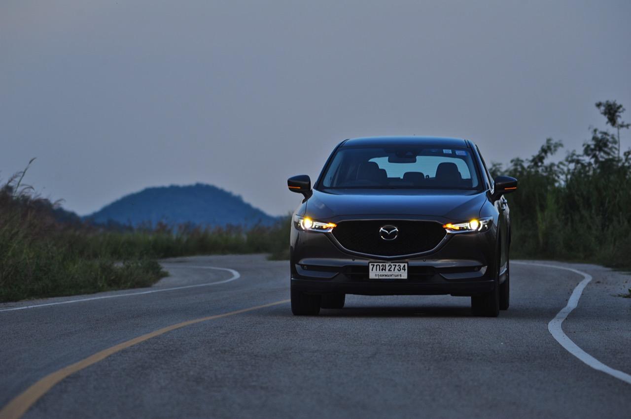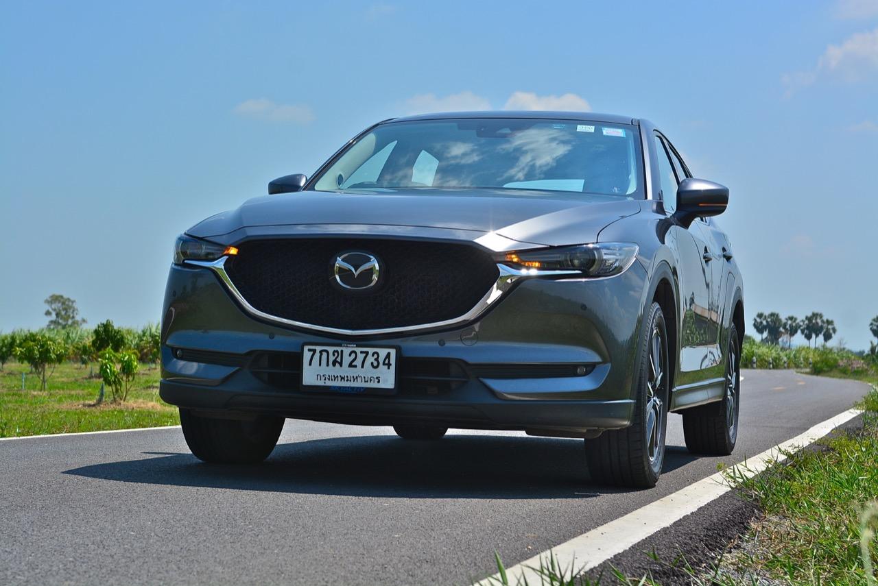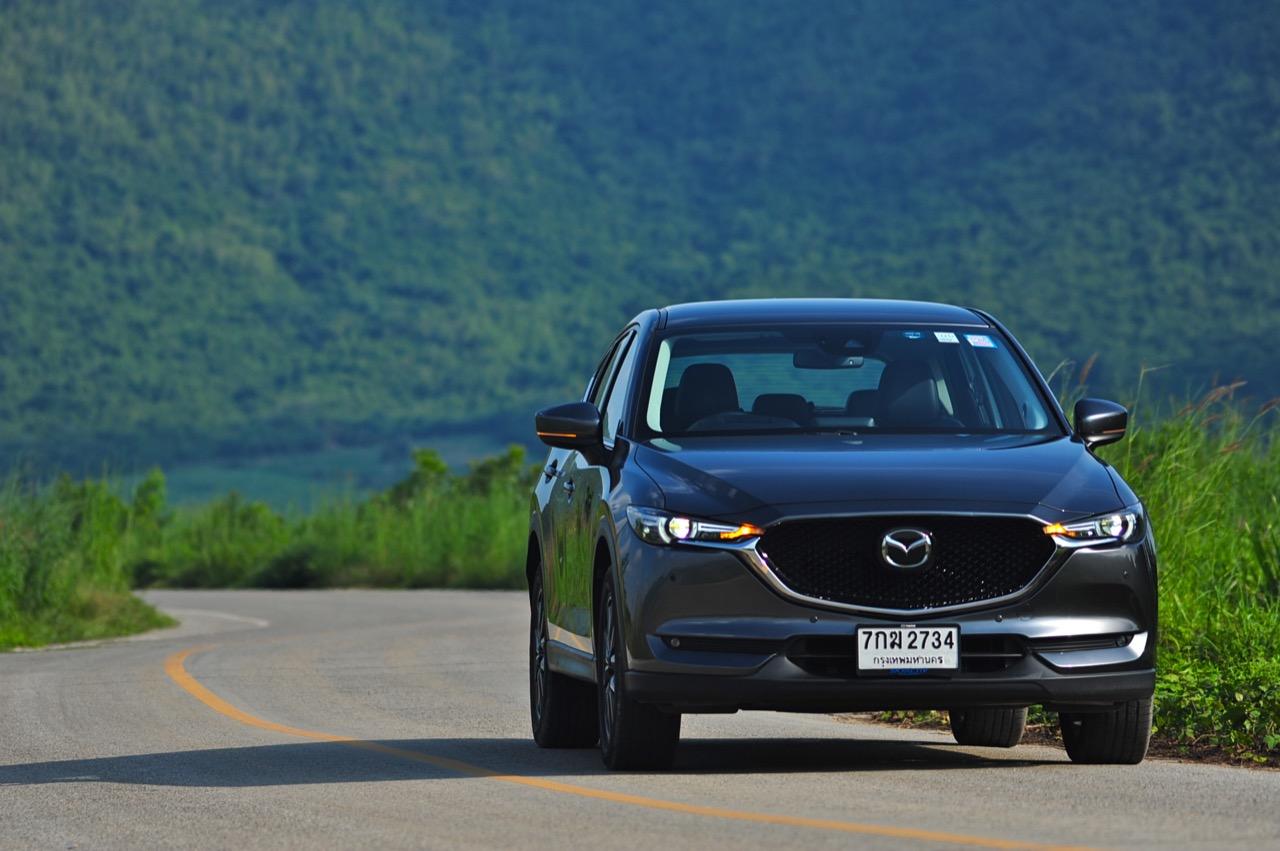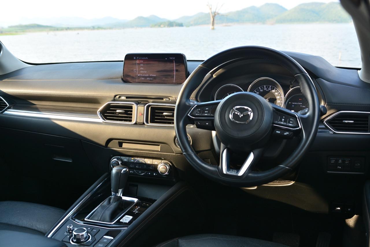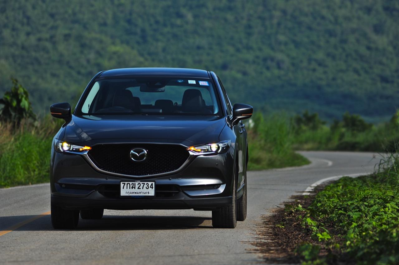 CX-5 รุ่นเบนซิน เป็นรถเอสยูวีไซส์กลางที่มีเสถียรภาพ คล่องตัวและเร็วใช้ได้ กำลังพอท้วมๆ แรงบิดไม่มากเหมือนเครื่องดีเซล แต่สามารถฉุดลากตัวรถหนัก 1,569 กิโลกรัมให้ทะยานไปตามทางขึ้นเนินได้แบบไม่อืด แค่กดให้ลึกมากกว่ารุ่นดีเซล แรงบิดจะหลั่งไหลออกมาจนรู้สึกได้ถึงแรงฉุดลาก การตอบสนองอย่างละเอียดของอุปกรณ์เพิ่มความเสถียรหรือ G-Vectoring Control ทำให้ผมหรือใครก็ตามที่นั่งอยู่หลังพวงมาลัยเกิดความมั่นใจได้มากกว่ารถครอสโอเวอร์คู่แข่ง! พวงมาลัยเบาลงเล็กน้อยคล้ายรุ่นดีเซล ช่วงล่างก็นิ่มขึ้นอีกนิดเพื่อดักทางคุณสุภาพสตรีที่ไม่ชอบความกระด้างสะเทือน แฮนด์ลิ่งของพวงมาลัยไฟฟ้านับว่าดีแม้จะให้ความรู้สึกที่เบากว่ารุ่นแรก เป็นผลมาจากการปรับจูน ECU ที่ใช้ควบคุมพวงมาลัยโดยไม่กระทบกระเทือนกับการใช้ความเร็วของพวกตีนผี!