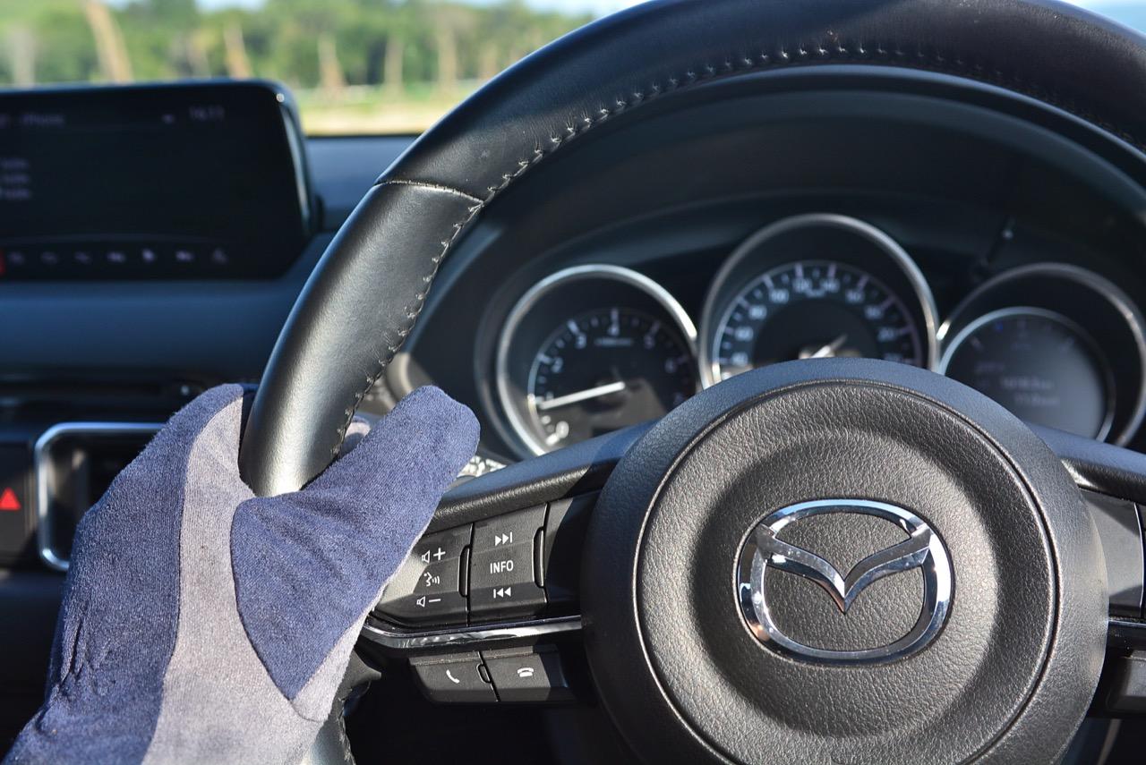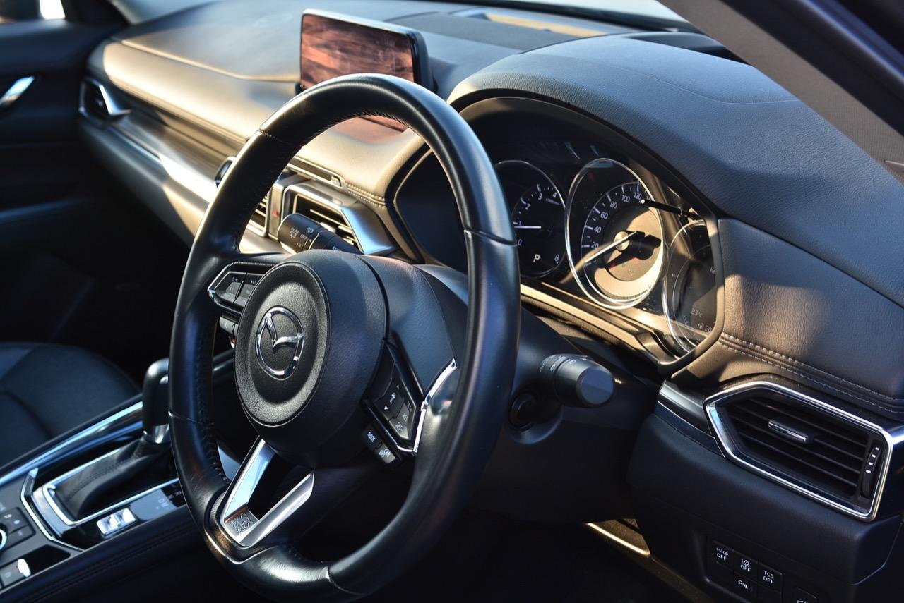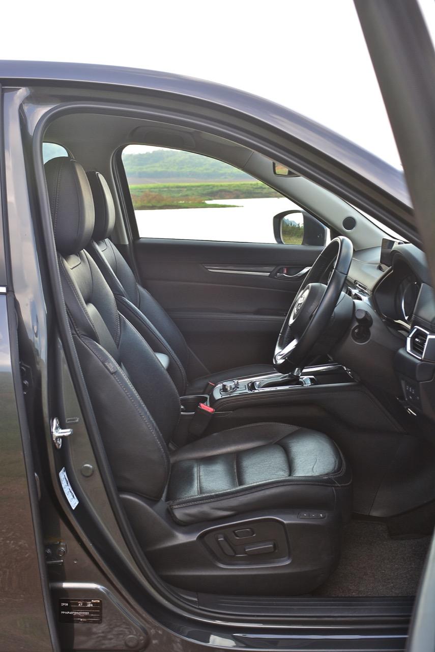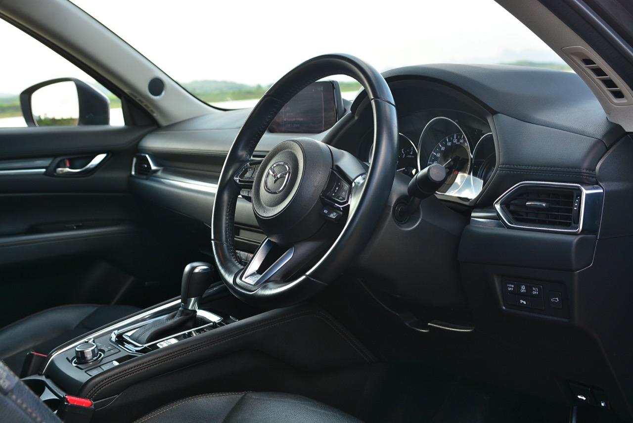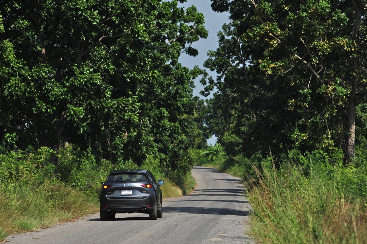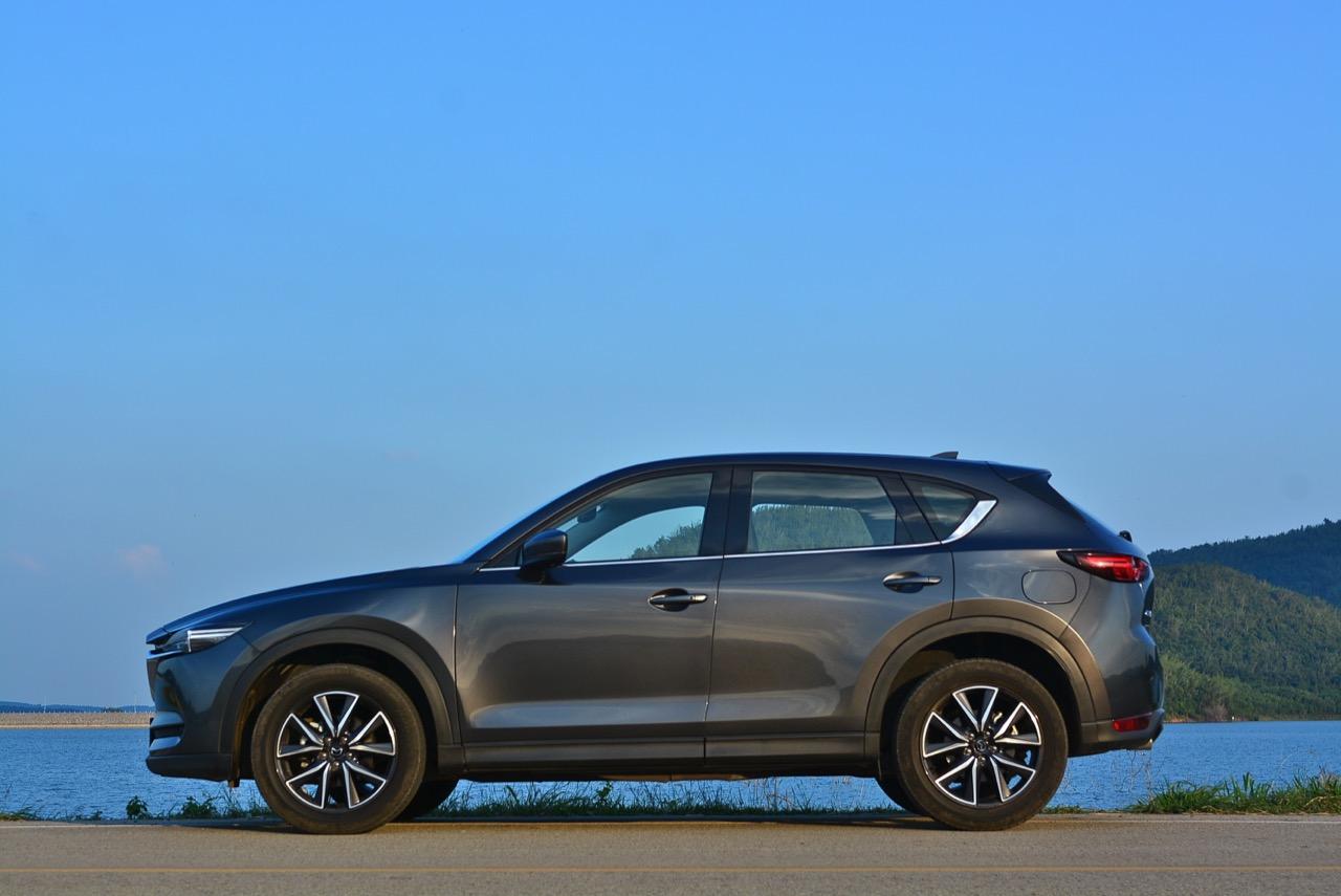 CX-5 รุ่นเบนซิน เป็นรถเอสยูวีไซส์กลางที่มีเสถียรภาพ คล่องตัวและเร็วใช้ได้ กำลังพอท้วมๆ แรงบิดไม่มากเหมือนเครื่องดีเซล แต่สามารถฉุดลากตัวรถหนัก 1,569 กิโลกรัมให้ทะยานไปตามทางขึ้นเนินได้แบบไม่อืด แค่กดให้ลึกมากกว่ารุ่นดีเซล แรงบิดจะหลั่งไหลออกมาจนรู้สึกได้ถึงแรงฉุดลาก การตอบสนองอย่างละเอียดของอุปกรณ์เพิ่มความเสถียรหรือ G-Vectoring Control ทำให้ผมหรือใครก็ตามที่นั่งอยู่หลังพวงมาลัยเกิดความมั่นใจได้มากกว่ารถครอสโอเวอร์คู่แข่ง! พวงมาลัยเบาลงเล็กน้อยคล้ายรุ่นดีเซล ช่วงล่างก็นิ่มขึ้นอีกนิดเพื่อดักทางคุณสุภาพสตรีที่ไม่ชอบความกระด้างสะเทือน แฮนด์ลิ่งของพวงมาลัยไฟฟ้านับว่าดีแม้จะให้ความรู้สึกที่เบากว่ารุ่นแรก เป็นผลมาจากการปรับจูน ECU ที่ใช้ควบคุมพวงมาลัยโดยไม่กระทบกระเทือนกับการใช้ความเร็วของพวกตีนผี!
