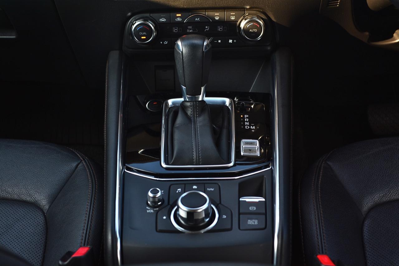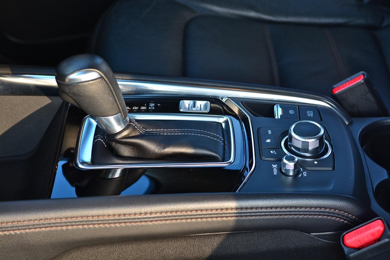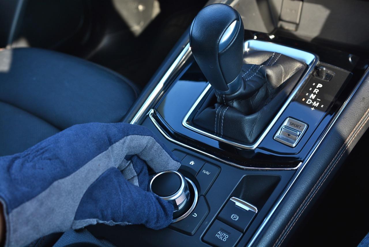 เกียร์ออโต้ 6 สปีด Skyactiv transmission เป็นเกียร์อัตโนมัติแบบฟันเฟืองทอร์คคอนเวอร์เตอร์ที่ปรับอัตราทดให้ครอบคลุมการใช้งาน แถมยังช่วยลดรอบเครื่องยนต์เมื่อวิ่งที่ย่านความเร็วเดินทางทำให้เกิดความประหยัด สวิตช์ Sport Mode ในรุ่นเบนซินมีการปรับการทำงานของเครื่องยนต์ให้ตอบสนองได้ไวขึ้น เกียร์ก็ฉลาดหลักแหลมมากพอที่จะปรับความสมดุลของอัตราทดให้เข้ากับความเร็วและสภาพเส้นทาง ผมลองทดสอบการตอบสนองของเกียร์โดยผลักคันเกียร์มาทางขวาเพื่อเข้าสู่โหมดแมนนวลสำหรับการปรับอัตราทดด้วยตัวคนขับเอง เกียร์ทำงานได้รวดเร็วเมื่อชิฟขึ้น-ลง ตอบสนองไวในการเลือกอัตราทดที่มีความเหมาะสมกับเส้นทางภูเขาของตัวคนขับ ให้ความรู้สึกที่ดีกว่าเกียร์ CVT เป็นชุดส่งกำลังที่น่าชื่นชมและเป็นอุปกรณ์ในระบบส่งกำลังของ Mazda ที่มีการปรับจูน ECU ใหม่ ช่วยทำให้ CX-5 ขับสนุกมากยิ่งขึ้น