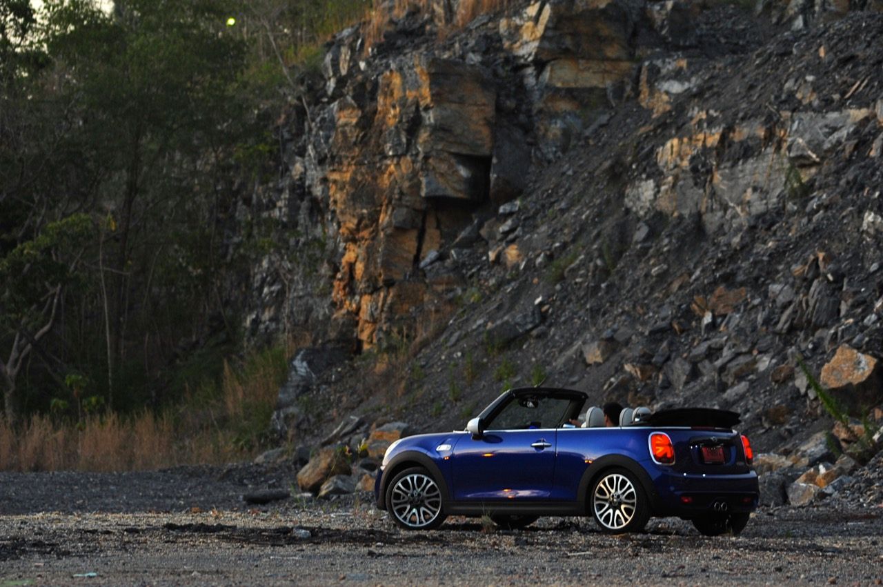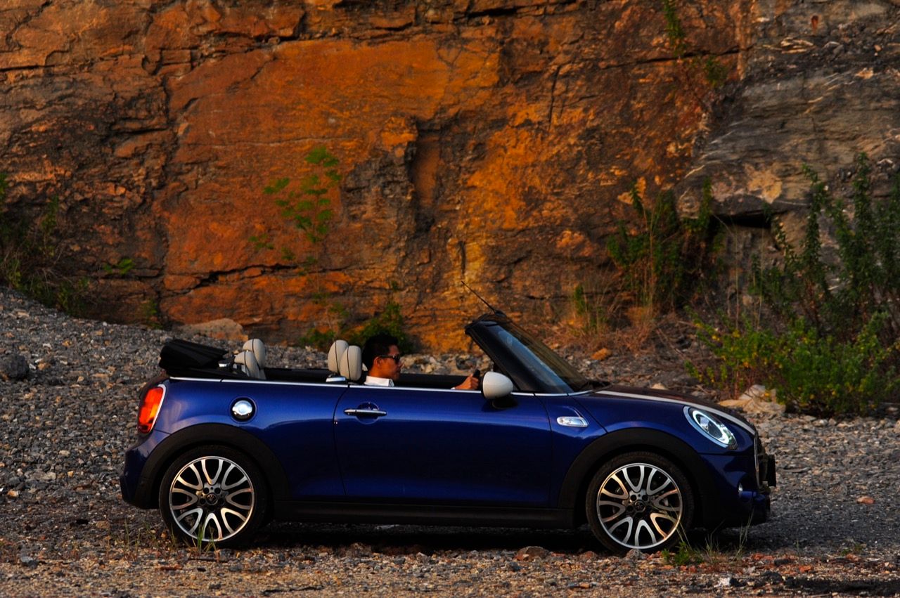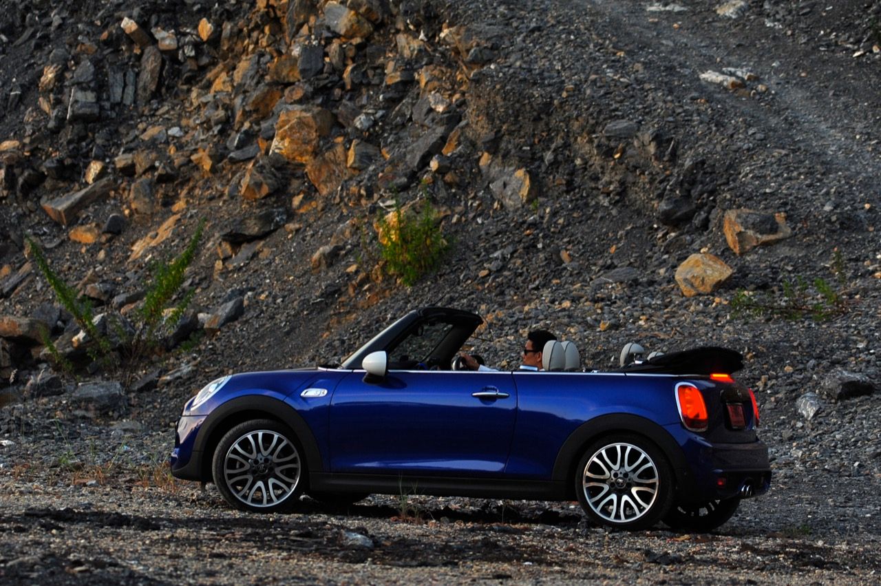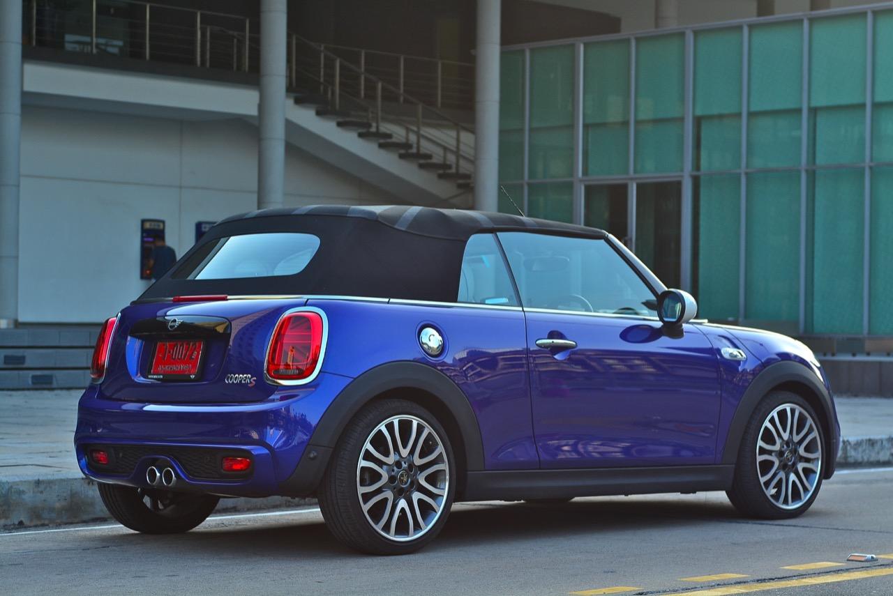ความเตี้ยของรถที่ไม่มากเกินไปทำให้การเข้าออกจากห้องโดยสารของ MINI ใหม่มีความสะดวกสบายพอสมควร เมื่ออากาศเย็นคุณจะใช้เวลาแค่ 18 วินาทีในการพับหลังคา เจ้าหลังคาแสนกลก็จะพับเก็บอย่างเร็วและเงียบเพื่อการขับแบบเปิดประทุน เปิดหน้ารับอากาศเย็นที่มีให้แบบไม่นานนักก่อนจะกลับมาร้อนเหมือนเดิม MINI Cooper S Convertible ต้องการความแตกต่างที่ไม่ใช่แค่ตัวเลขแรงม้าและแรงบิด รูปลักษณ์ที่ดุดันผสมกับความน่ารักน่าชัง ทั้งช่องดักอากาศบนฝากระโปรงหน้า ช่องรับอากาศที่กันชนหน้าเอาไประบายความร้อนให้กับจานเบรก ท่อระบายไอเสีสองท่อคู่ตรงกลางใต้กันชนหลังที่ให้เสียงระเบิดปุๆ เพื่อความเร้าใจในทุกครั้งที่เร่งความเร็ว
