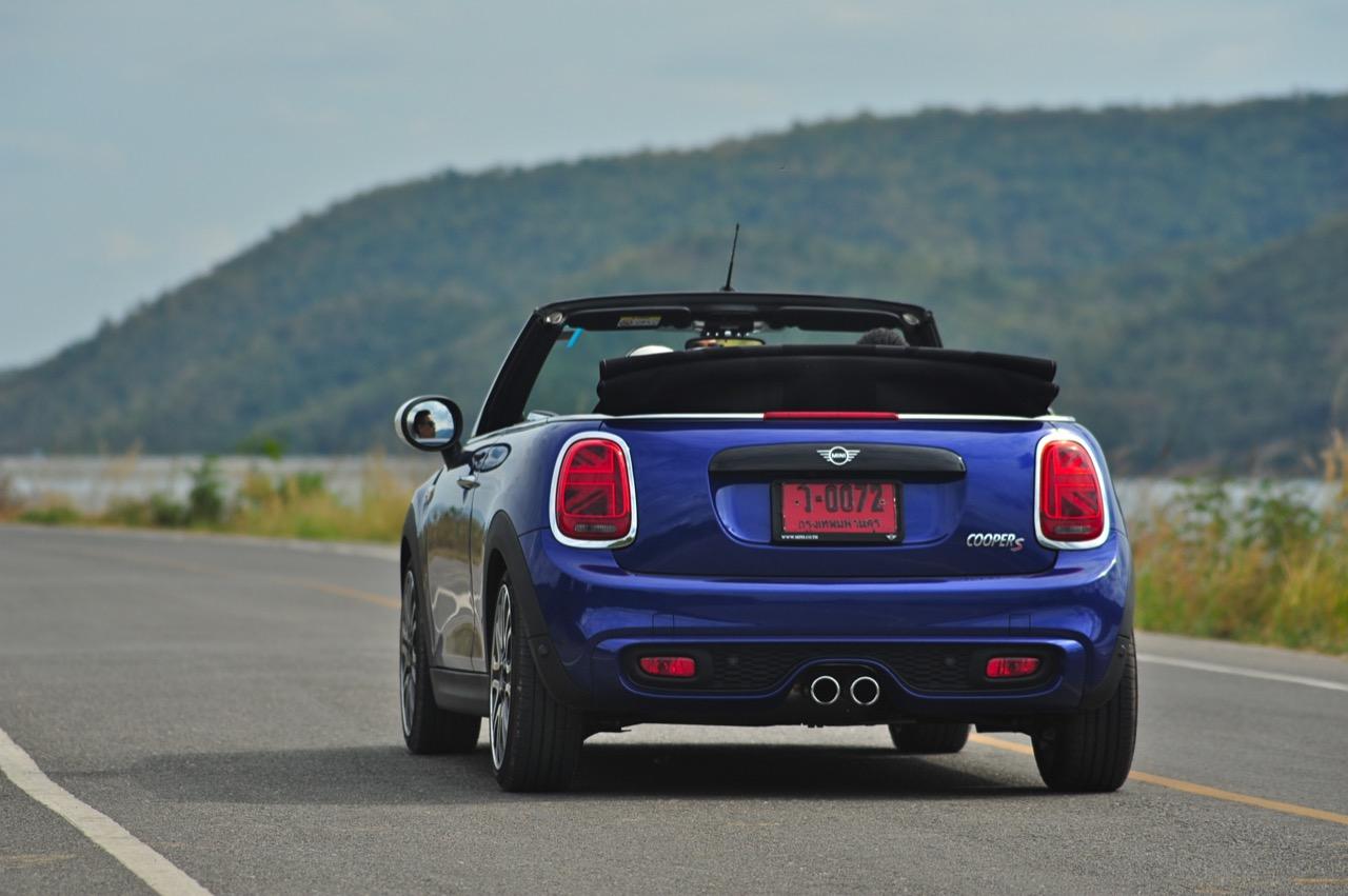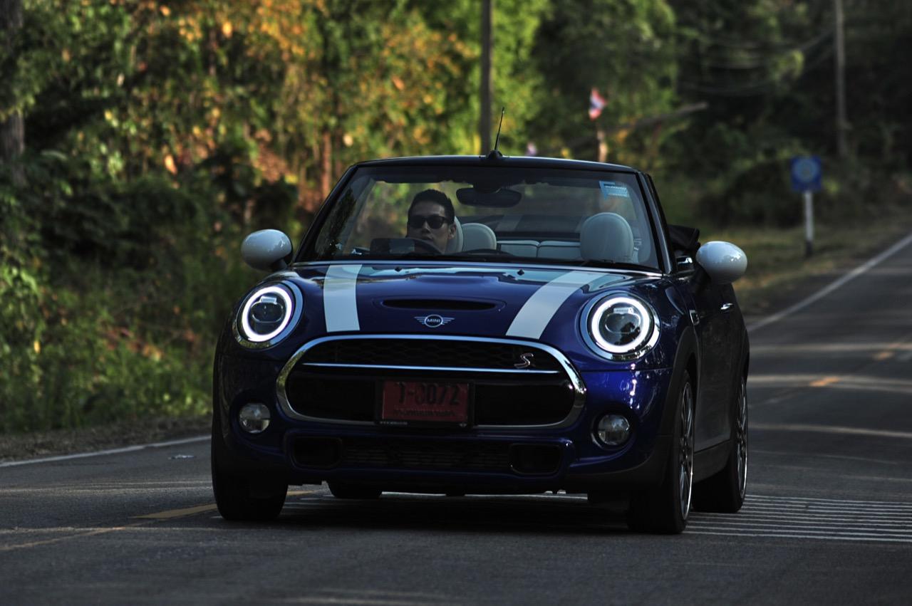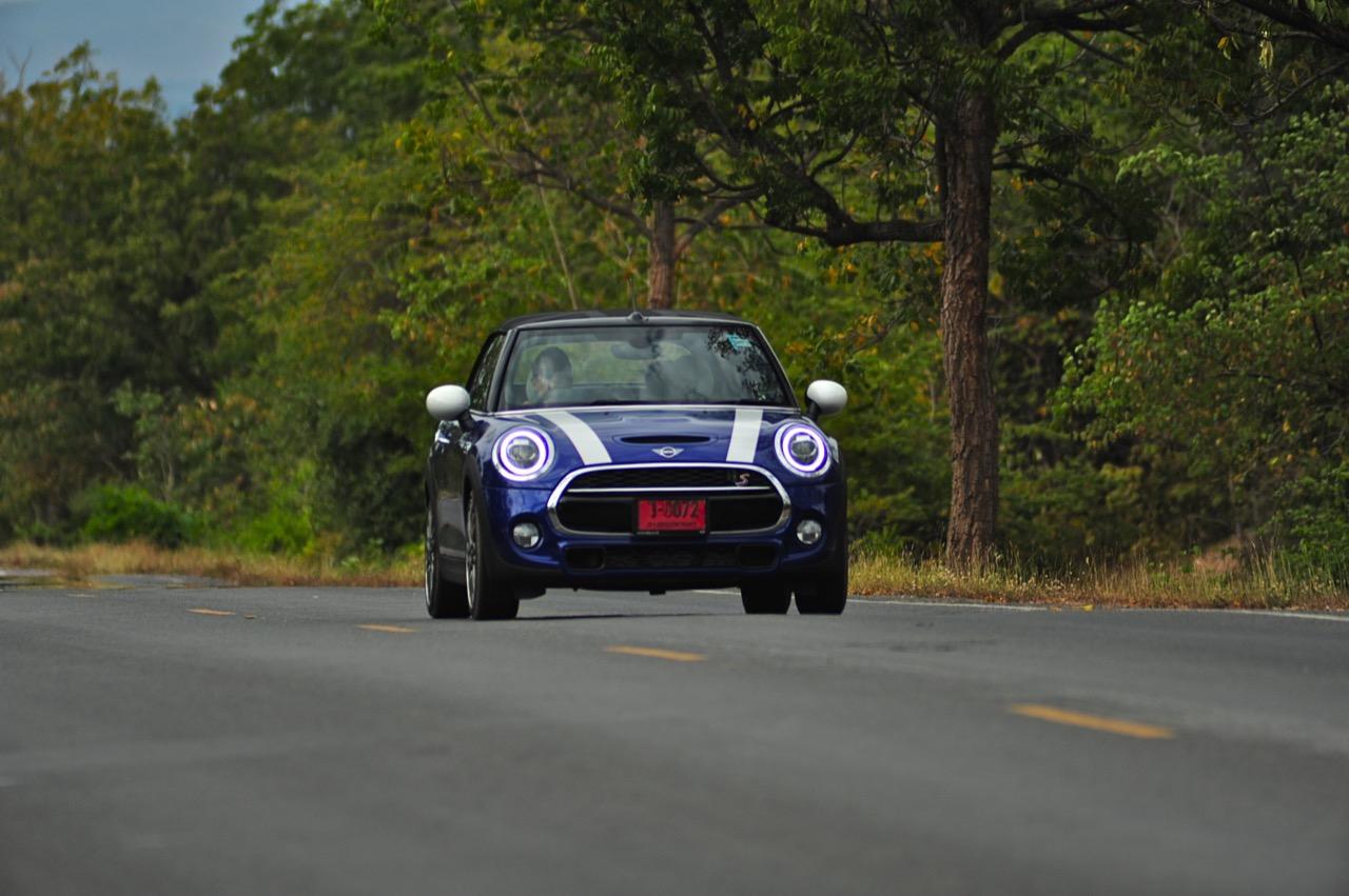 กลิ่นของความเป็น MINI ที่คุ้นเคยปรากฏอยู่ทั่วไปหมดและบางอุปกรณ์ถูกปรับปรุงให้มีเหตุผลของการใช้งานดีกว่าเดิม การเปลี่ยนแปลงทั้งหมดทั้งปวง ส่วนหนึ่งมาจากแบบสอบถามลูกค้าที่ทำตามความต้องการของคนที่ยอมจ่ายเงิน 3 ล้านเพื่อแลกกับรถเปิดหลังคาคันนิดเดียว ช่วงล่างที่โอนอ่อนผ่อนคลายมากกว่า JCW ทำให้มันเป็นรถที่มีทั้งความหนึบและความนุ่ม ไม่แข็งกระด้างมากจนทำให้เกิดอาการสะเทือน การเซ็ตช่วงล่างให้ออกมาในลักษณะของรถโกคาร์ทแต่ไม่สะเทือนซางกระด้างจนเกินงามทำให้มันเป็นรถเล็กที่ใช้ขับออกทางไกลได้ดีและไม่ทำให้คุณต้องพบกับอาการปวดบั้นเอวหรือปวดหลัง ช่วงล่างที่กระชับยังส่งผลไปถึงการเข้าโค้งที่แม่นยำ การถ่ายเทน้ำหนักที่ดีและความสบายเมื่อวิ่งผ่านผิวถนนไม่เรียบ ขับมันทั้งวันก็ยังไม่เมื่อยเนื่องจากเบาะแบบใหม่นั้นเข้ากันกับช่วงล่างแบบสปอร์ตที่ไม่ได้แข็งโป๊กเหมือน MINI JCW ตัวเลขความเร็วในการตะกายจาก 0 ไปจนถึง 100 กิโลเมตรต่อชั่วโมงนั้นเร็วกว่าเดิมพอสมควร ส่วนหนึ่งเป็นผลลัพธ์จากอัตราทดของเกียร์ทวินคลัตช์ที่ทำให้คุณรู้สึกได้ถึงสมรรถนะที่เปลี่ยนไปในทางที่ดีขึ้น การแซงรถช้าหรือรถบรรทุก รวมถึงการดันตัวเองขึ้นเนินชันๆ จึงกลายเป็นเรื่องที่ง่ายดายขึ้น เกียร์ออโต้สมัยใหม่นั้นเปลี่ยนเกียร์ได้เร็วและช่วยลดเกียร์ลงต่ำเมื่อคาอยู่ในโหมด Sport แล้วใช้เบรกหนักๆ เครื่องยนต์ทำงานได้ไหลลื่นและมีเสียงการทำงานในรอบสูงที่เร้าใจใช้ได้ ในขณะที่กำลังสูงสุด 192 แรงม้านั้นพอเพียงจนไม่จำเป็นจะต้องดิ้นรนเสียเงินเพิ่มเพื่อสอยรุ่น JCW ที่มีม้าถึง 230 ตัว รุ่น JCW Convertible ยังแข็งเกินไปเมื่อเจอกับเส้นทางชนบทแบบนี้ และเมื่อกดสวิตช์ปรับโหมดไปที่ Sport ความบันเทิงเริงรมย์หลังพวงมาลัยก็จะเพิ่มมากขึ้นแต่ก็ควรจะระวังให้ดีๆเพราะมันเป็นรถเล็กที่ปราดเปรียวว่องไวจนบางครั้งก็เกินงามมากไปหน่อยหากใส่แบบไม่ยั้ง พวงมาลัยไฟฟ้าในโหมดนี้ขยับตัวตึงมือขึ้นมาอีกนิดเพื่อปรับความหนืดให้เข้ากับความเร็วที่เปลี่ยนไป การเลี้ยวที่เฉียบคมเกิดขึ้นทันทีที่คุณเริ่มต้นเปลี่ยนองศาของพวงมาลัย แต่ระวังให้ดีๆ เมื่อใช้ความเร็วสูงก็ไม่ควรเปลี่ยนทิศทางอย่างฉับพลันทันที ฐานล้อที่สั้นกุดทำให้มันเป็นรถที่ไวในย่านความเร็วสูงและอาจทำให้เสียการควบคุมได้ถ้าสบัดพวงมาลัยเร็วเกินไป โดยภาพรวม พวงมาลัยไฟฟ้าใน Cooper S มีน้ำหนักที่กำลังดี แม่นยำและกระชับตัว เมื่อโยนรถเข้าโค้งเร็วๆ สักครั้งสองครั้งคุณจะพบว่าพวงมาลัยของมันกลายเป็นพัฒนาการที่ลงตัวมาก