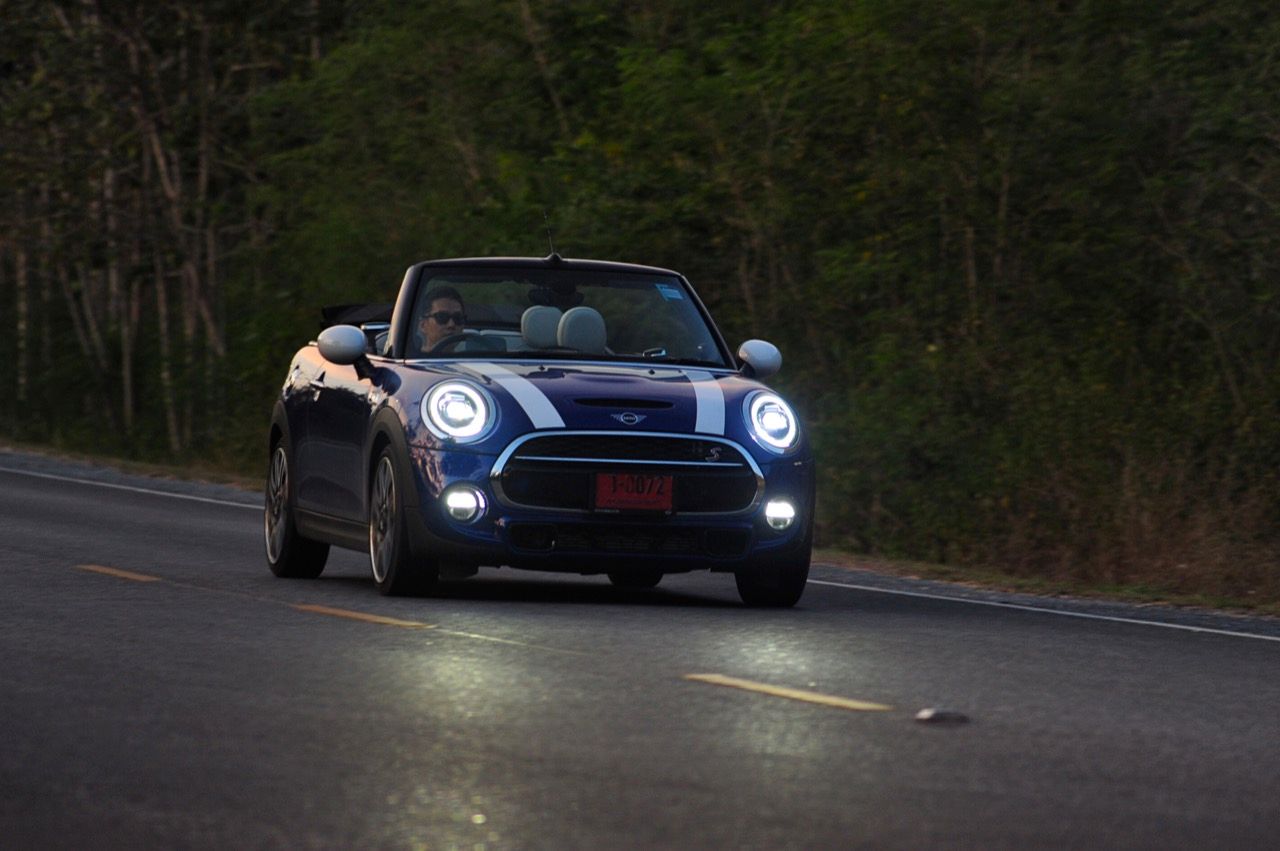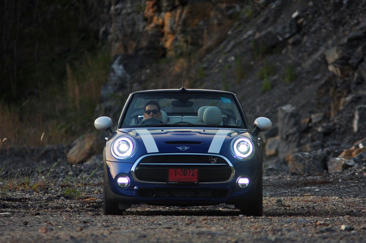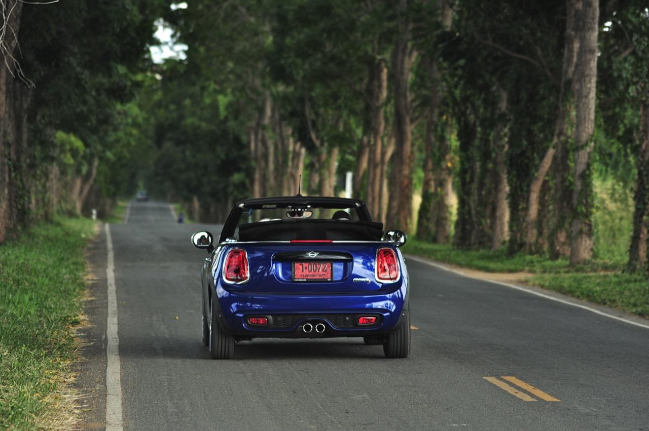 กลิ่นของความเป็น MINI ที่คุ้นเคยปรากฏอยู่ทั่วไปหมดและบางอุปกรณ์ถูกปรับปรุงให้มีเหตุผลของการใช้งานดีกว่าเดิม การเปลี่ยนแปลงทั้งหมดทั้งปวง ส่วนหนึ่งมาจากแบบสอบถามลูกค้าที่ทำตามความต้องการของคนที่ยอมจ่ายเงิน 3 ล้านเพื่อแลกกับรถเปิดหลังคาคันนิดเดียว ช่วงล่างที่โอนอ่อนผ่อนคลายมากกว่า JCW ทำให้มันเป็นรถที่มีทั้งความหนึบและความนุ่ม ไม่แข็งกระด้างมากจนทำให้เกิดอาการสะเทือน การเซ็ตช่วงล่างให้ออกมาในลักษณะของรถโกคาร์ทแต่ไม่สะเทือนซางกระด้างจนเกินงามทำให้มันเป็นรถเล็กที่ใช้ขับออกทางไกลได้ดีและไม่ทำให้คุณต้องพบกับอาการปวดบั้นเอวหรือปวดหลัง ช่วงล่างที่กระชับยังส่งผลไปถึงการเข้าโค้งที่แม่นยำ การถ่ายเทน้ำหนักที่ดีและความสบายเมื่อวิ่งผ่านผิวถนนไม่เรียบ ขับมันทั้งวันก็ยังไม่เมื่อยเนื่องจากเบาะแบบใหม่นั้นเข้ากันกับช่วงล่างแบบสปอร์ตที่ไม่ได้แข็งโป๊กเหมือน MINI JCW ตัวเลขความเร็วในการตะกายจาก 0 ไปจนถึง 100 กิโลเมตรต่อชั่วโมงนั้นเร็วกว่าเดิมพอสมควร ส่วนหนึ่งเป็นผลลัพธ์จากอัตราทดของเกียร์ทวินคลัตช์ที่ทำให้คุณรู้สึกได้ถึงสมรรถนะที่เปลี่ยนไปในทางที่ดีขึ้น การแซงรถช้าหรือรถบรรทุก รวมถึงการดันตัวเองขึ้นเนินชันๆ จึงกลายเป็นเรื่องที่ง่ายดายขึ้น เกียร์ออโต้สมัยใหม่นั้นเปลี่ยนเกียร์ได้เร็วและช่วยลดเกียร์ลงต่ำเมื่อคาอยู่ในโหมด Sport แล้วใช้เบรกหนักๆ เครื่องยนต์ทำงานได้ไหลลื่นและมีเสียงการทำงานในรอบสูงที่เร้าใจใช้ได้ ในขณะที่กำลังสูงสุด 192 แรงม้านั้นพอเพียงจนไม่จำเป็นจะต้องดิ้นรนเสียเงินเพิ่มเพื่อสอยรุ่น JCW ที่มีม้าถึง 230 ตัว รุ่น JCW Convertible ยังแข็งเกินไปเมื่อเจอกับเส้นทางชนบทแบบนี้ และเมื่อกดสวิตช์ปรับโหมดไปที่ Sport ความบันเทิงเริงรมย์หลังพวงมาลัยก็จะเพิ่มมากขึ้นแต่ก็ควรจะระวังให้ดีๆเพราะมันเป็นรถเล็กที่ปราดเปรียวว่องไวจนบางครั้งก็เกินงามมากไปหน่อยหากใส่แบบไม่ยั้ง พวงมาลัยไฟฟ้าในโหมดนี้ขยับตัวตึงมือขึ้นมาอีกนิดเพื่อปรับความหนืดให้เข้ากับความเร็วที่เปลี่ยนไป การเลี้ยวที่เฉียบคมเกิดขึ้นทันทีที่คุณเริ่มต้นเปลี่ยนองศาของพวงมาลัย แต่ระวังให้ดีๆ เมื่อใช้ความเร็วสูงก็ไม่ควรเปลี่ยนทิศทางอย่างฉับพลันทันที ฐานล้อที่สั้นกุดทำให้มันเป็นรถที่ไวในย่านความเร็วสูงและอาจทำให้เสียการควบคุมได้ถ้าสบัดพวงมาลัยเร็วเกินไป โดยภาพรวม พวงมาลัยไฟฟ้าใน Cooper S มีน้ำหนักที่กำลังดี แม่นยำและกระชับตัว เมื่อโยนรถเข้าโค้งเร็วๆ สักครั้งสองครั้งคุณจะพบว่าพวงมาลัยของมันกลายเป็นพัฒนาการที่ลงตัวมาก