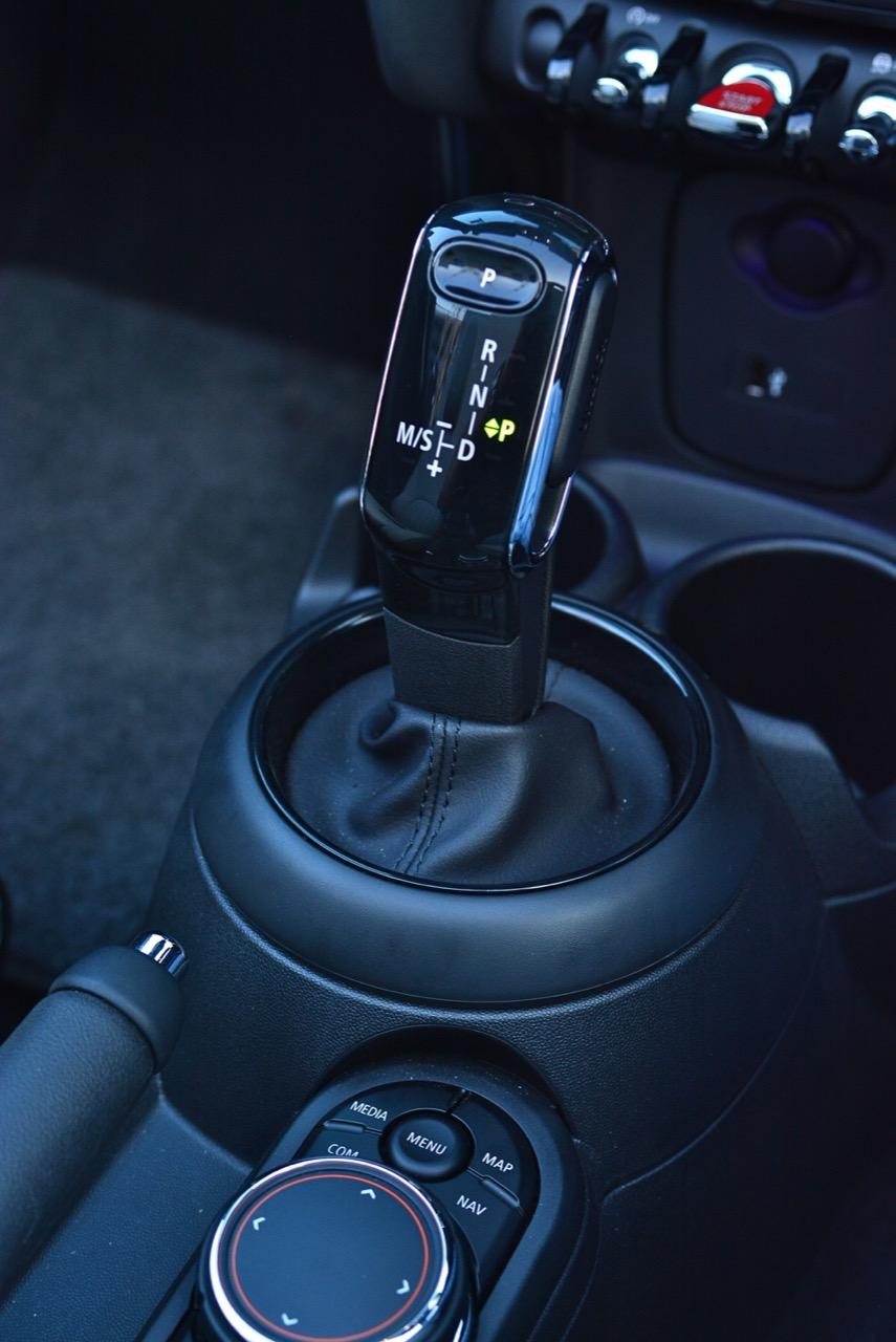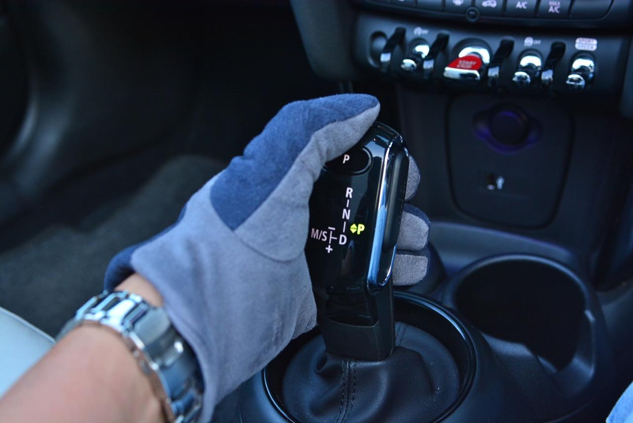 อัตราทดเกียร์คลัตช์คู่ 7 สปีดสั้นกระชับ นั่นหมายความว่าคุณจะรู้สึกได้ถึงการขับแบบสปอร์ตอย่างแท้จริง เกียร์ทำงานเร็วแม้จะไม่มีแป้นเปลี่ยนเกียร์มาให้เหมือนกับ JCW แต่ชุดส่งกำลังแบบใหม่ที่มีคลัตช์ถึงสองชุดก็ไวจนการใช้ Paddle Shift ไม่มีความจำเป็น ใช้โยกคันเกียร์ขึ้น-ลงก็สนุกและได้อารมณ์แบบเกียร์แมนวล ชุดส่งกำลังของมันตัดต่อได้เนียนและไหลลื่น เมื่อไล่อัตราทดขึ้นๆ ลงๆ ไปตามความเร็วและสภาพเส้นทาง รวมถึงเสียงท่อท้ายที่ระเบิดปังๆ ก็จะมีให้เฉพาะรุ่นเกียร์อัตโนมัติเท่านั้น เกียร์ทวินคลัตช์เข้ามาเติมเต็มความสามารถในการทดกำลังได้ดี หัวเกียร์แบบใหม่ที่มีหน้าตาเหมือนแท่งไอติมยังจับได้ถนัดมือดีอีกด้วย เมื่อผลักคันเกียร์ไปทางซ้ายคุณก็จะเข้าสู่โหมดแมนนวลสำหรับการเปลี่ยนเกียร์ด้วยตัวเองบนเส้นทางภูเขาสูงชันที่ต้องใช้เกียร์ช่วยในการไต่หรือไหลลงมาจากเนินเขา