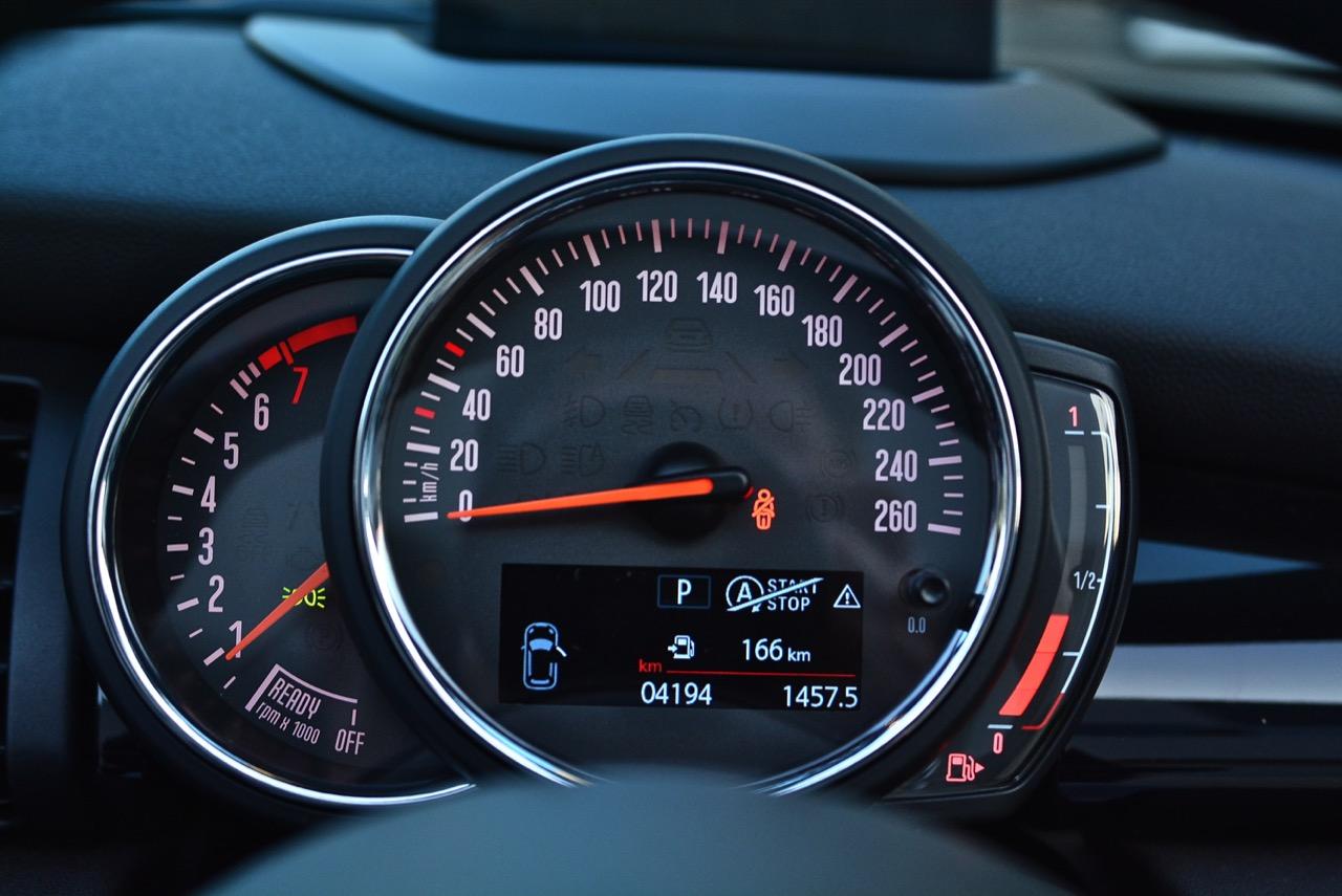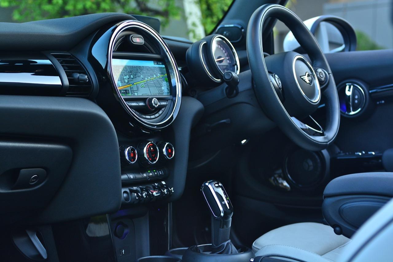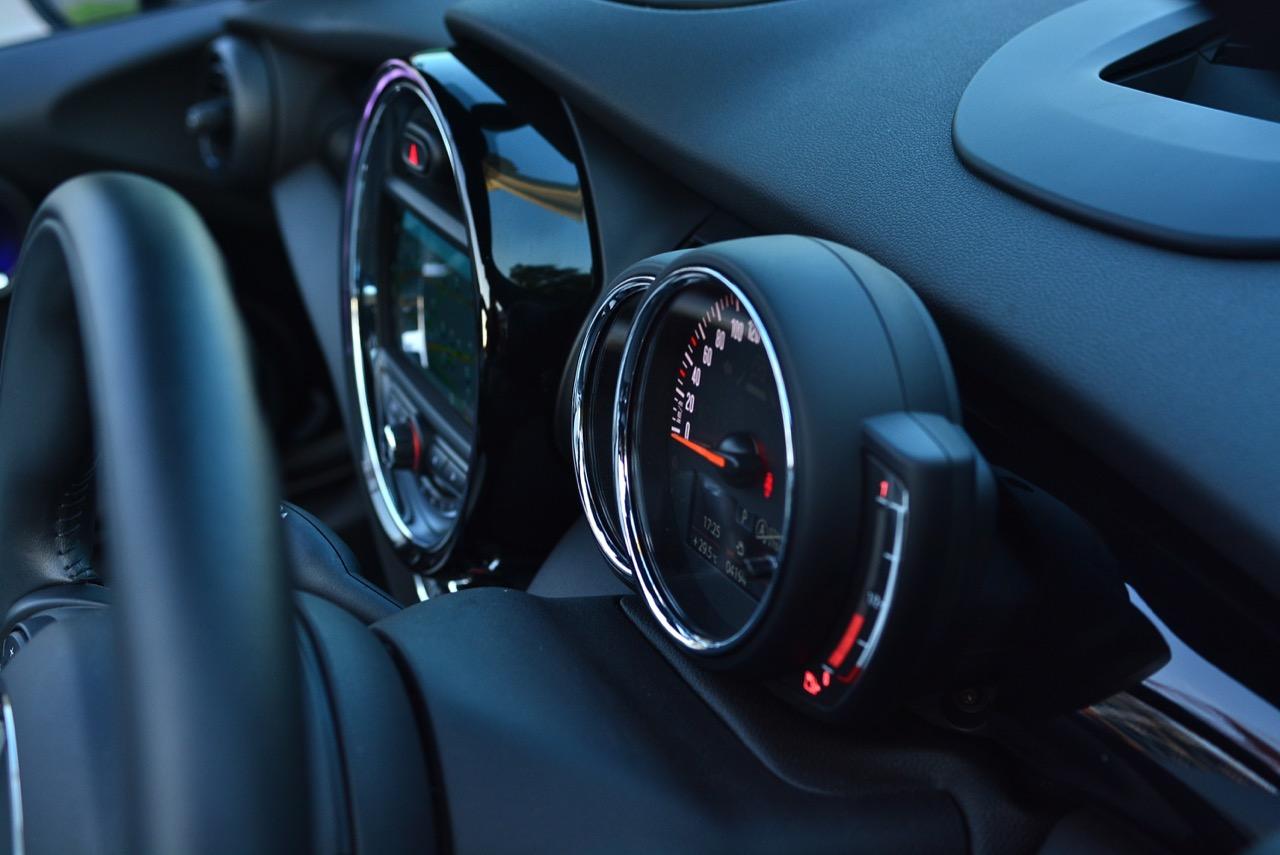 หน้าปัดวัดความเร็วและวัดรอบแบบซ้อนกัน อ่านค่าได้ง่าย แต่จอ MID มีขนาดเล็กไปนิดนึง การปรับปรุงในตำแหน่งของช่องบอกปริมาณเชื้อเพลิงซึ่งอ่านค่าได้ง่ายขึ้น จอแสดงผลกลางสั่งงานด้วยการควบคุมผ่านแป้น controller หรือใช้นิ้วแตะที่หน้าจอเพื่อสั่งงานในระบบสัมผัส หน้าจอขนาดใหญ่ล้อมกรอบด้วยหลอด LED ในรูปแบบที่ถูกเติมเต็มด้วยสีสันอันเร้าใจ จอแสดงผลกลางพร้อมด้วยกราฟิกแบบใหม่ ใช้แสงจากหลอด LED ทำหน้าที่บอกสถานะการทำงานของเครื่องยนต์และการปรับตั้งต่างๆ ด้วยสัญลักษณ์แสงสีต่างๆ จอภาพตรงกลางยังเป็นมอนิเตอร์ของกล้องมองหลัง พร้อมเซนเซอร์ที่ใช้ในการกะระยะถอยหลัง คอยส่งสัญญาณเสียงแจ้งเตือนคนขับเมื่อถอยเข้าใกล้กับวัตถุกีดขวาง สำหรับหน้าจอแสดงผลส่วนกลางที่เป็นเอกลักษณ์ของ MINI ยังได้รับการออกแบบให้เจ้าของรถสามารถเลือกการแสดงผลในฟังก์ชั่นต่างๆ ได้อย่างหลากหลาย เป็นของเล่นที่ออกแบบให้ใช้งานได้ง่ายๆ โดย MINI Cooper S Convertible มาพร้อมหน้าจอสีสั่งงานด้วยระบบสัมผัสขนาด 6.5 นิ้ว แสดงผลที่เกี่ยวกับฟังก์ชั่นกับสภาวะการปรับตั้งระบบต่างๆ ของรถ สาระความบันเทิง และการเชื่อมต่อ MINI Connected สำหรับฟังก์ชั่นดังกล่าวมีระบบควบคุม MINI Touch Controller ที่ทำงานโดยใช้ระบบสัมผัสปลายนิ้วลงไปบนแป้นควบคุม เพื่อให้ผู้ขับขี่สามารถป้อนข้อมูลได้จากการเขียนด้วยนิ้วมือลงบนปุ่ม Controller ได้โดยตรง ในตำแหน่งของ MINI Touch Controller กราฟิกที่สวยงามของฟังก์ชั่นต่างๆ ช่วยเพิ่มความน่าใช้ขึ้นมาอีกนิด