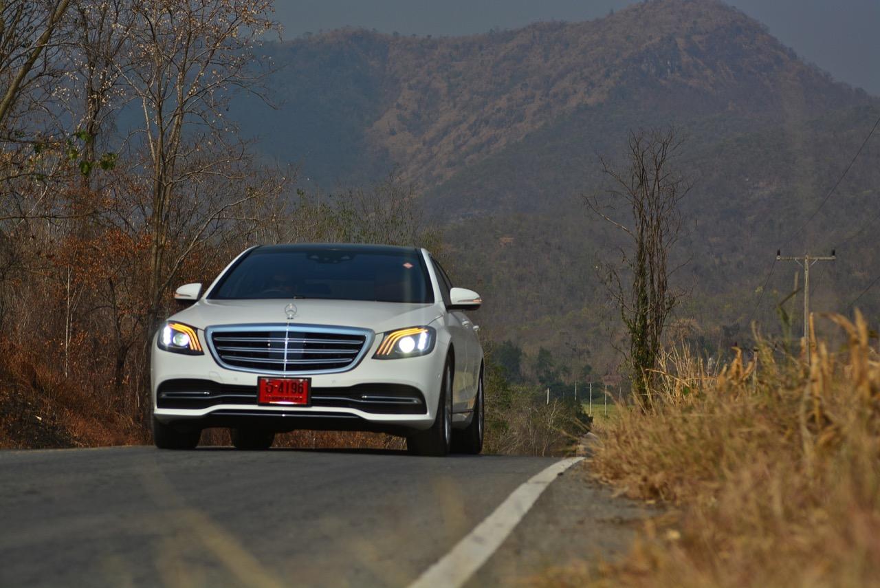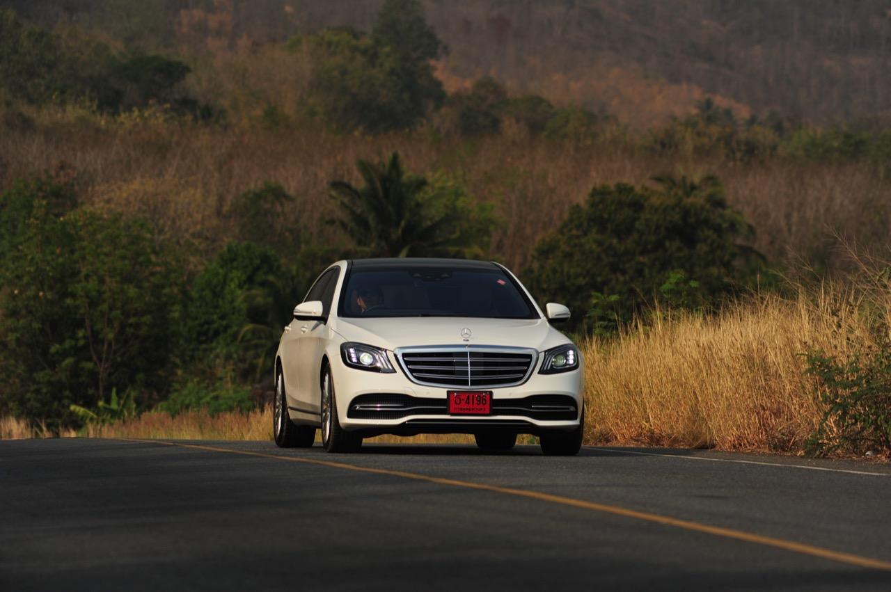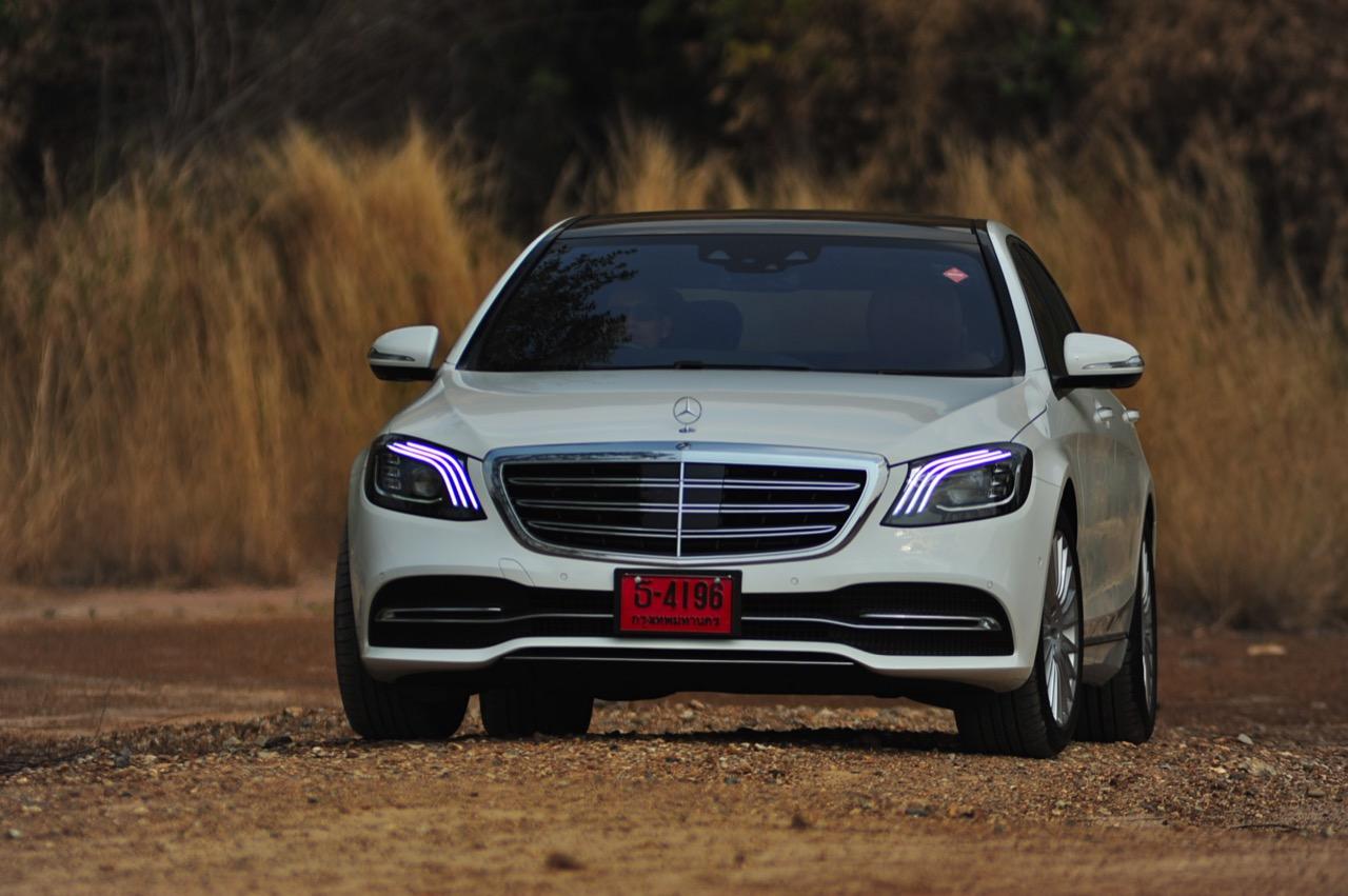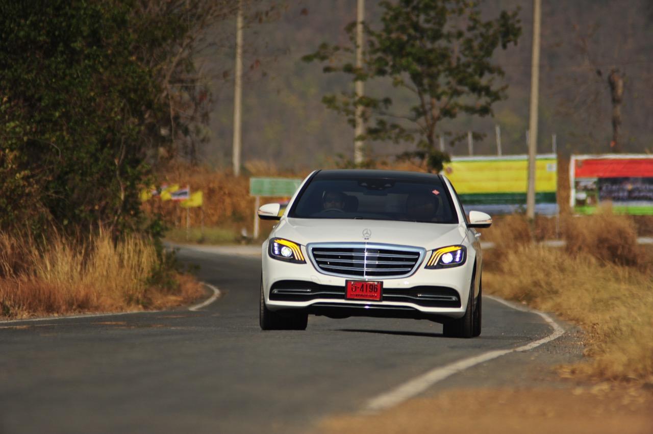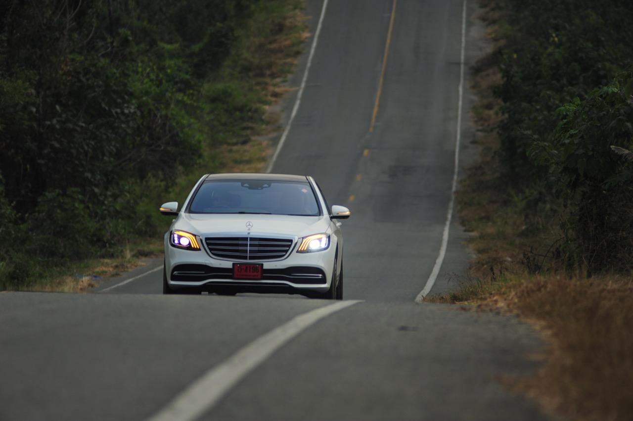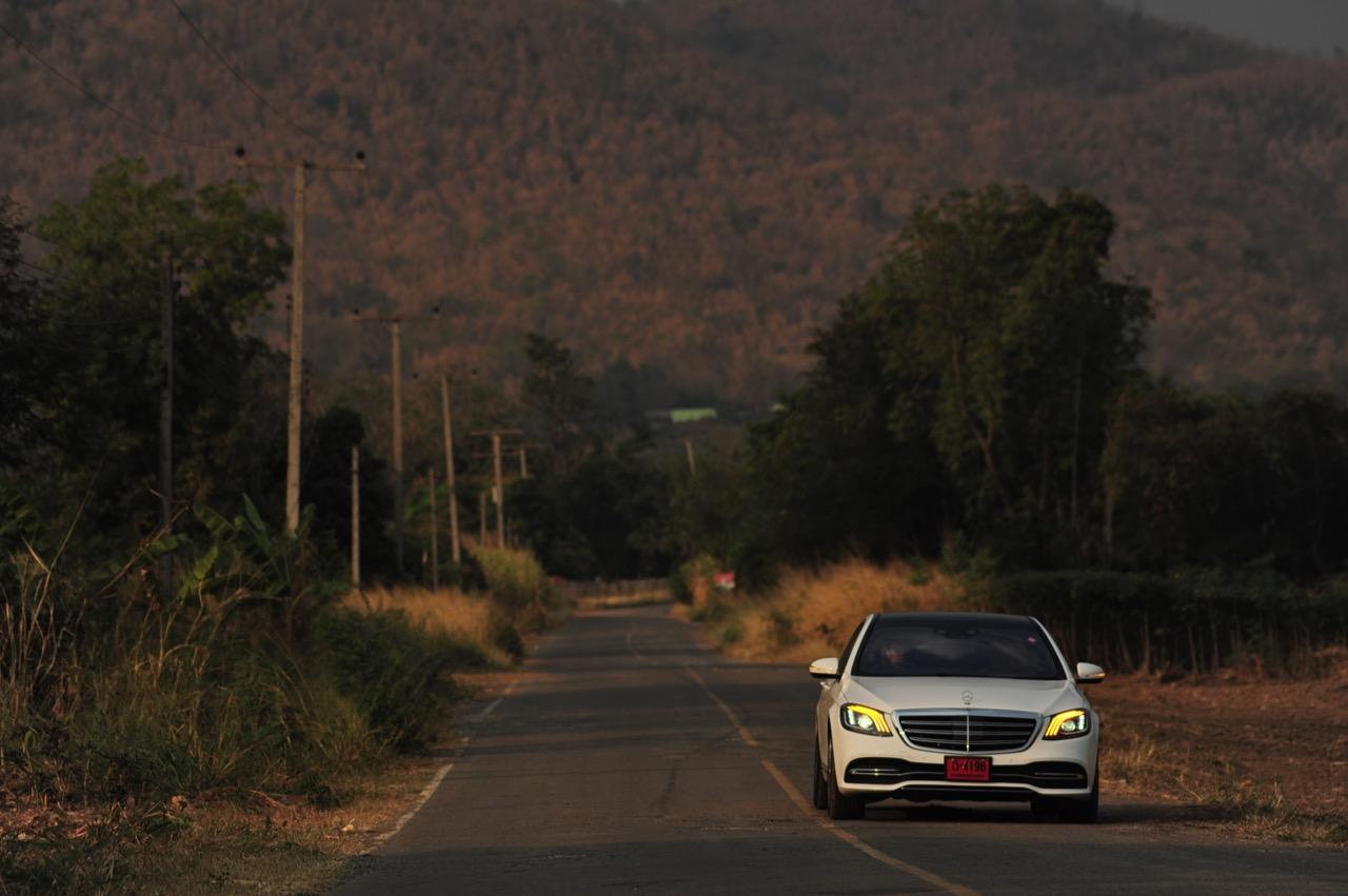 เมื่อกำลังโลดแล่นอยู่ในเรือธงตราดาวที่วิ่งได้อย่างนุ่มนวลบนถนนสองเลนที่ต้องขับขึ้น-ลงเนินเขาเตี้ยๆ ในเขตจังหวัดกาญจนบุรี ภายในห้องโดยสารรายล้อมไปด้วยงานลายไม้ พลาสติก ผ้าและหนังแท้นุ่มละมุน ระบบปรับอากาศที่มีฟังก์ชั่นเพียบ จอภาพ 12.3 นิ้วแสดงผลระบบนำทางด้วยดาวเทียมในรูปแบบ 3D ที่ชัดแจ๋ว ขณะที่เครื่องเสียง Burmester Audiosound System 13 Speaker กำลังเล่นเพลง Jazz และเมื่อมีเสียงโทรศัพท์เรียกเข้าก็แค่กดปุ่มรับสายในระบบบลูทูธ S-Class รุ่นปรับโฉมเป็นการนำเสนอสิ่งดีๆ ที่เคยโดดเด่นและโด่งดังของ Mercedes-Benz ให้กลับมายิ่งใหญ่เหมือนในอดีต ตัวถังช่วงฐานล้อยาว long wheelbase มีภายที่ที่หุ้มหนังแท้จากพื้นเกือบจะถึงเพดานรถ พรมหนาเป็นพิเศษเพื่อเพิ่มความนุ่มและช่วยลดเสียงแปลกปลอมจากภายนอก S350d Exclusive เป็นตัวอย่างที่ดีของการผสมผสานกันระหว่างสมรรถนะกับประสิทธิภาพ ความคล่องตัวกับความนุ่มนวล รวมถึงความเป็นส่วนตัวของผู้โดยสารตอนหลัง ช่วงล่าง AIRMATIC ใช้ถุงลมปรับระดับความสูง-ต่ำแบบอัตโนมัติหรือจะเลือกปรับเองก็ยังได้ ช่วยทำให้ S350d เป็นได้ทั้งยานพาหนะที่ใช้สำหรับขับทางไกลหรือแปลงกายเป็นออฟฟิศส่วนตัวสำหรับนั่งทำงานเวลาเดินทาง โหมด Comfort สบายคล้ายกับ Series-7 คุณจะสัมผัสได้ถึงความใหญ่โตและน้ำหนักของมันเมื่อต้องเลี้ยวโค้งในย่านความเร็วสูง โหมดสปอร์ตลดความสูงลงโดยอัตโนมัติและเปิดทุกสิ่งทุกอย่างเพื่อการขับที่เร็วขึ้น Sport Mode ให้ความรู้สึกถึงความมั่นคงของตัวถังและพวงมาลัยโดยไม่มีความจำเป็นต้องยัดล้อขนาดใหญ่ที่สิ้นเปลืองเชื้อเพลิงและขับยากจากแก้มยางที่ต่ำเตี้ย Sport Mode มีช่วงล่างที่ค่อนข้างยืดหยุ่น ซึ่งคุณสามารถปรับเอาไว้ตรงนั้นและไม่จำเป็นต้องไปยุ่งกับมันให้มากเรื่อง